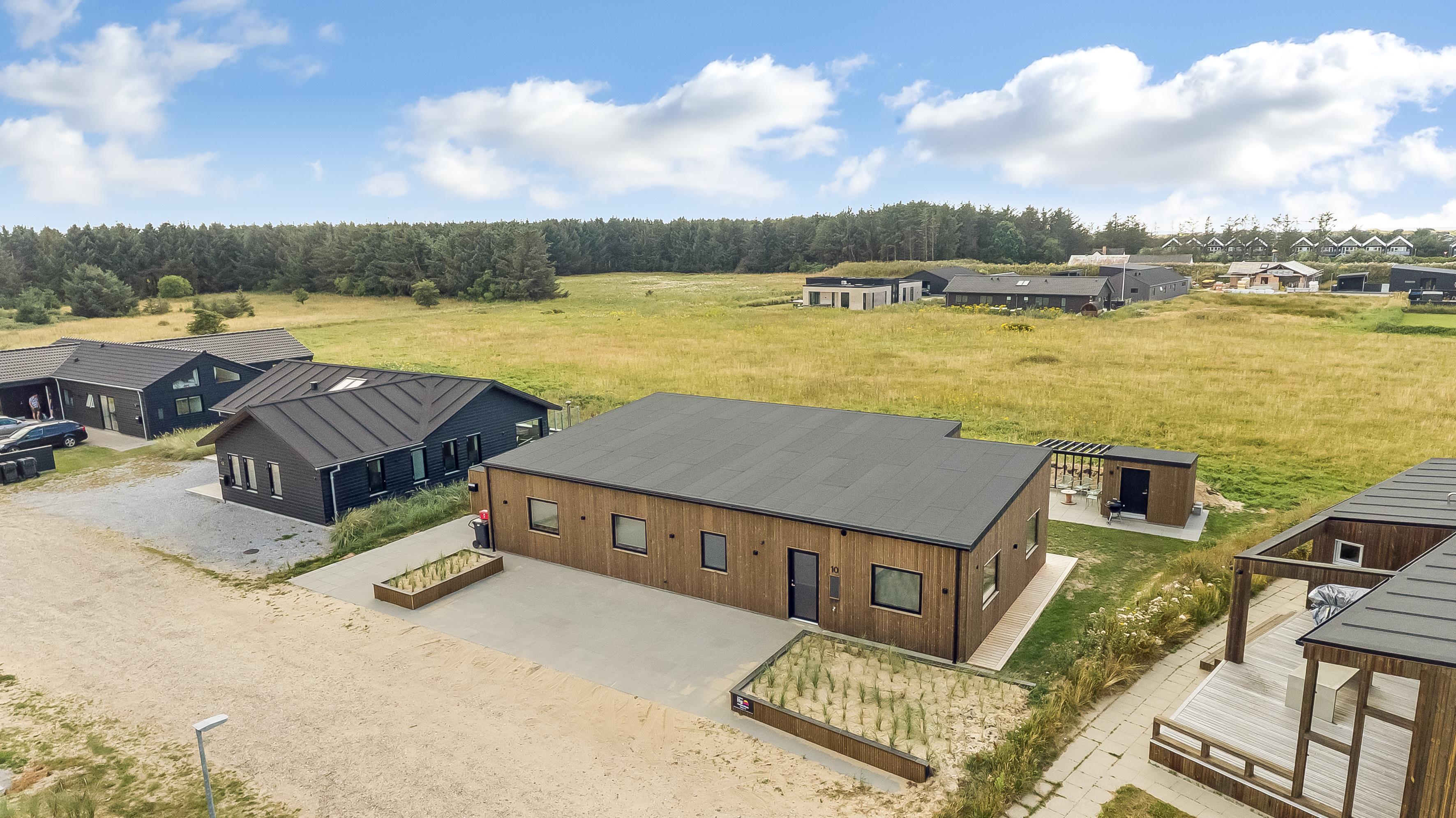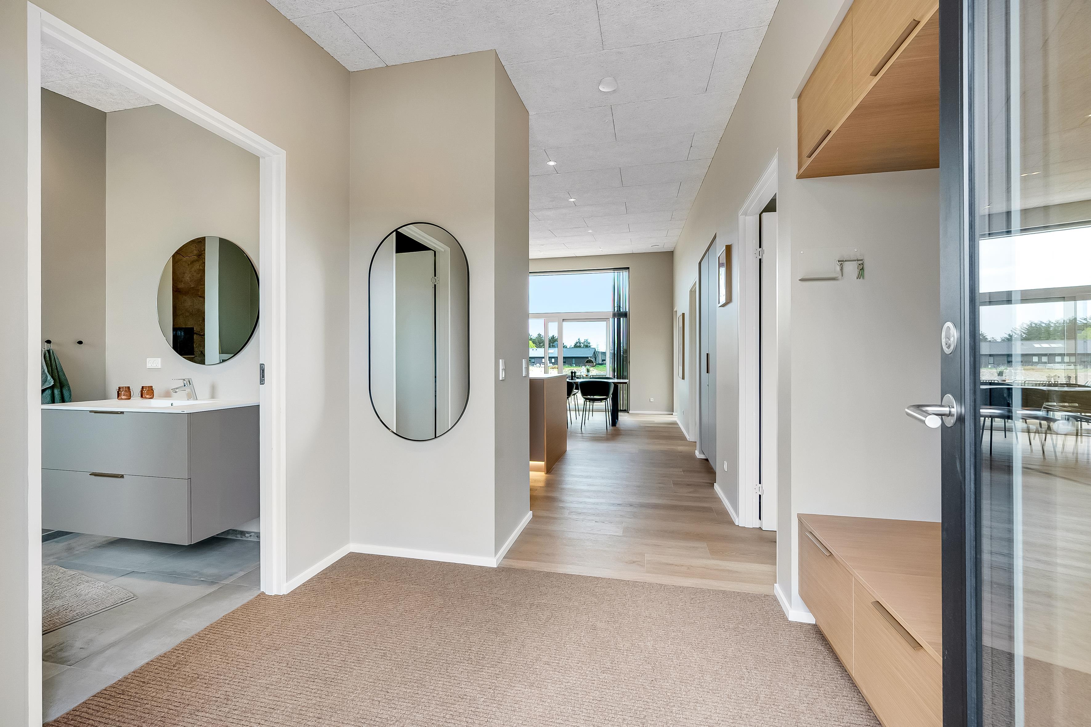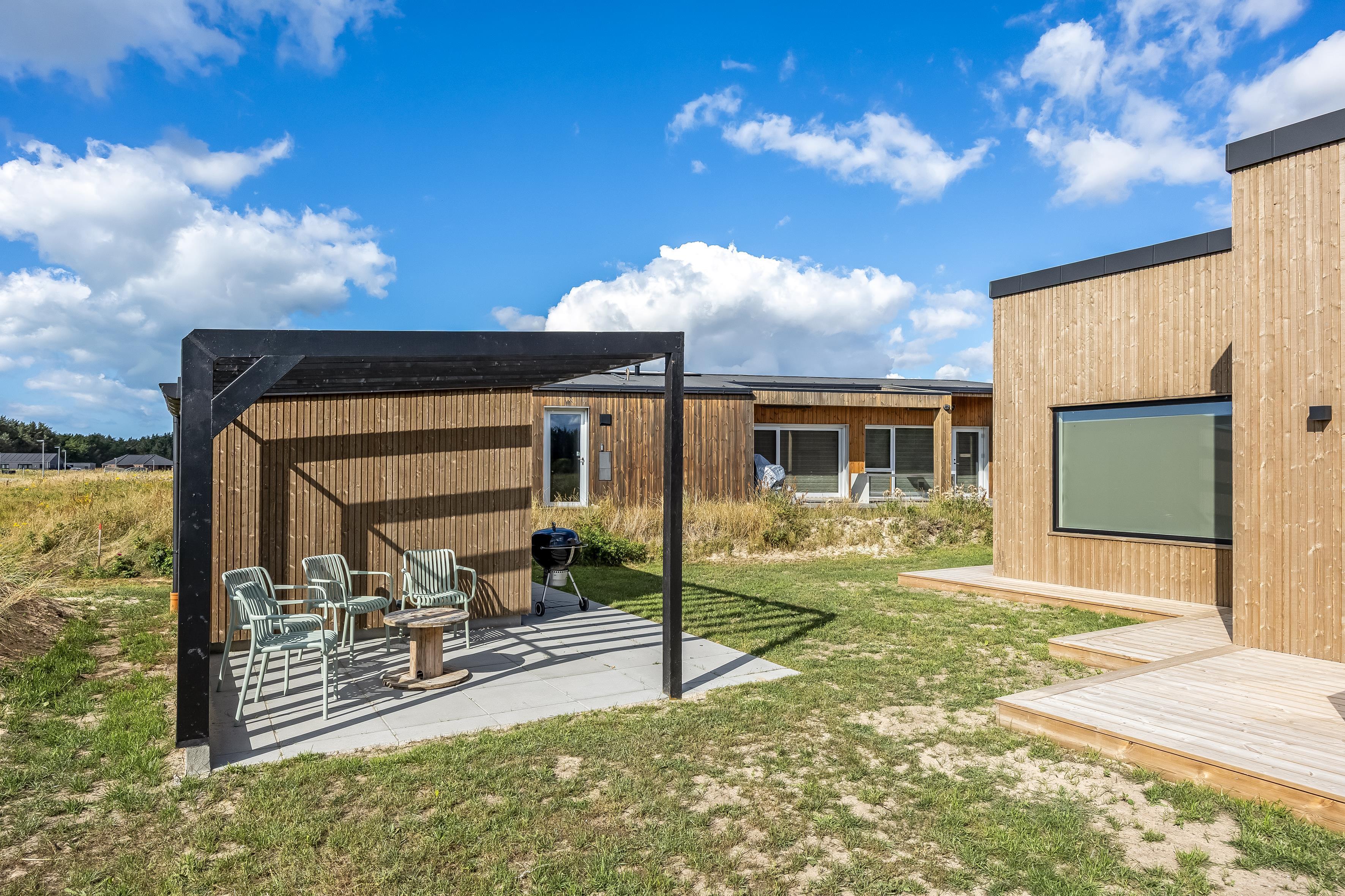Dette nybyggede sommerhus giver plads til 8 gæster samt et barn. De åbne og lyse rum skaber en indbydende stemning, og den stilrene indretning vidner om fokus på kvalitet og detaljer. Hjemmets hjerte er det store opholdsrum, hvor køkken-alrummet og den hyggelige sofaafdeling smelter sammen. Badeværelserne er rummelige og elegant indrettede, hvilket understreger husets høje standard.
