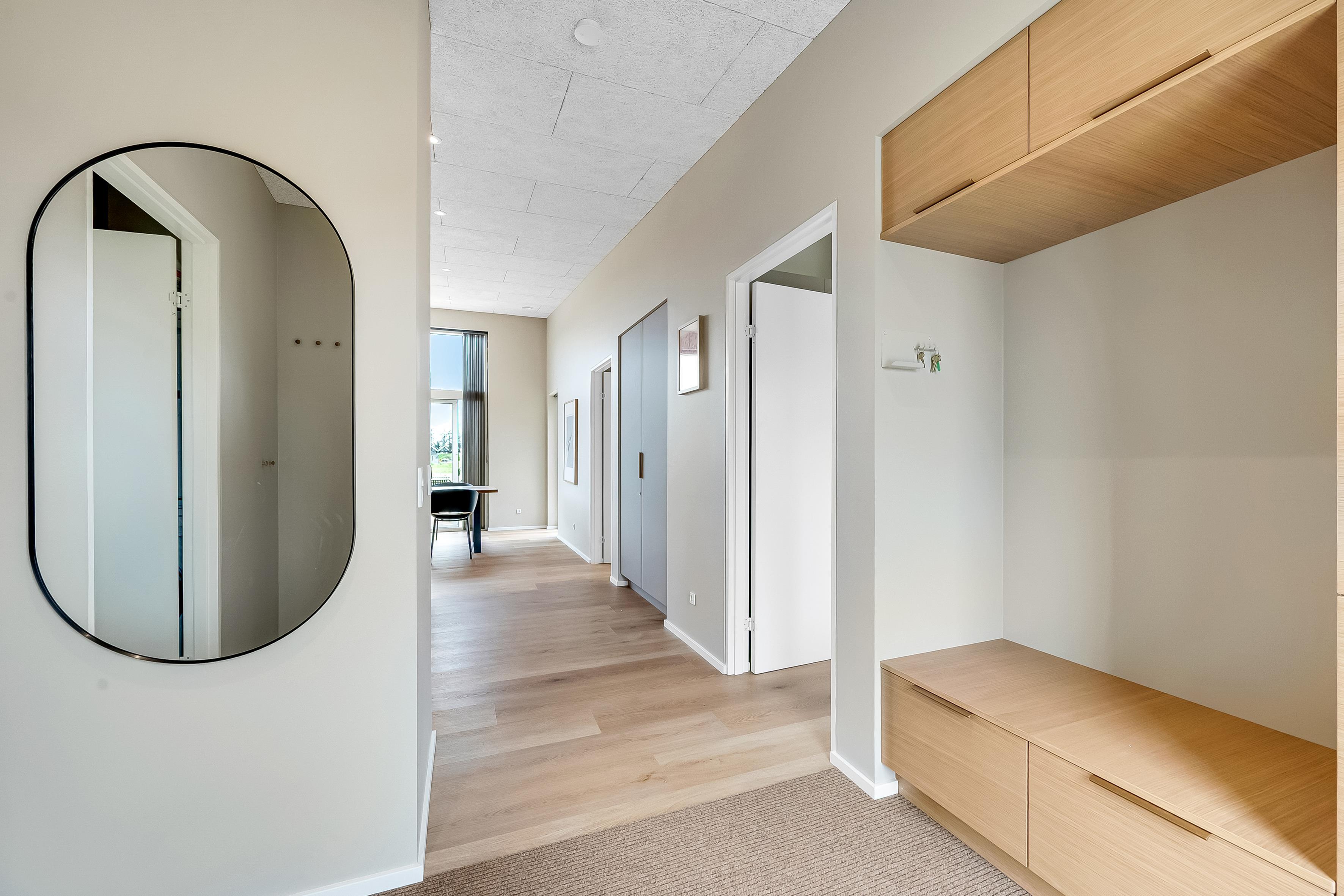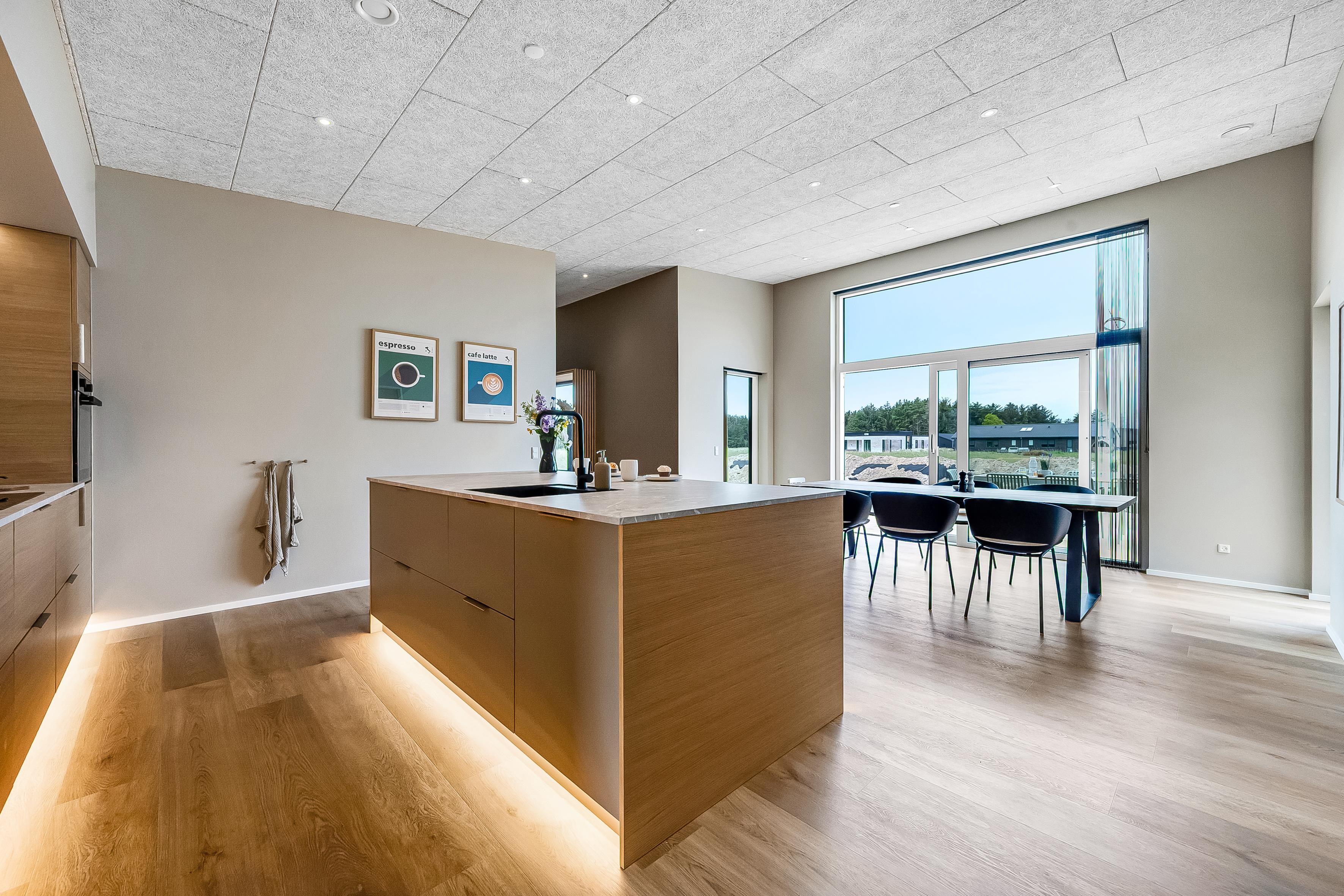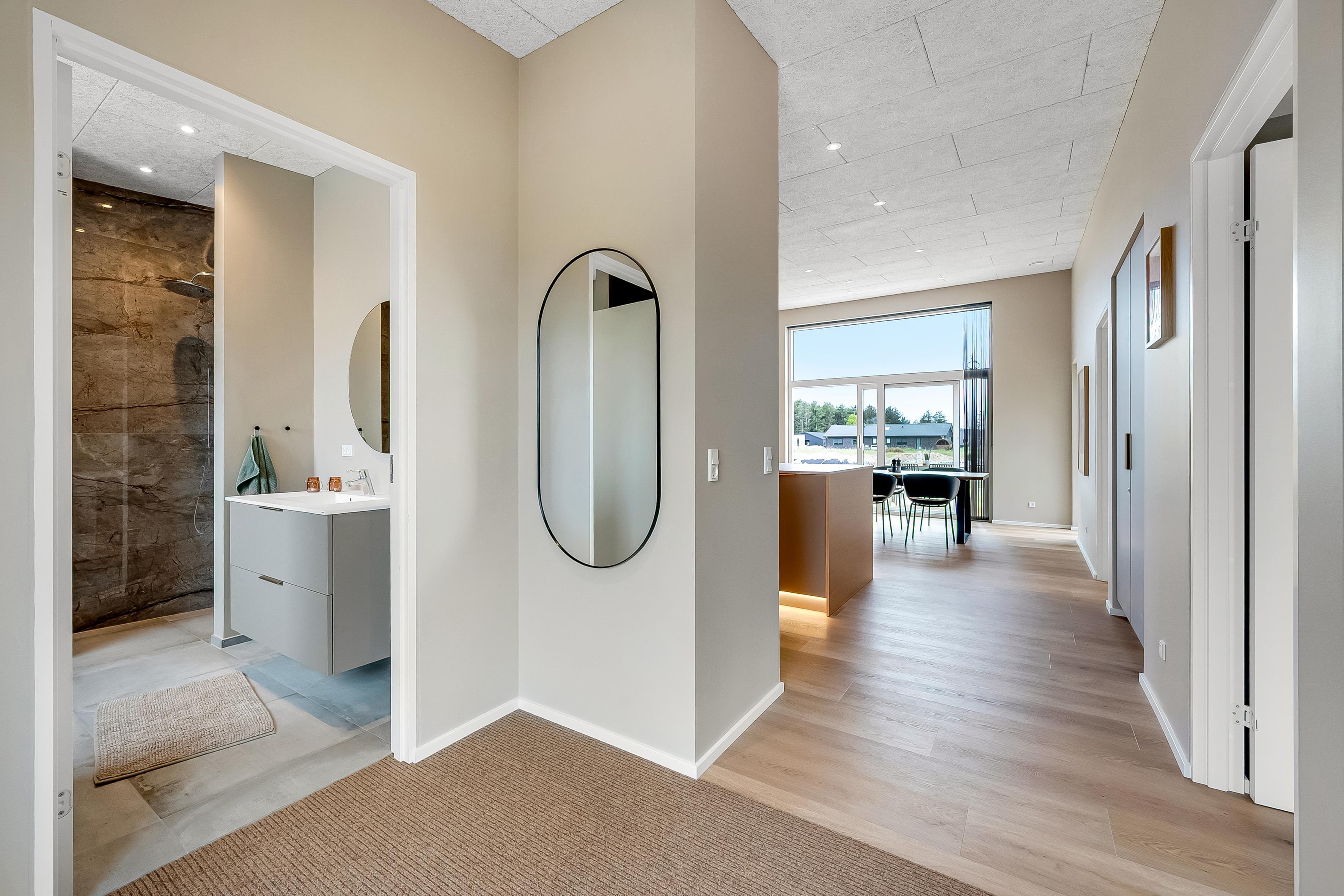 Dette nybyggede sommerhus giver plads til 8 gæster samt et barn. De åbne og lyse rum skaber en indbydende stemning, og den stilrene indretning vidner om fokus på kvalitet og detaljer. Hjemmets hjerte er det store opholdsrum, hvor køkken-alrummet og den hyggelige sofaafdeling smelter sammen. Badeværelserne er rummelige og elegant indrettede, hvilket understreger husets høje standard.