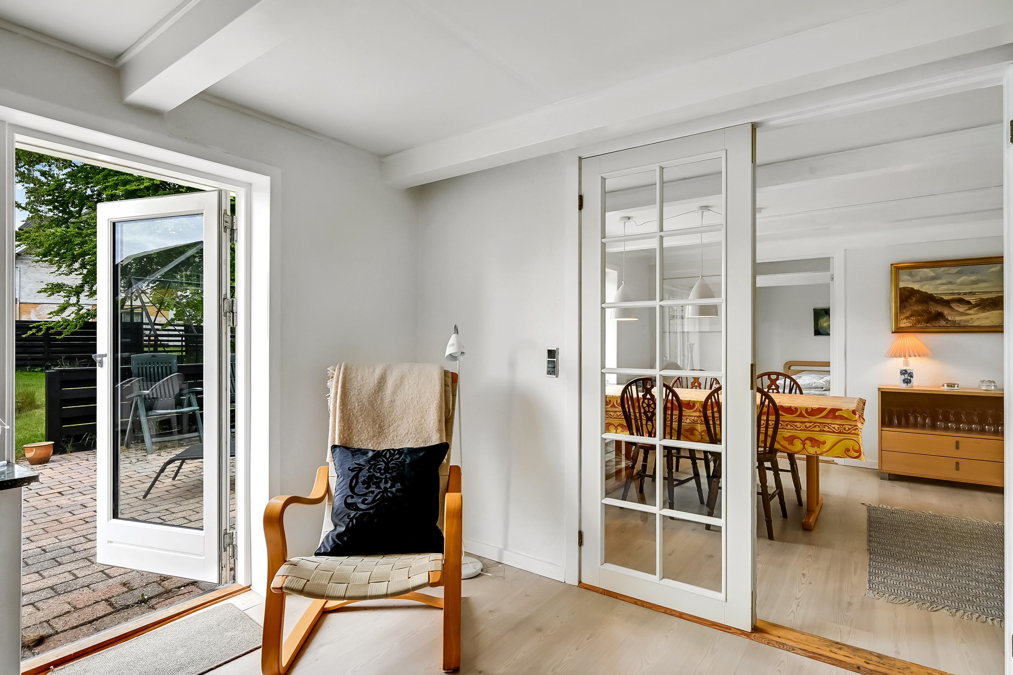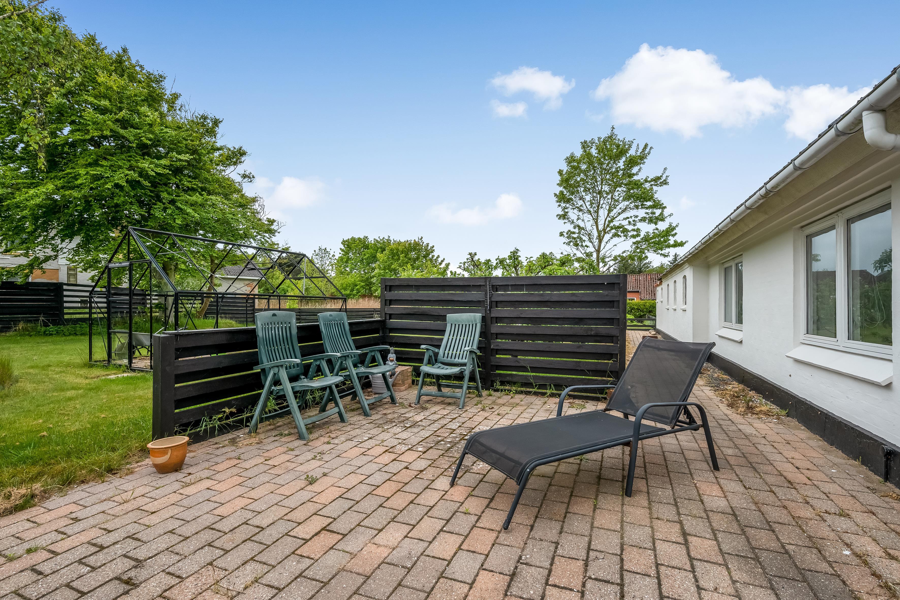 Sommerhuset er hundevenligt, og du må tage op til tre hunde med. Der er god plads omkring huset, og en have med havemøbler, hvor du kan nyde en stille morgenkaffe eller aftensolen, når vejret tillader det.