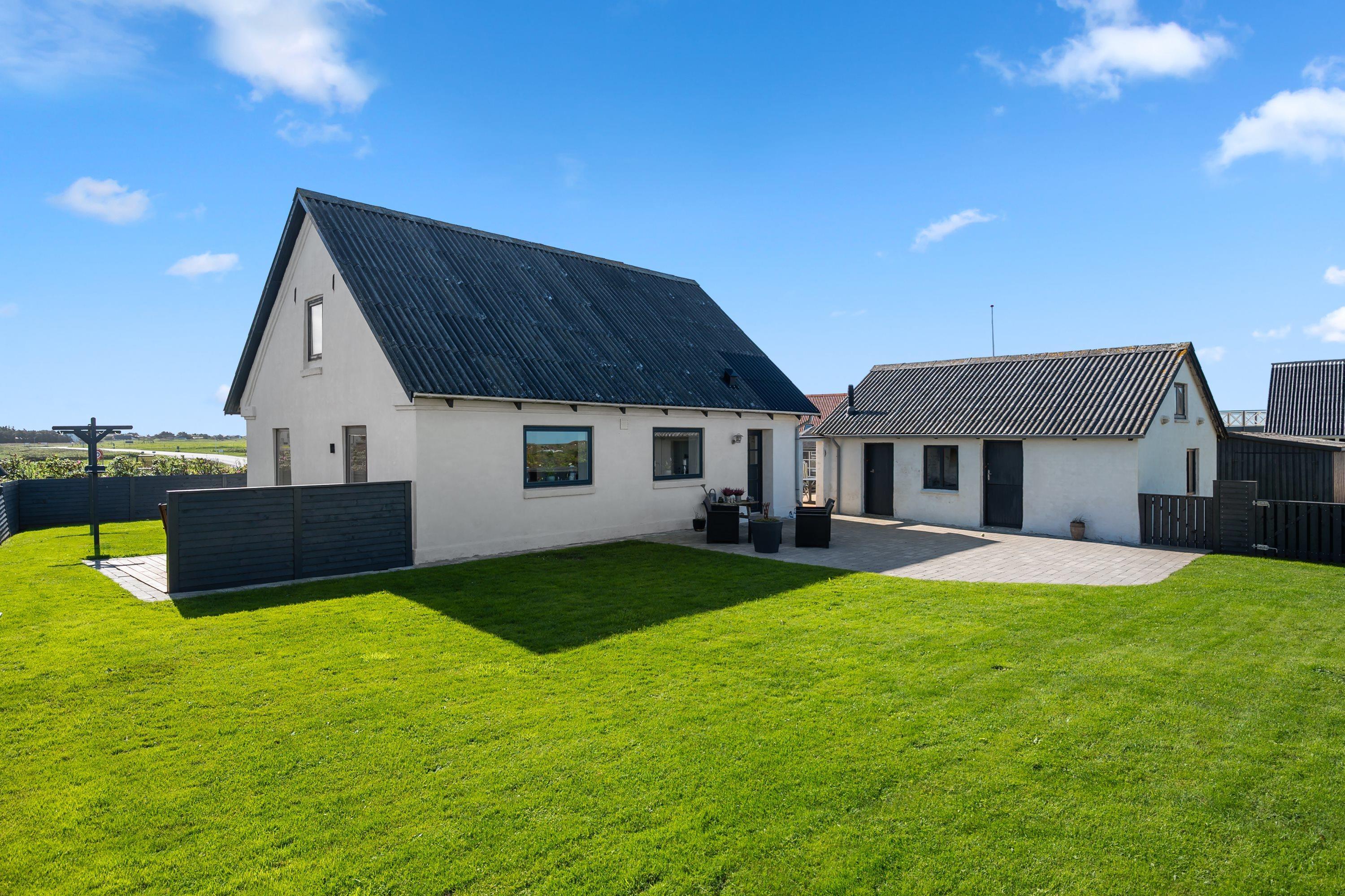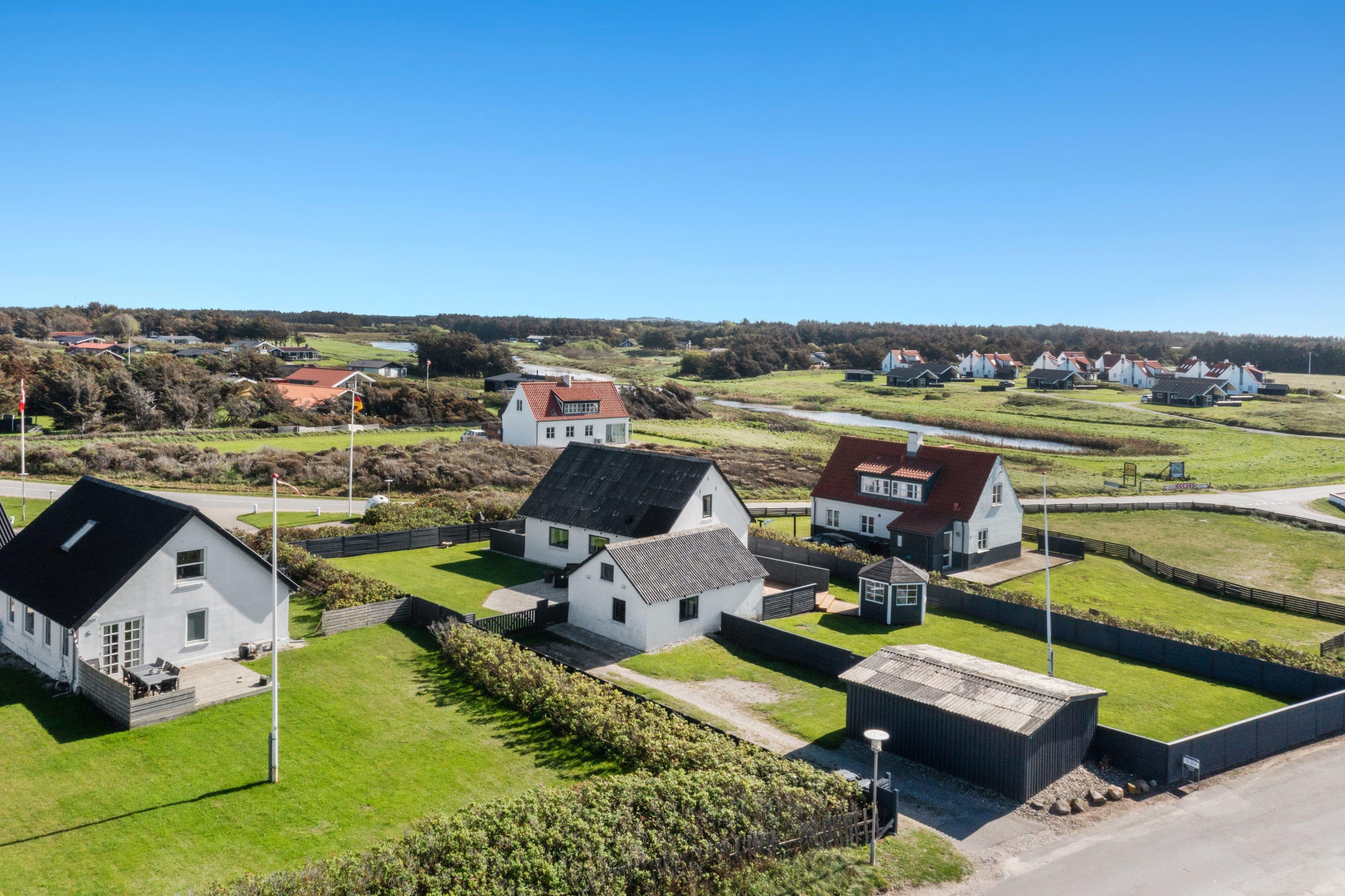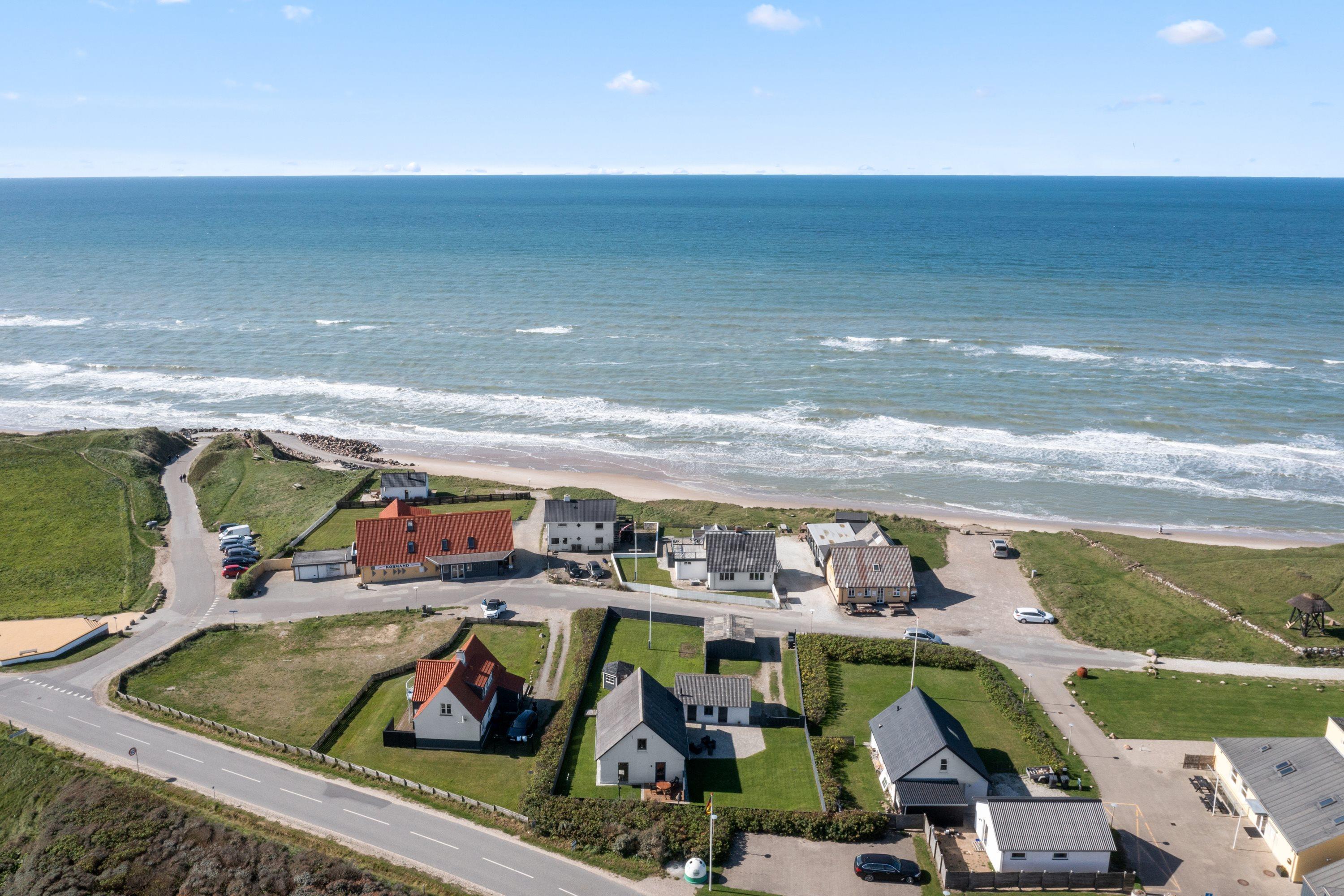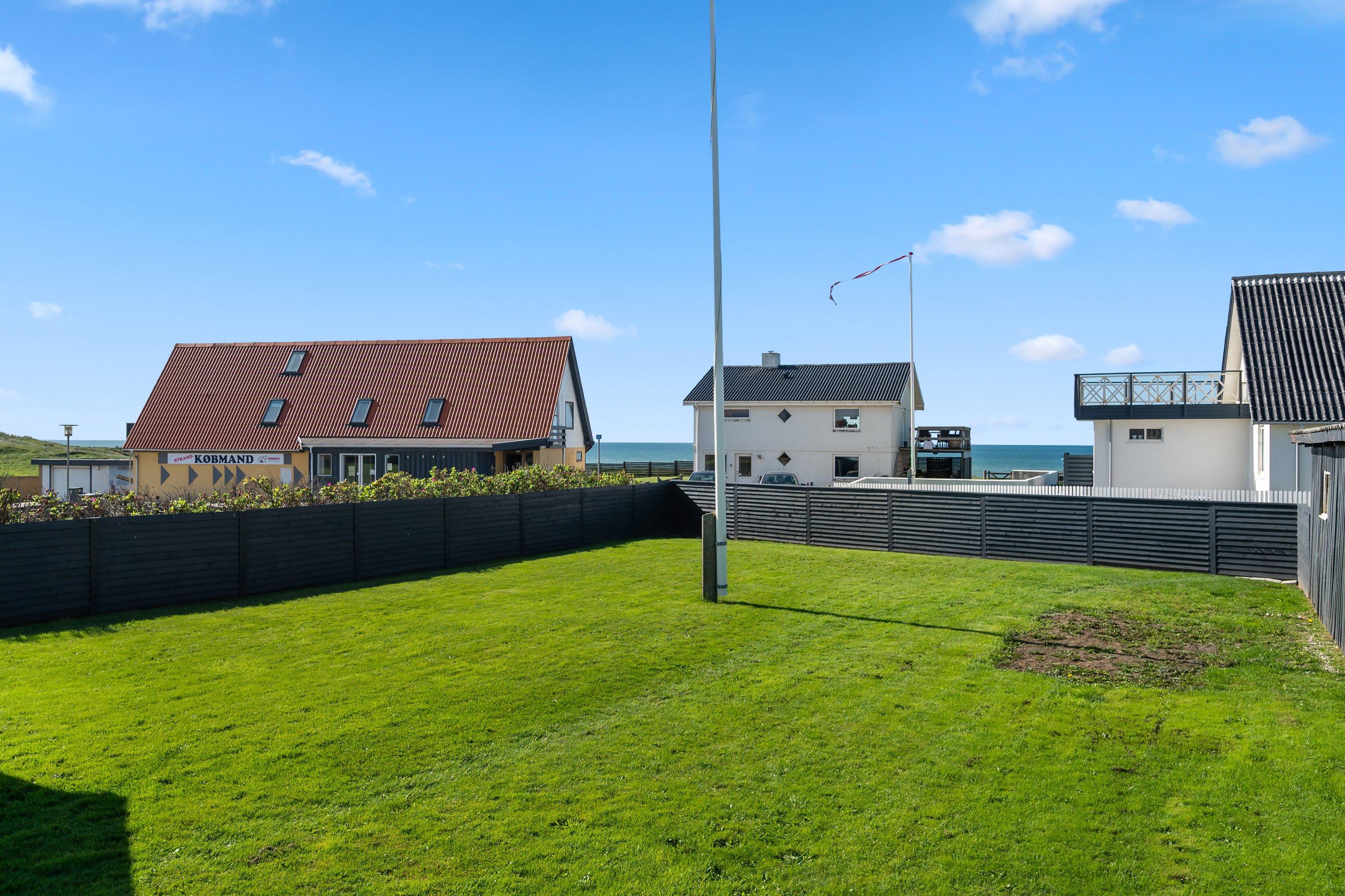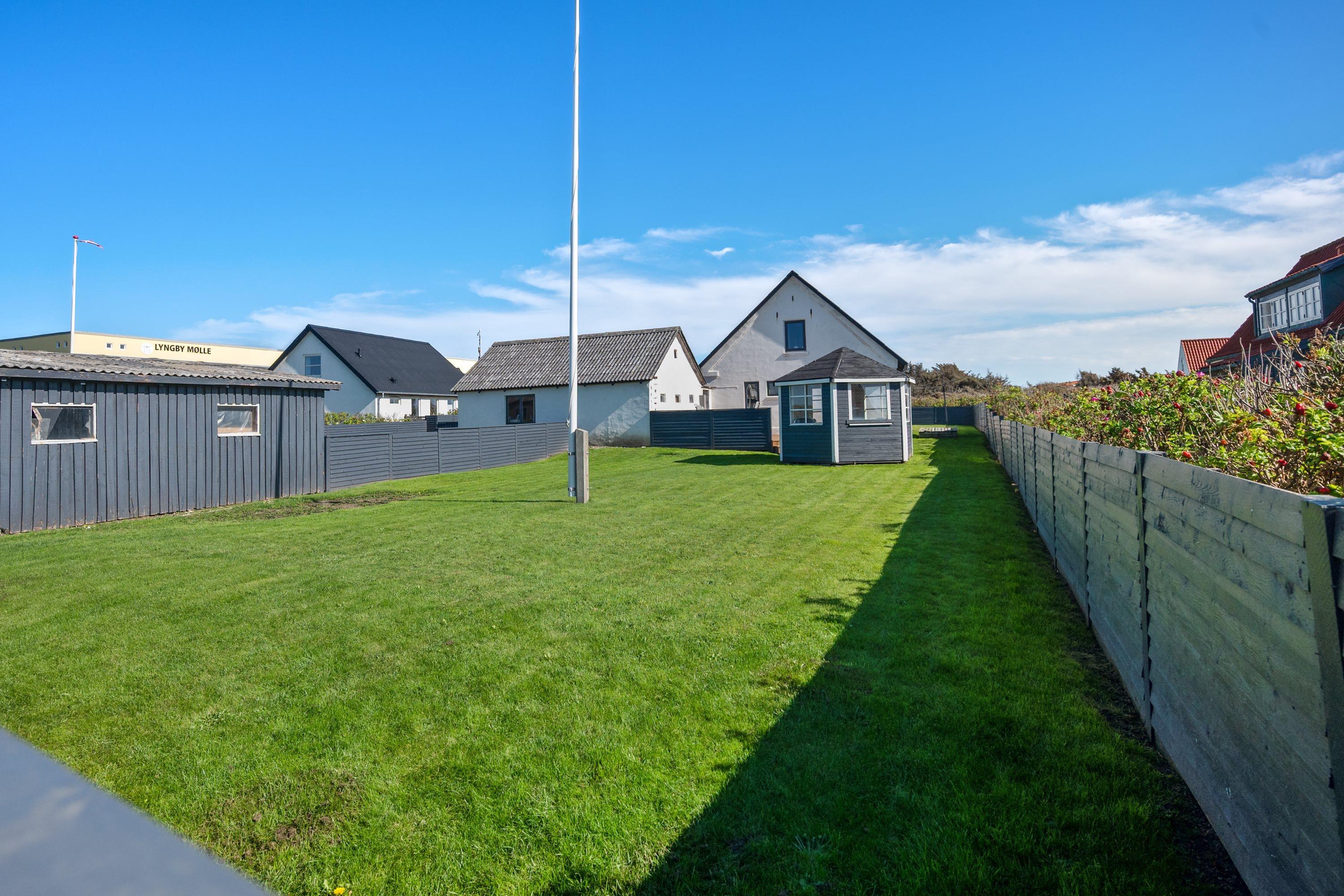 Udendørsområde: Selve grunden er på 906 kvadratmeter og har købmanden og grillbaren som genboer, og naturen som ramme med en klar udsigt til Vesterhavet. Her er skønne terrasser, og huset er omgivet af en dejlig plæne, der kan lukkes af, hvis man har sin firbenede ven med på ferie. Der er altså rig mulighed for at finde læ for vestenvinden, når den viser sine muskler. I Nørre Lyngby er der masser af rå natur og mange muligheder for gå- eller vandreture. Det populære Rubjerg Knude Fyr ligger i nærheden, og der er ti minutters kørsel til hhv. Løkken og Lønstrup, hvor der er rige muligheder for oplevelser af mangfoldig karakter.