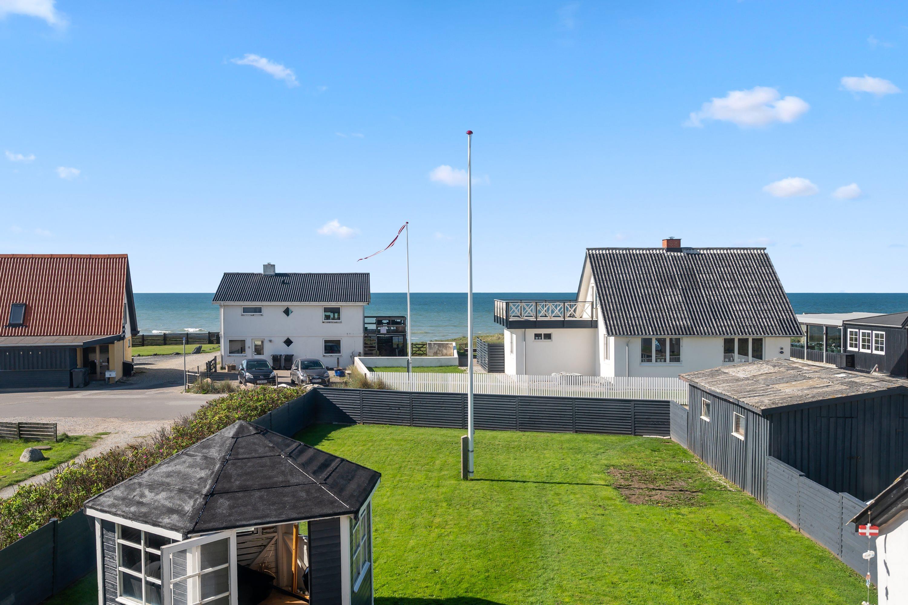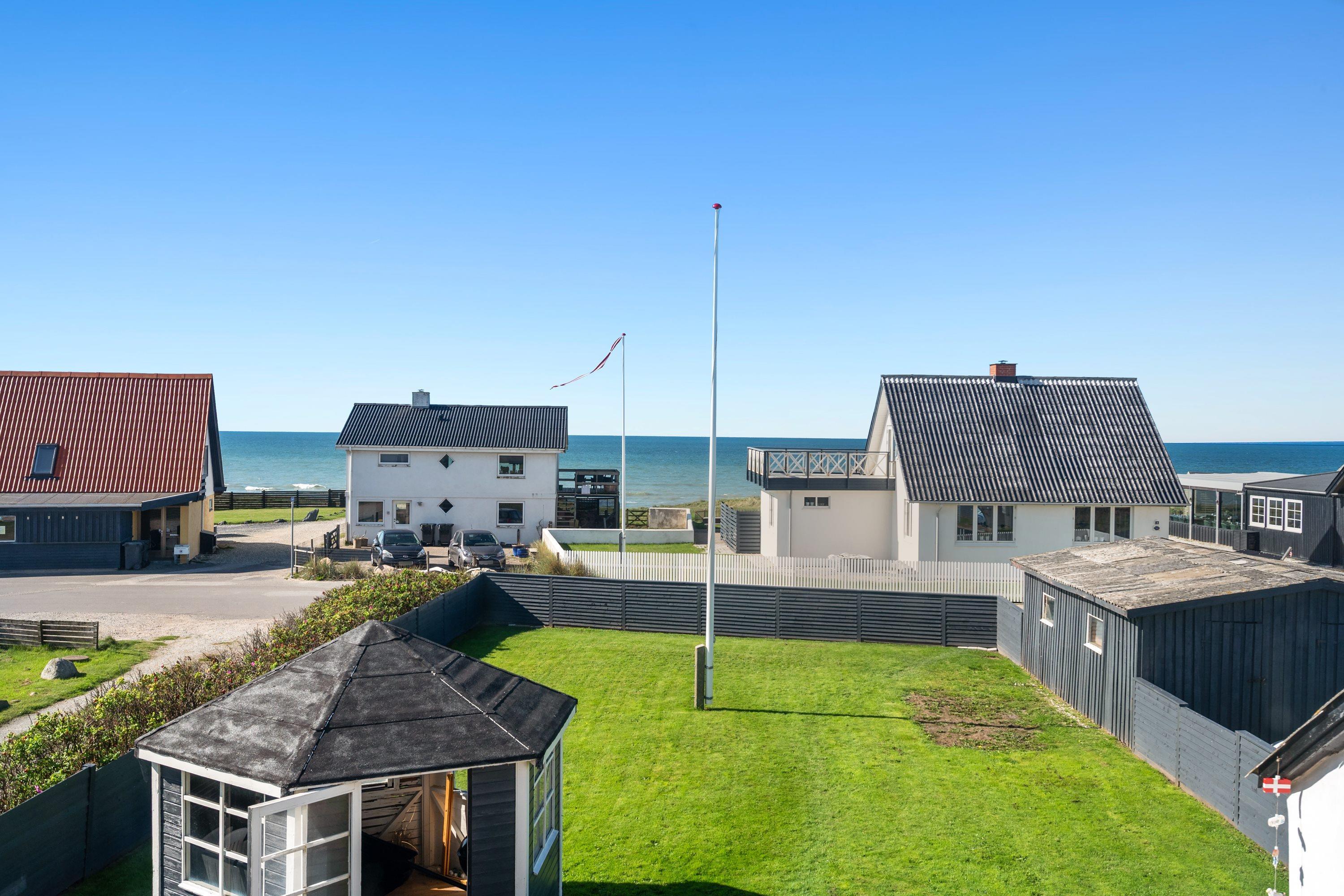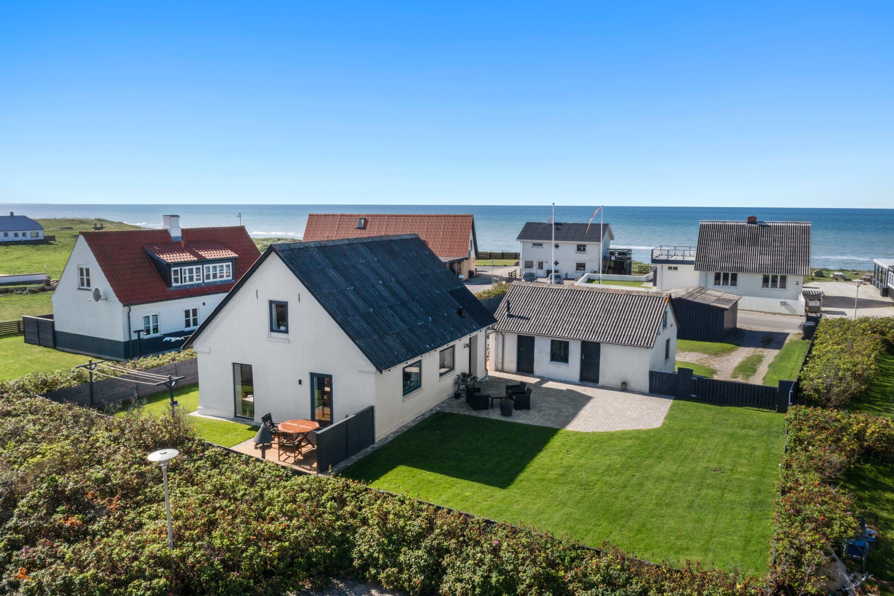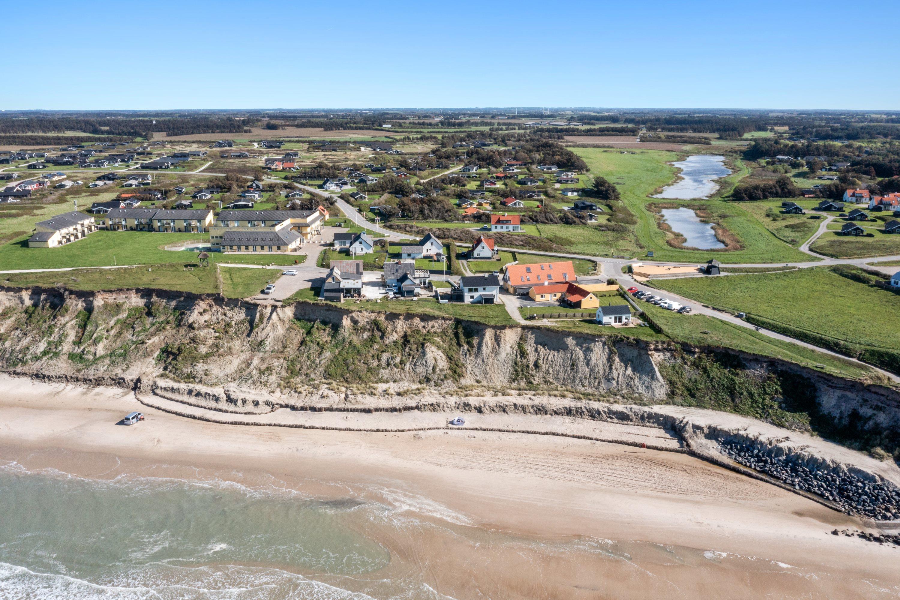 Udendørsområde: Selve grunden er på 906 kvadratmeter og har købmanden og grillbaren som genboer, og naturen som ramme med en klar udsigt til Vesterhavet. Her er skønne terrasser, og huset er omgivet af en dejlig plæne, der kan lukkes af, hvis man har sin firbenede ven med på ferie. Der er altså rig mulighed for at finde læ for vestenvinden, når den viser sine muskler. I Nørre Lyngby er der masser af rå natur og mange muligheder for gå- eller vandreture. Det populære Rubjerg Knude Fyr ligger i nærheden, og der er ti minutters kørsel til hhv. Løkken og Lønstrup, hvor der er rige muligheder for oplevelser af mangfoldig karakter.