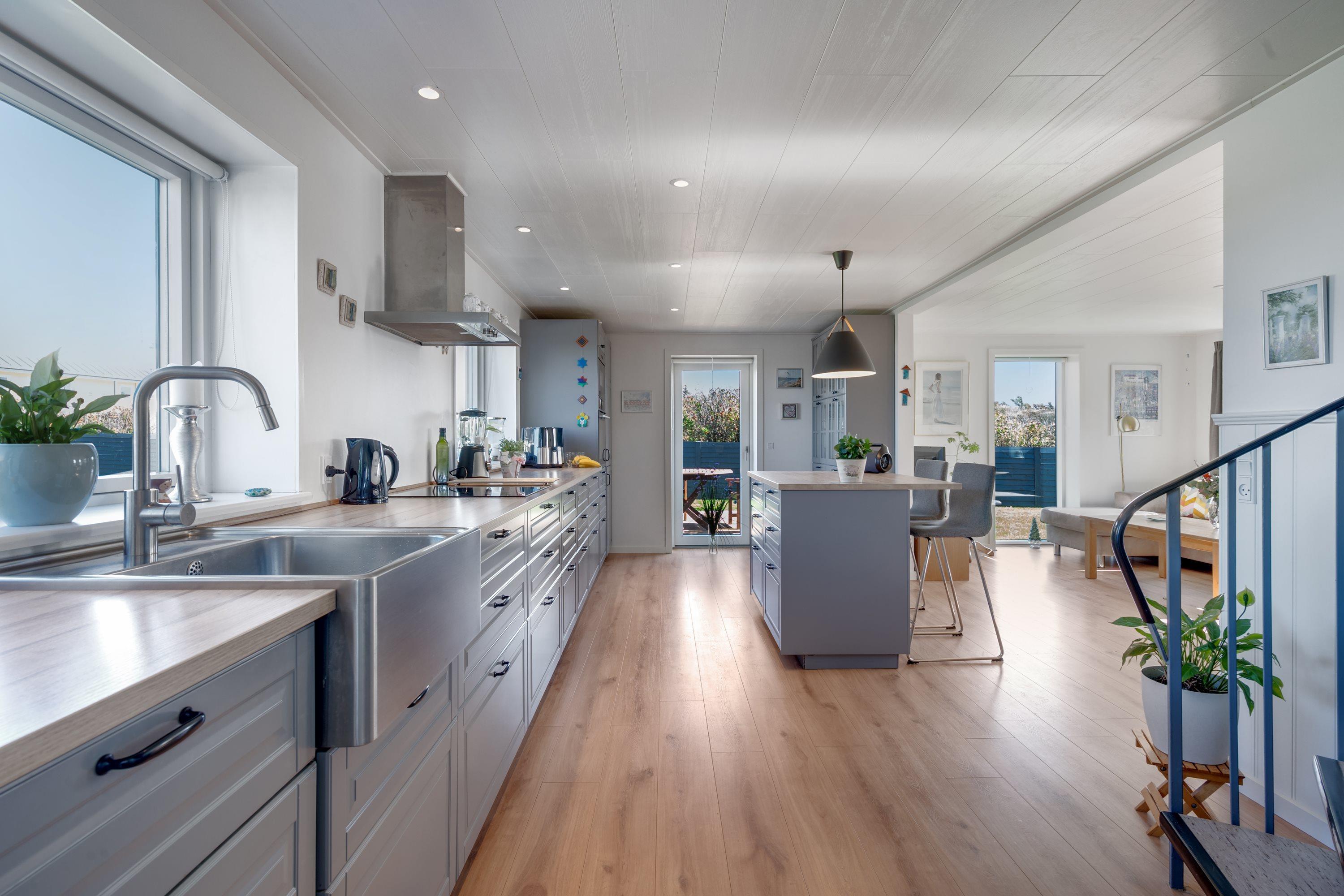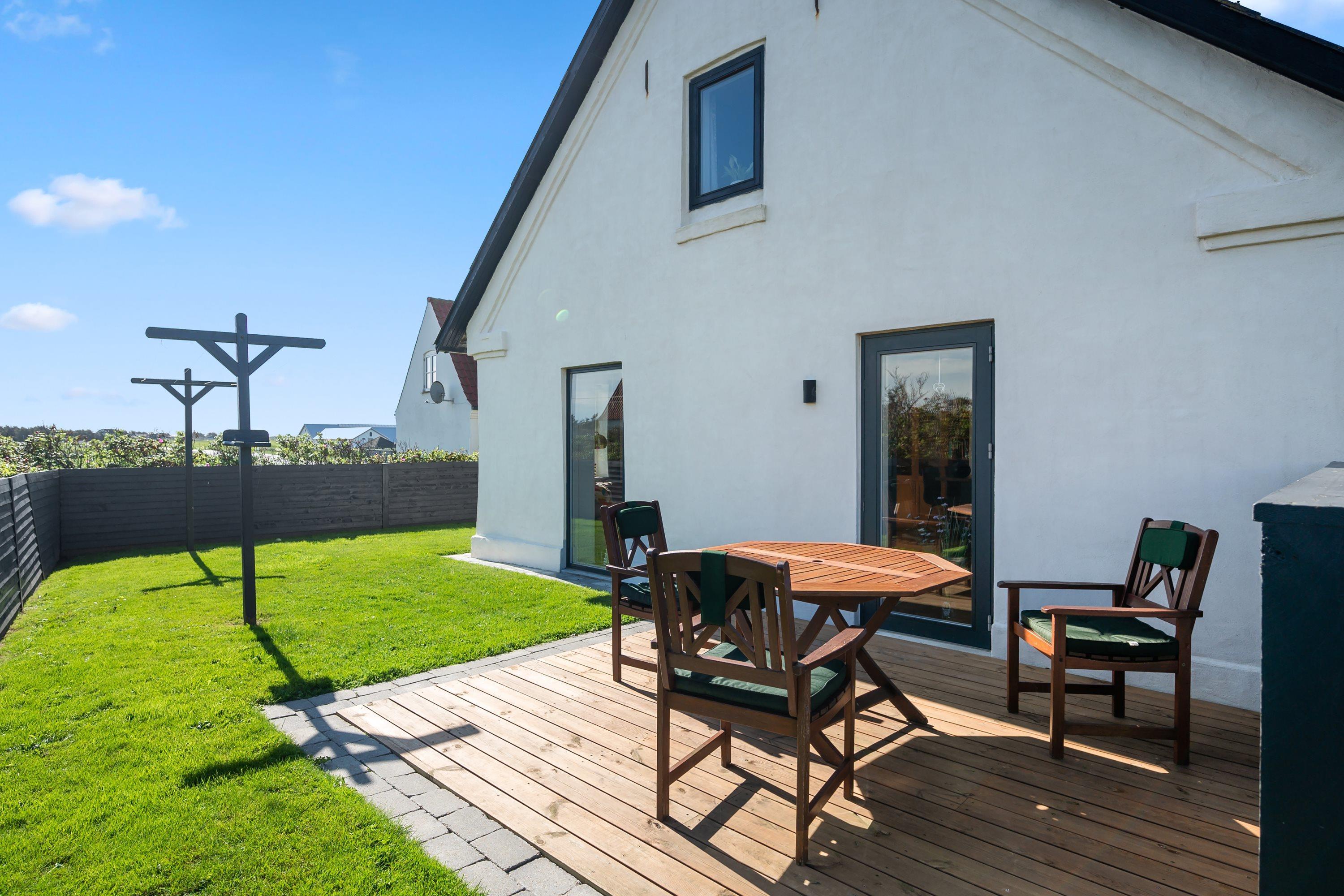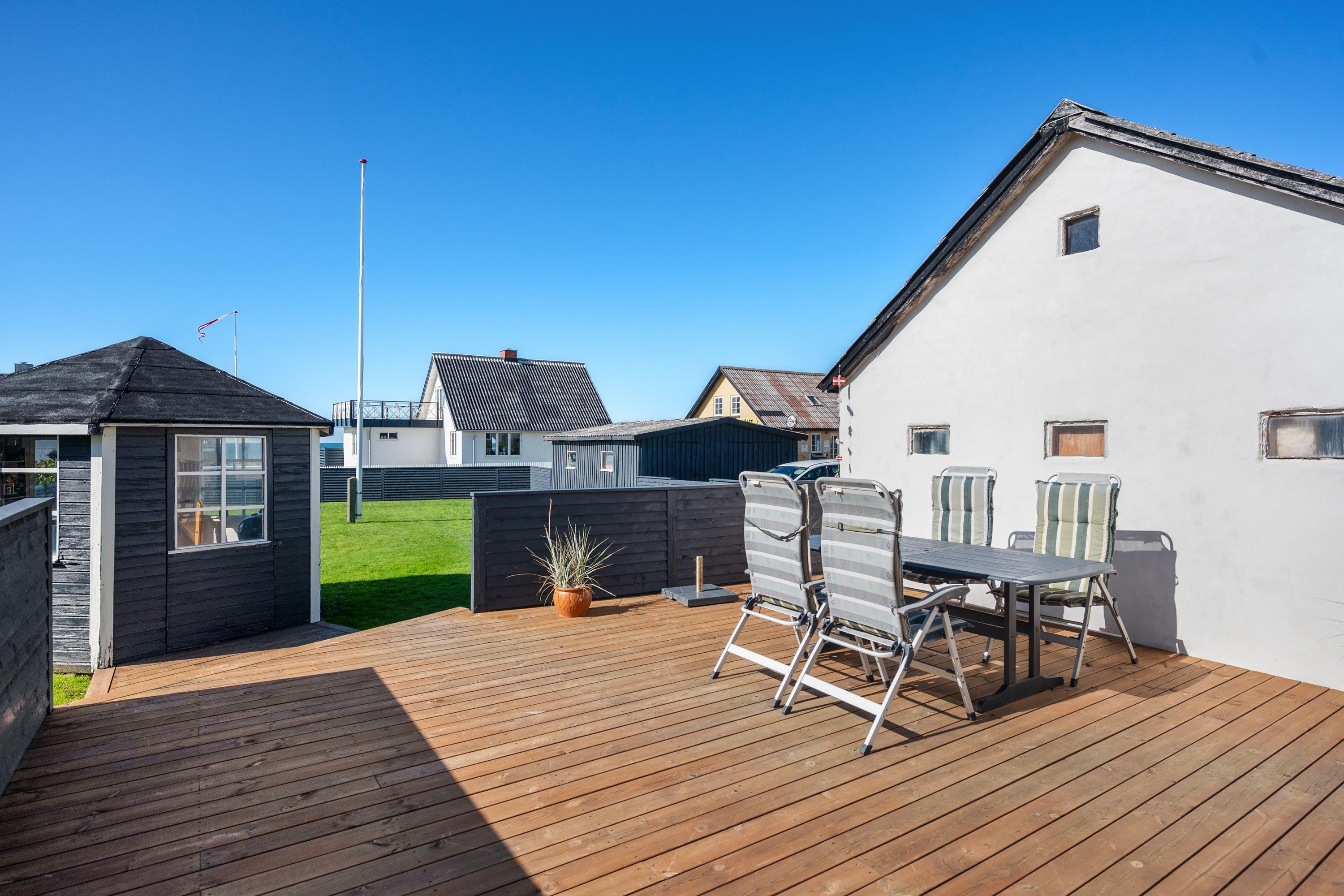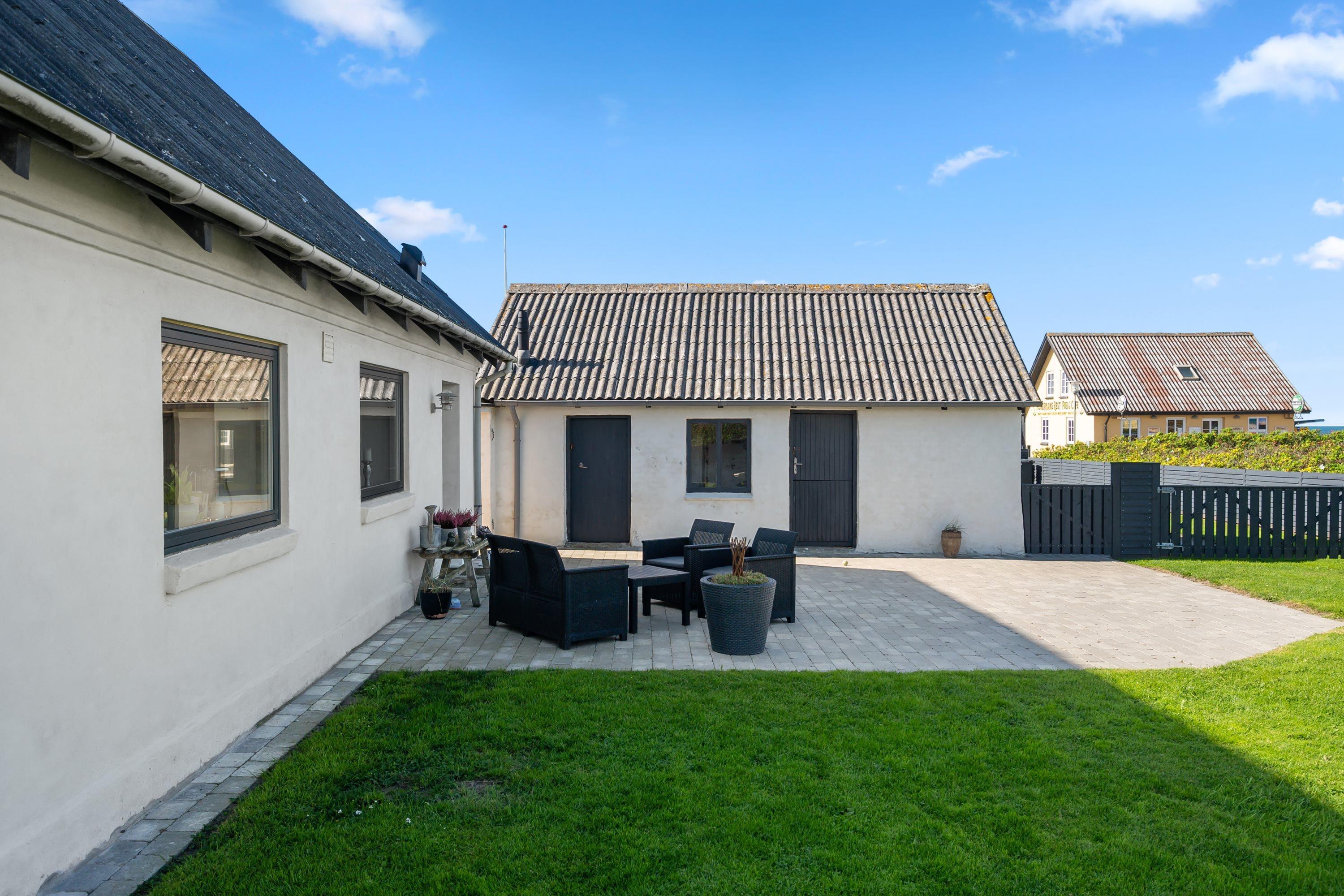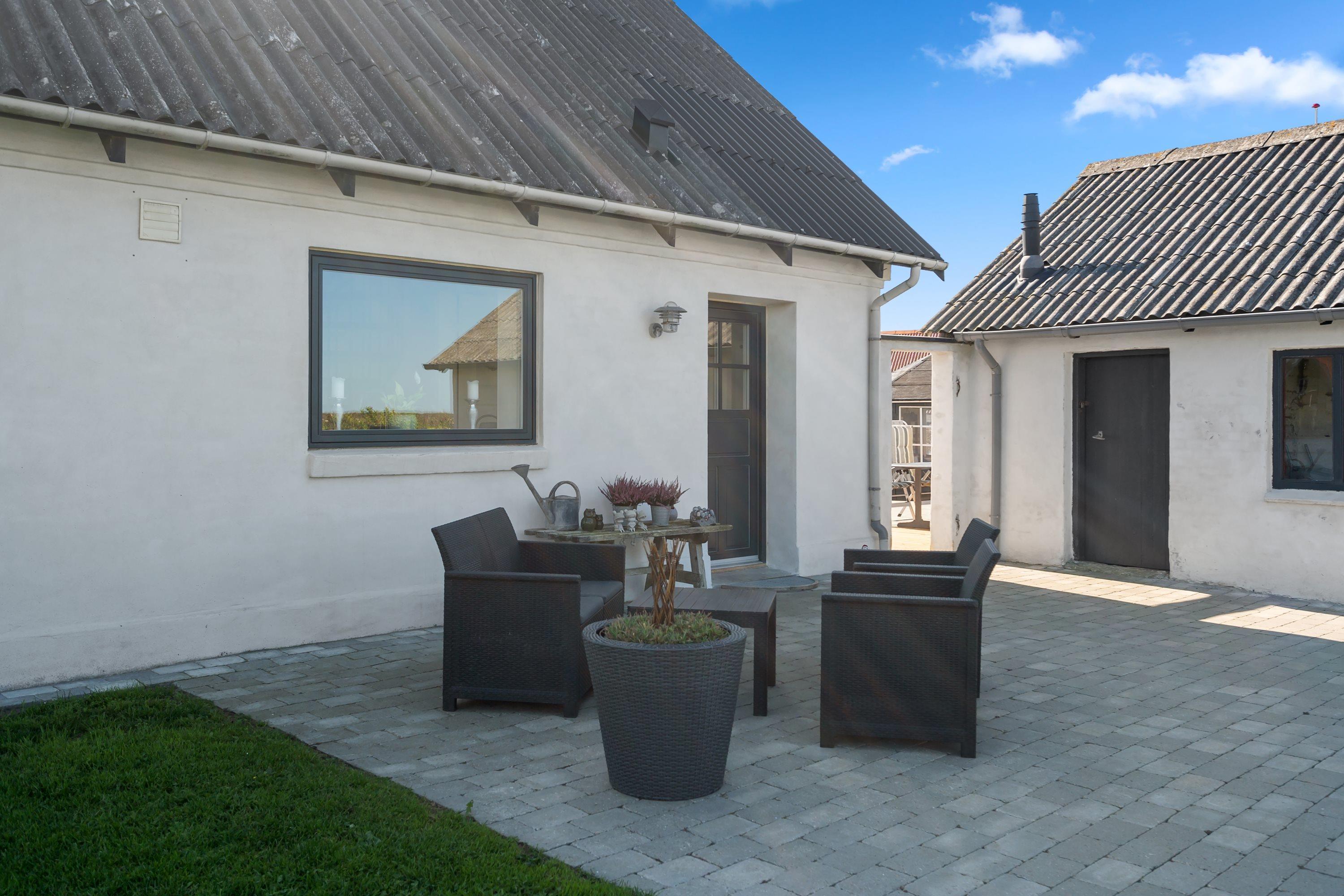 Udendørsområde: Selve grunden er på 906 kvadratmeter og har købmanden og grillbaren som genboer, og naturen som ramme med en klar udsigt til Vesterhavet. Her er skønne terrasser, og huset er omgivet af en dejlig plæne, der kan lukkes af, hvis man har sin firbenede ven med på ferie. Der er altså rig mulighed for at finde læ for vestenvinden, når den viser sine muskler. I Nørre Lyngby er der masser af rå natur og mange muligheder for gå- eller vandreture. Det populære Rubjerg Knude Fyr ligger i nærheden, og der er ti minutters kørsel til hhv. Løkken og Lønstrup, hvor der er rige muligheder for oplevelser af mangfoldig karakter.