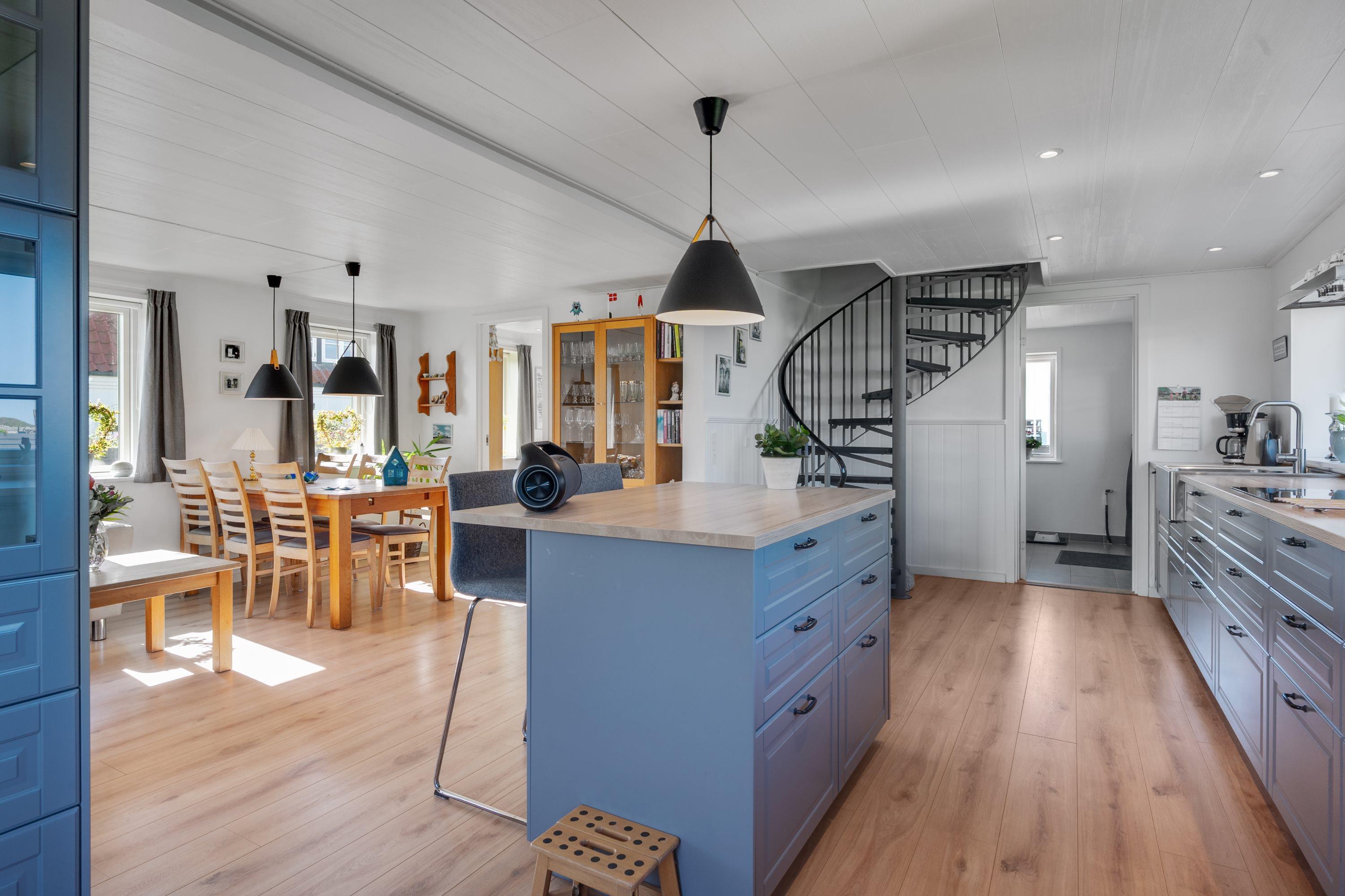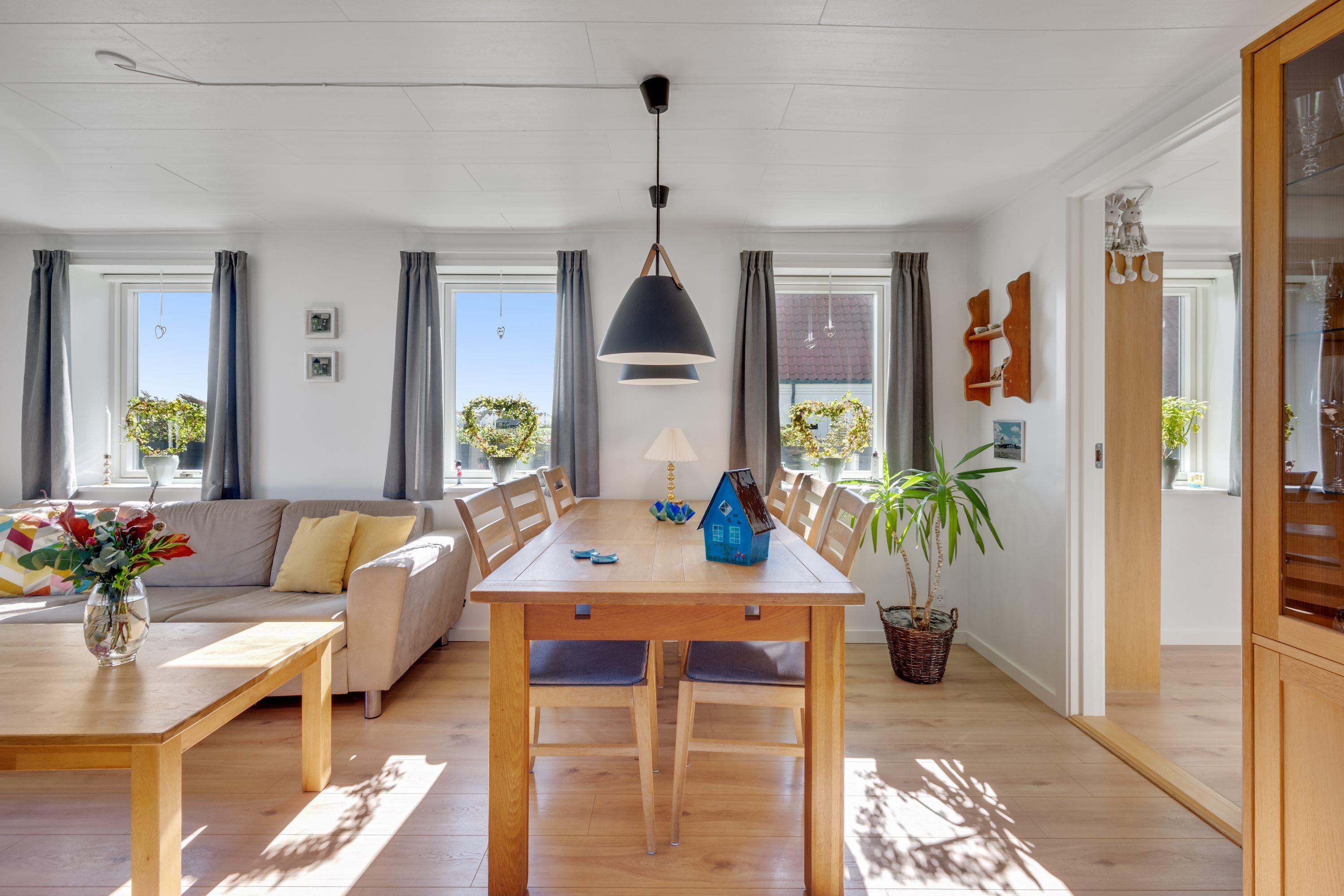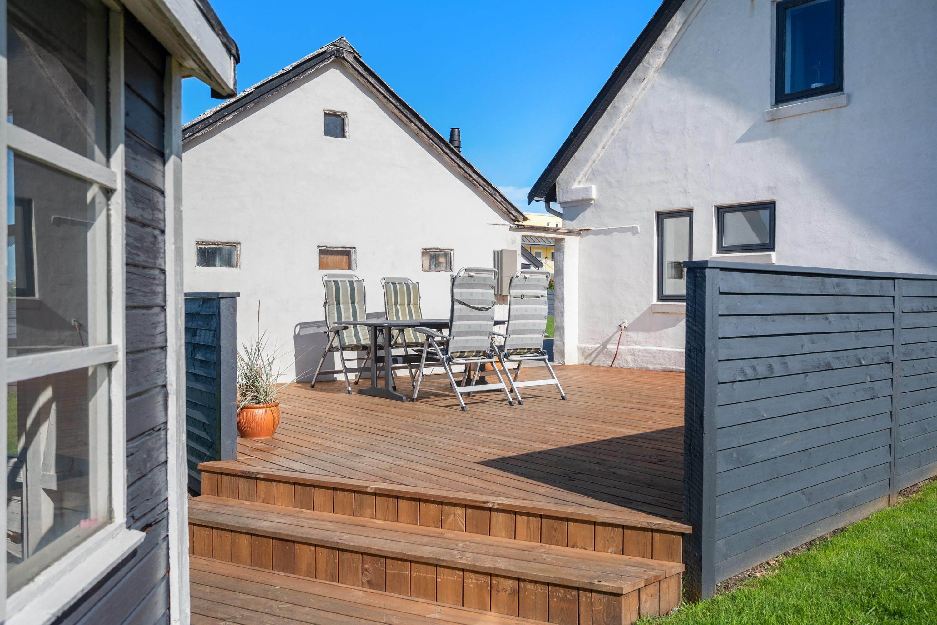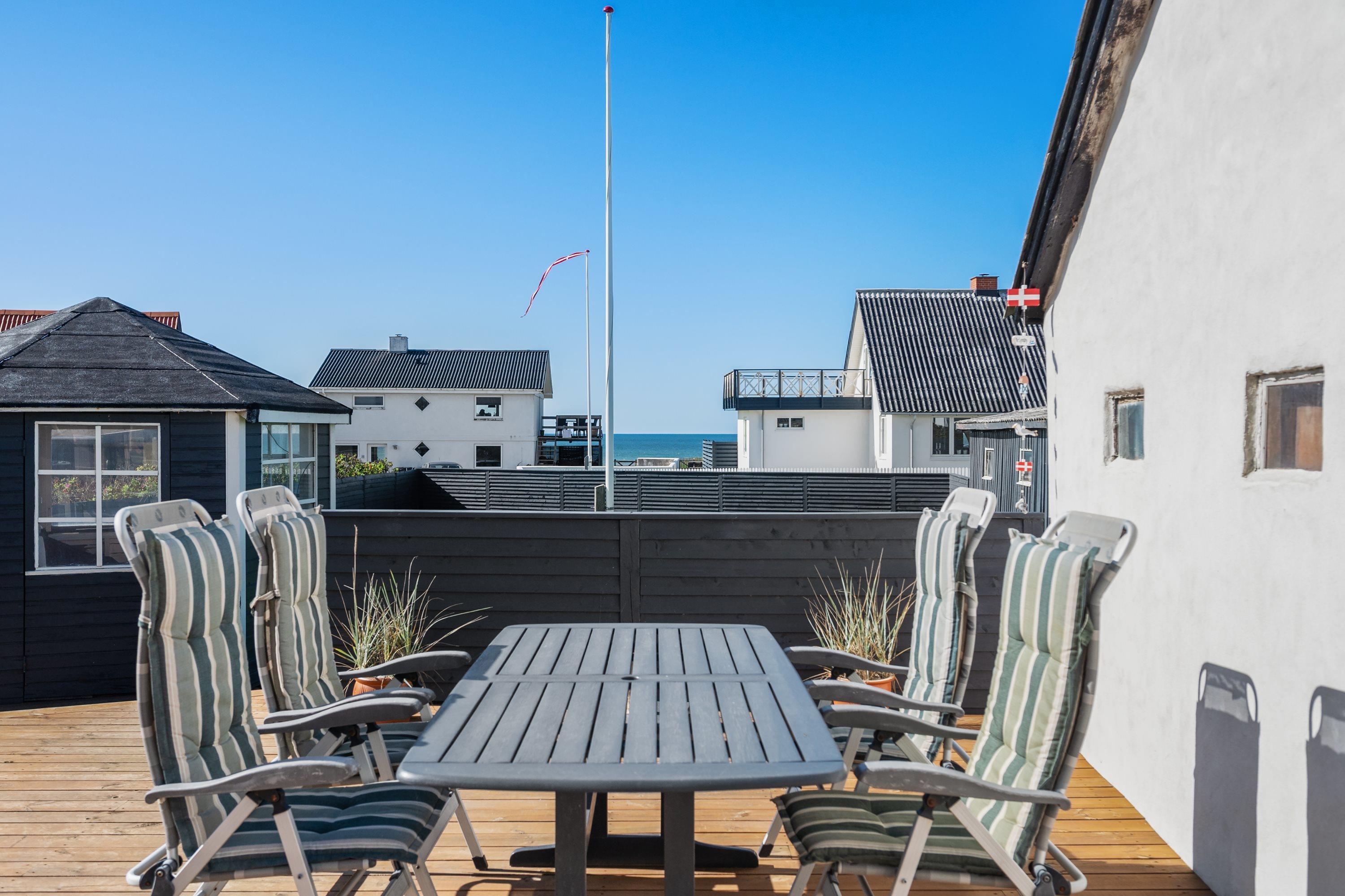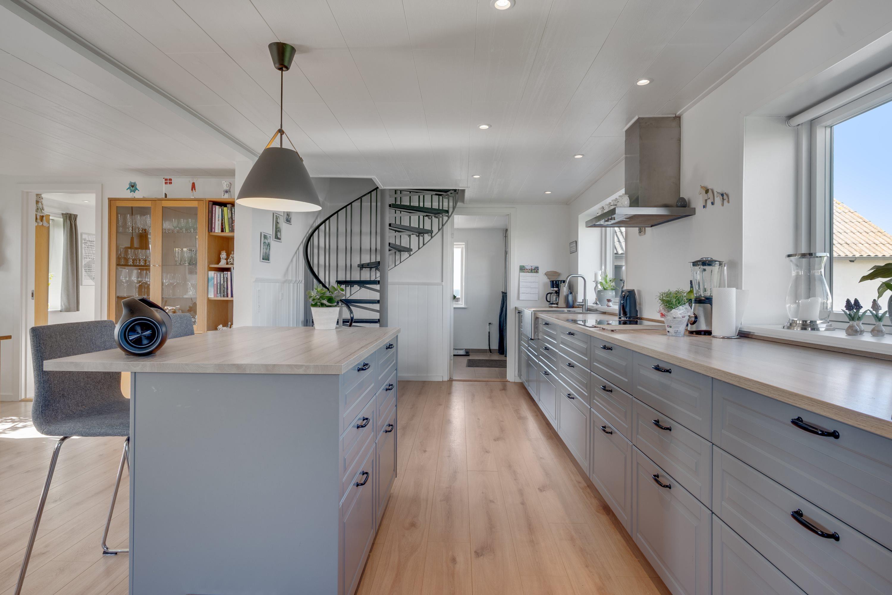 Udendørsområde: Selve grunden er på 906 kvadratmeter og har købmanden og grillbaren som genboer, og naturen som ramme med en klar udsigt til Vesterhavet. Her er skønne terrasser, og huset er omgivet af en dejlig plæne, der kan lukkes af, hvis man har sin firbenede ven med på ferie. Der er altså rig mulighed for at finde læ for vestenvinden, når den viser sine muskler. I Nørre Lyngby er der masser af rå natur og mange muligheder for gå- eller vandreture. Det populære Rubjerg Knude Fyr ligger i nærheden, og der er ti minutters kørsel til hhv. Løkken og Lønstrup, hvor der er rige muligheder for oplevelser af mangfoldig karakter.