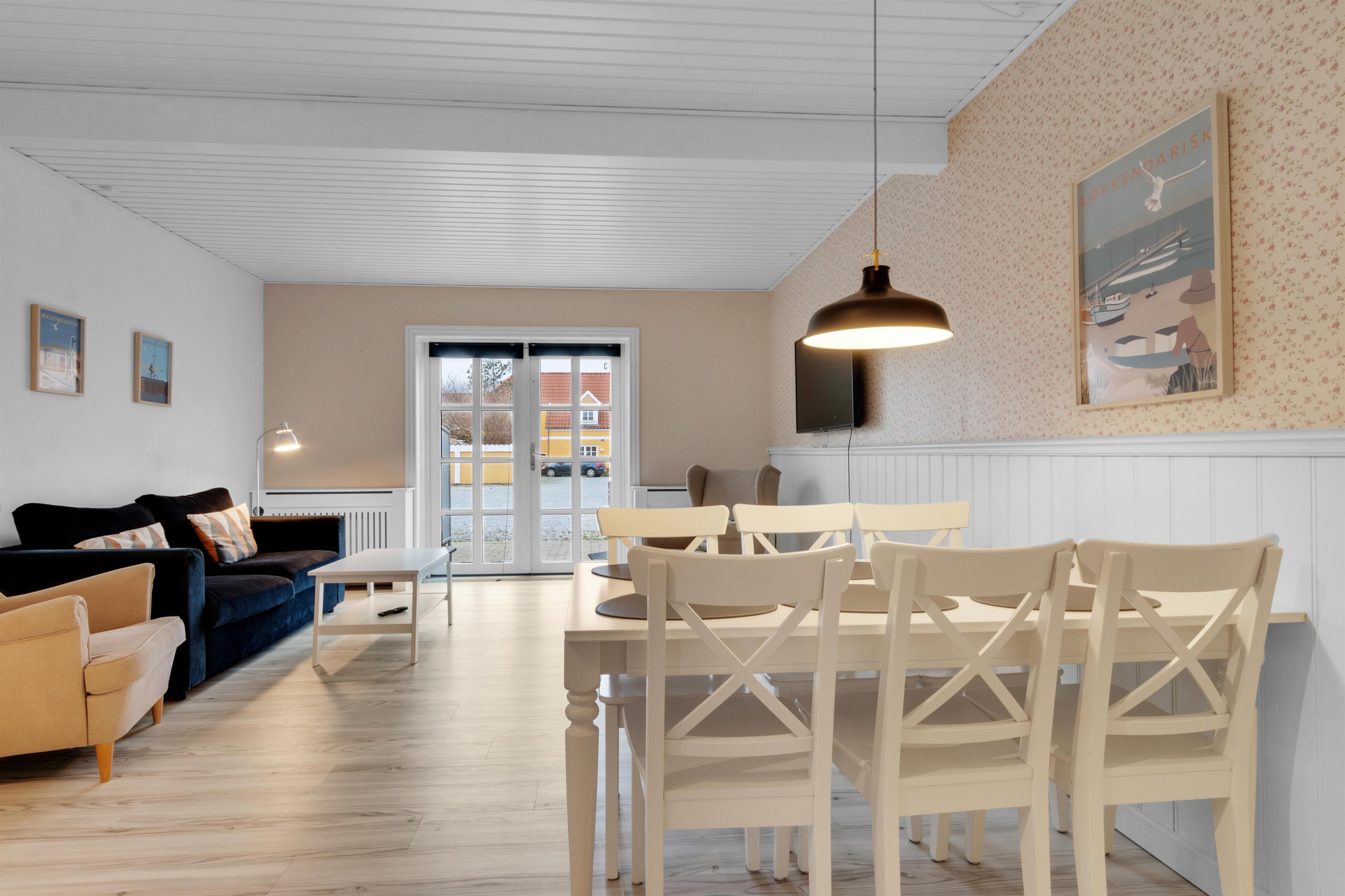Ferieboligen er simpelthen super hyggelig og samtidig praktisk indrettet i to plan. Her er både plads til syvsovere og natteravne, idet soverummene er placeret på boligens første sal, mens stue, bad og køkken/alrum er i stueplan. Fra det åbne køkken/alrum og stue er der udgang til en dejlig terrasse, hvor man kan sidde i solen og hænge sit saltvandsfyldte badetøj til tørre efter en dejlig tur på stranden.