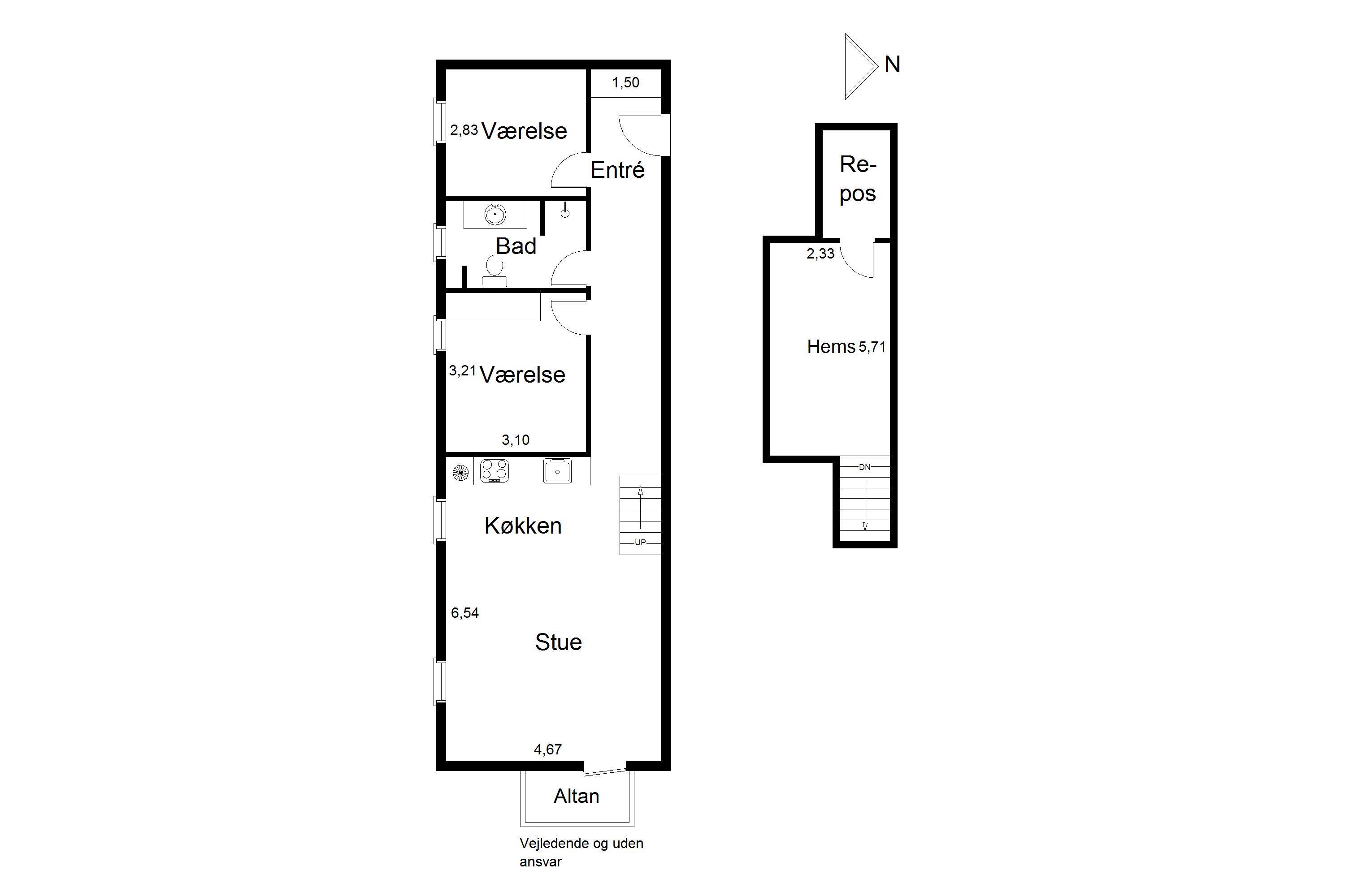 Lys ferielejlighed i Løkken centrum med hyggelig hems og altan, tæt på strand og byliv.