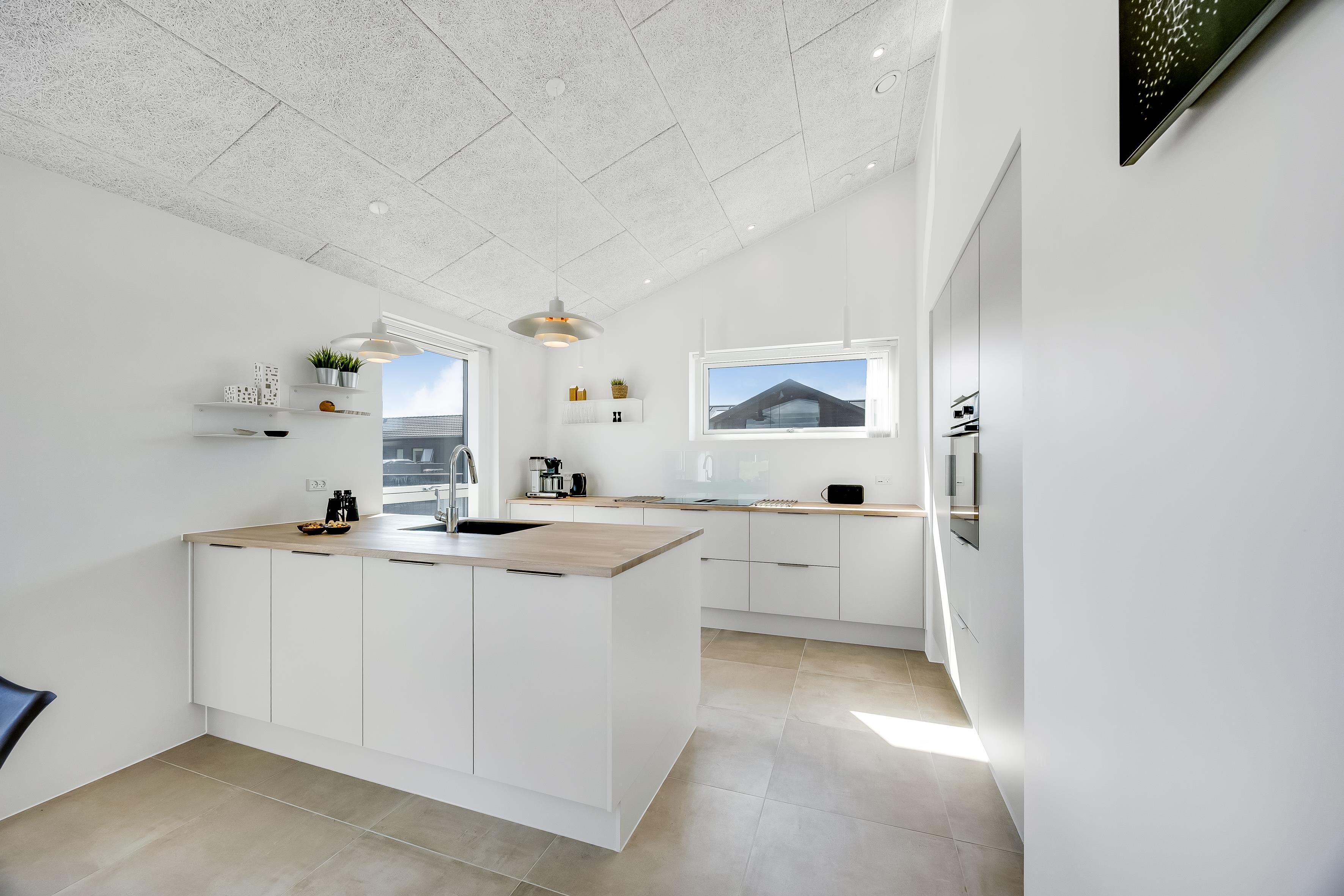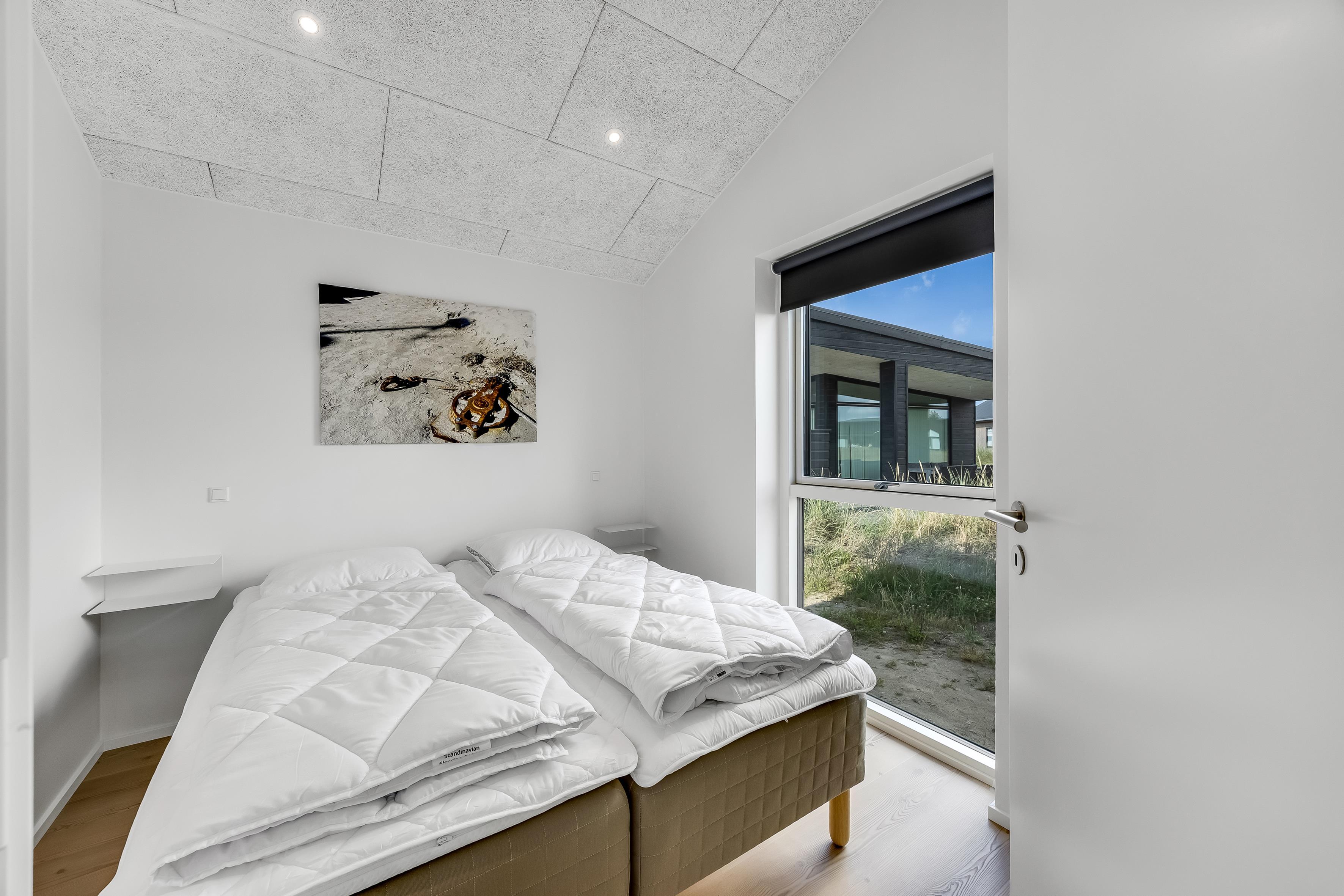 Hovedhuset har plads til 6 personer, og i det hyggelige anneks er der yderligere 2 sovepladser samt eget bad – i alt 8 sengepladser fordelt på 3 dobbeltsenge og 2 enkeltsenge. Her får du en bolig med et flot, åbent køkken-alrum i forlængelse af stuen, hvor indretningen er lys og gennemtænkt. Badeværelserne er rummelige og stilfulde, og ved indgangen ligger et praktisk bryggers. Selvom huset ligger i et nybyggerkvarter, er det velplaceret med fokus på privatliv.