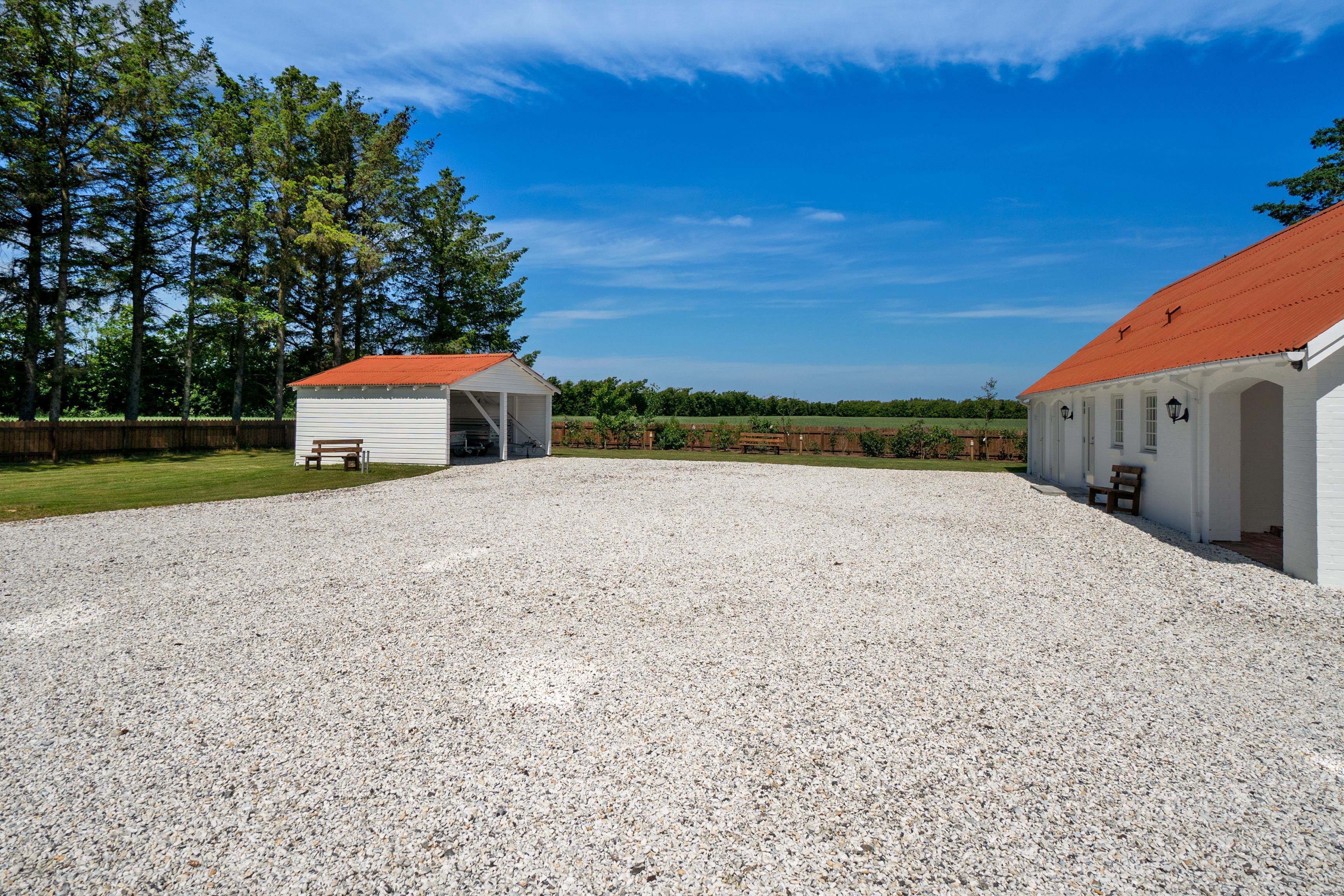 Fornøjelserne er heller ikke til at overse udendørs, hvor haven omkranses af et rækværk af træ. Rundt i haven findes velplacerede udendørslamper, som skaber et smukt syn ved aftentid.