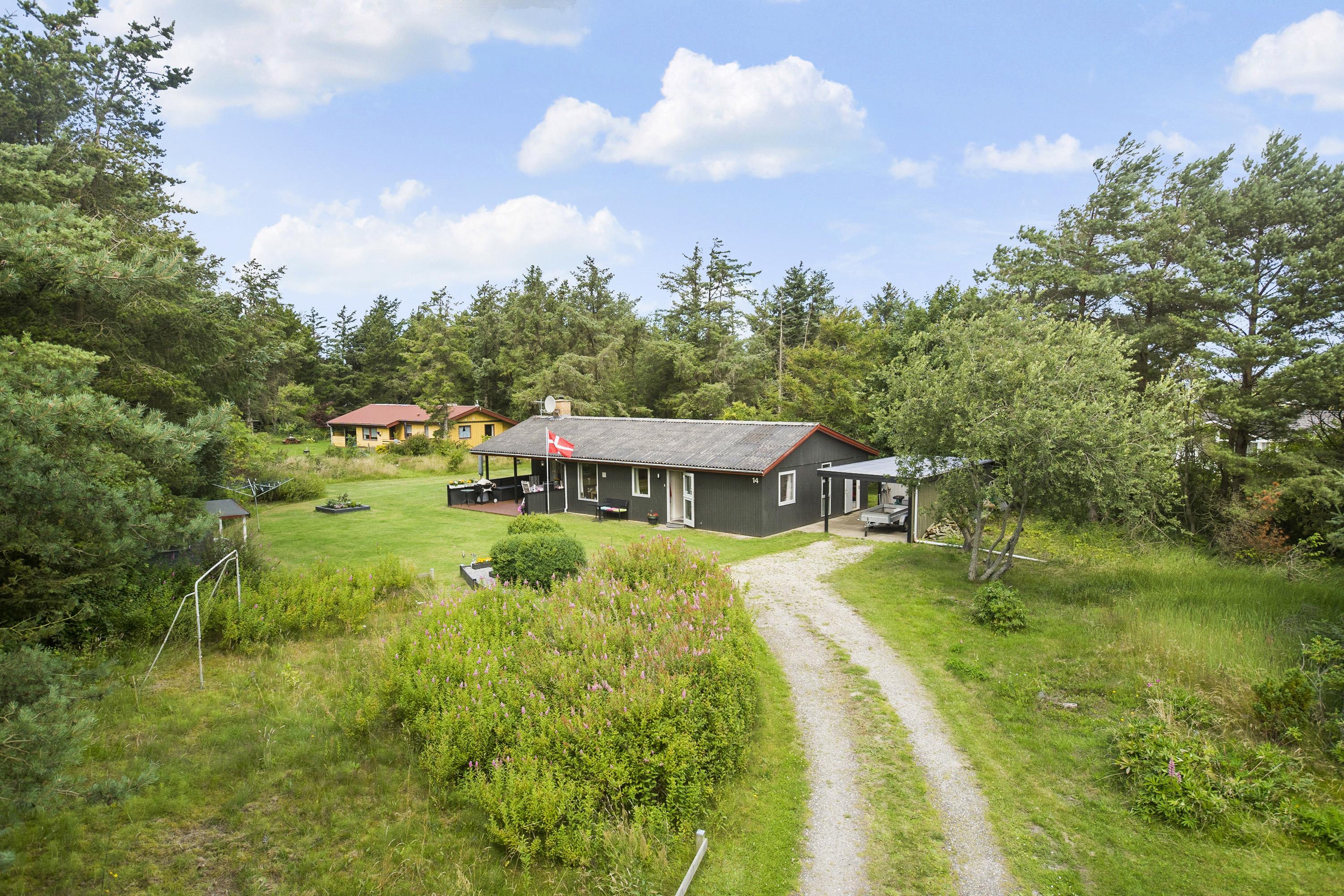 Naturen i Nørre Lyngby er kendt for at være fantastisk! Og Agertoften 14 ligger rigtig naturskønt på en stor grund på hele 2500 kvadratmeter, så der er masser af plads til hygge i haven! Terrassen er delvist overdækket, og du kan dermed finde plads i såvel sol som skygge, alt efter behov. Der er læskærme på terrassen, så den værste blæst ikke generer udeklimaet. Stranden er blot 600 meter væk, og gåturen dertil er rigtig smuk og kendetegnende for nordvestkystens sommerhusområder.