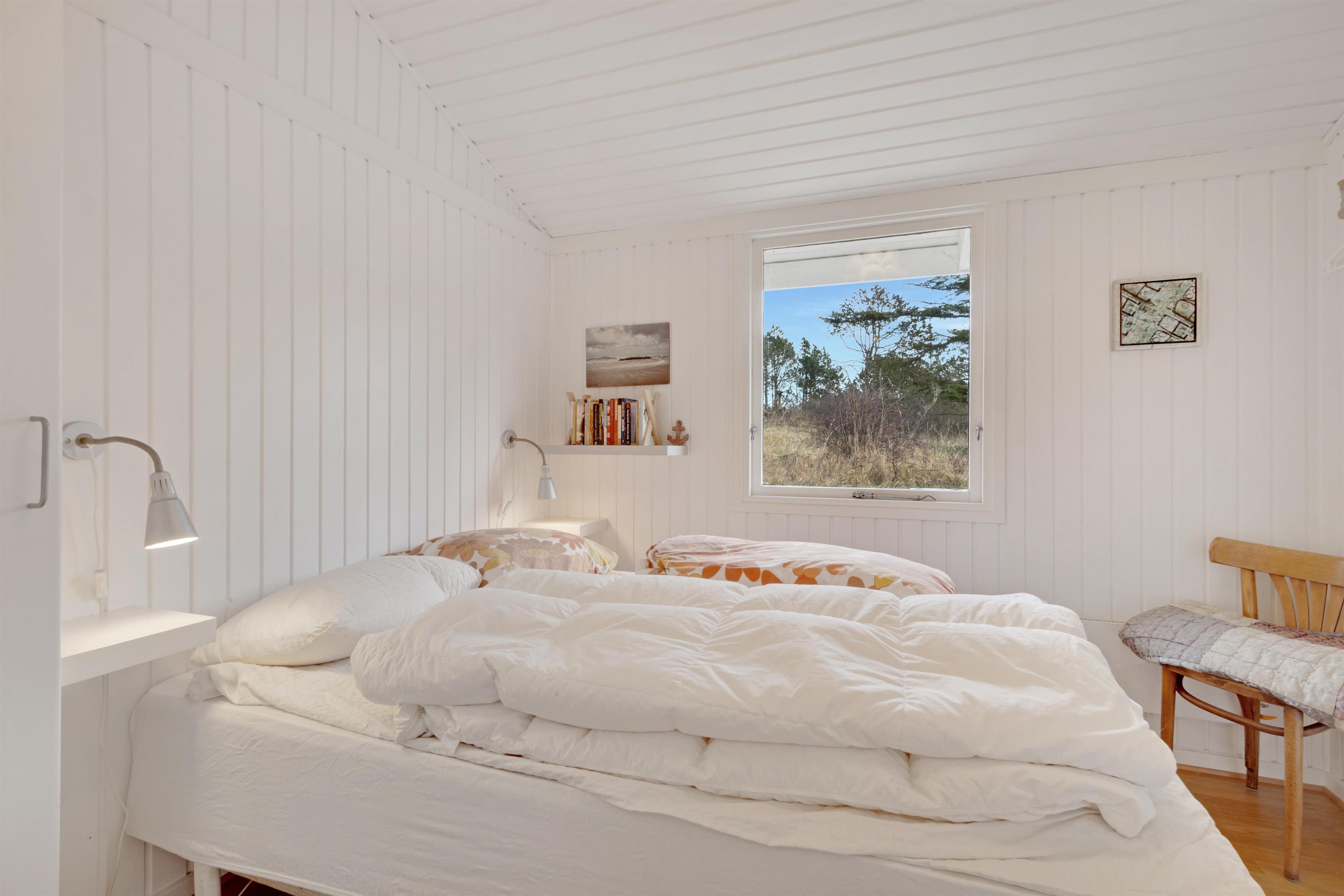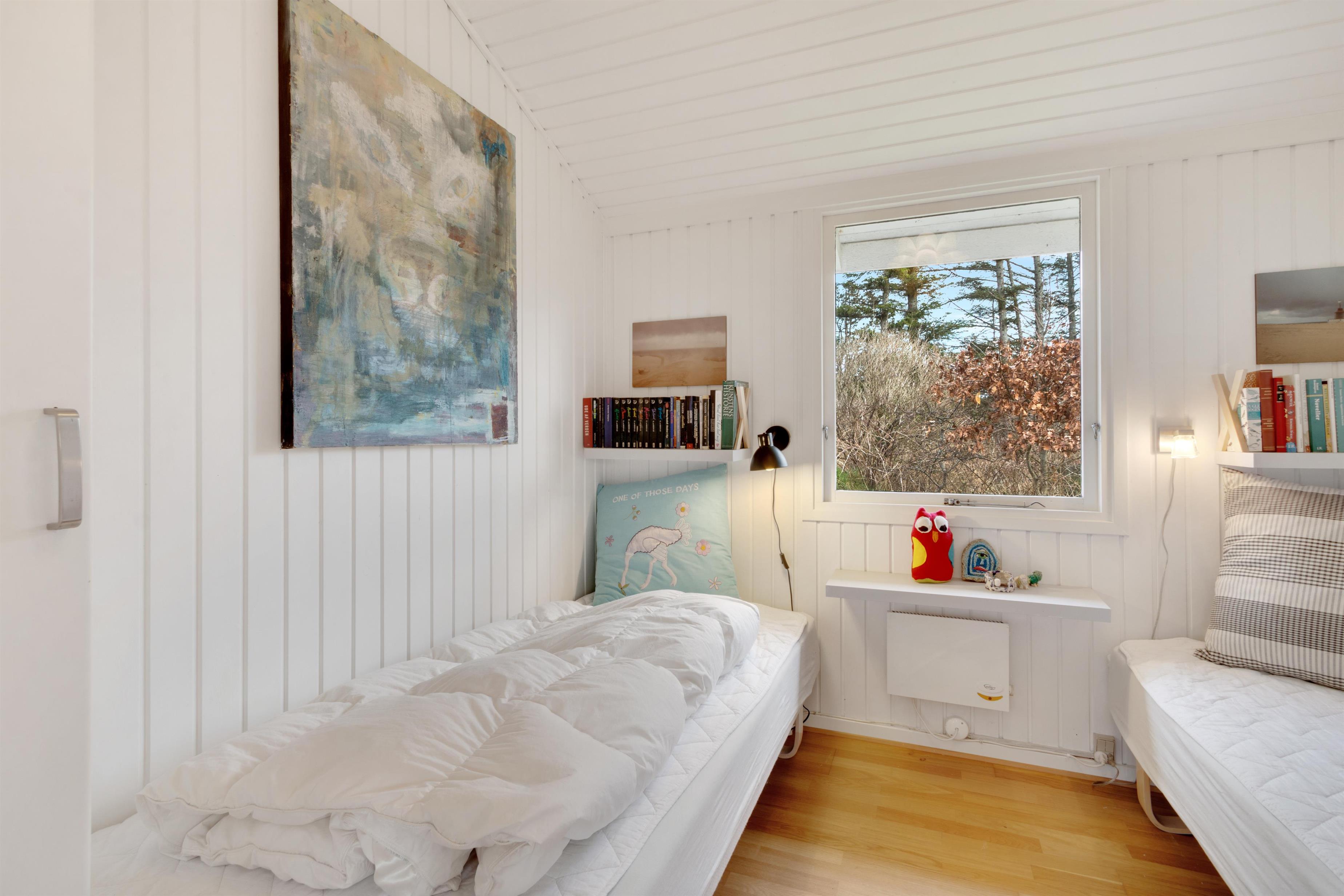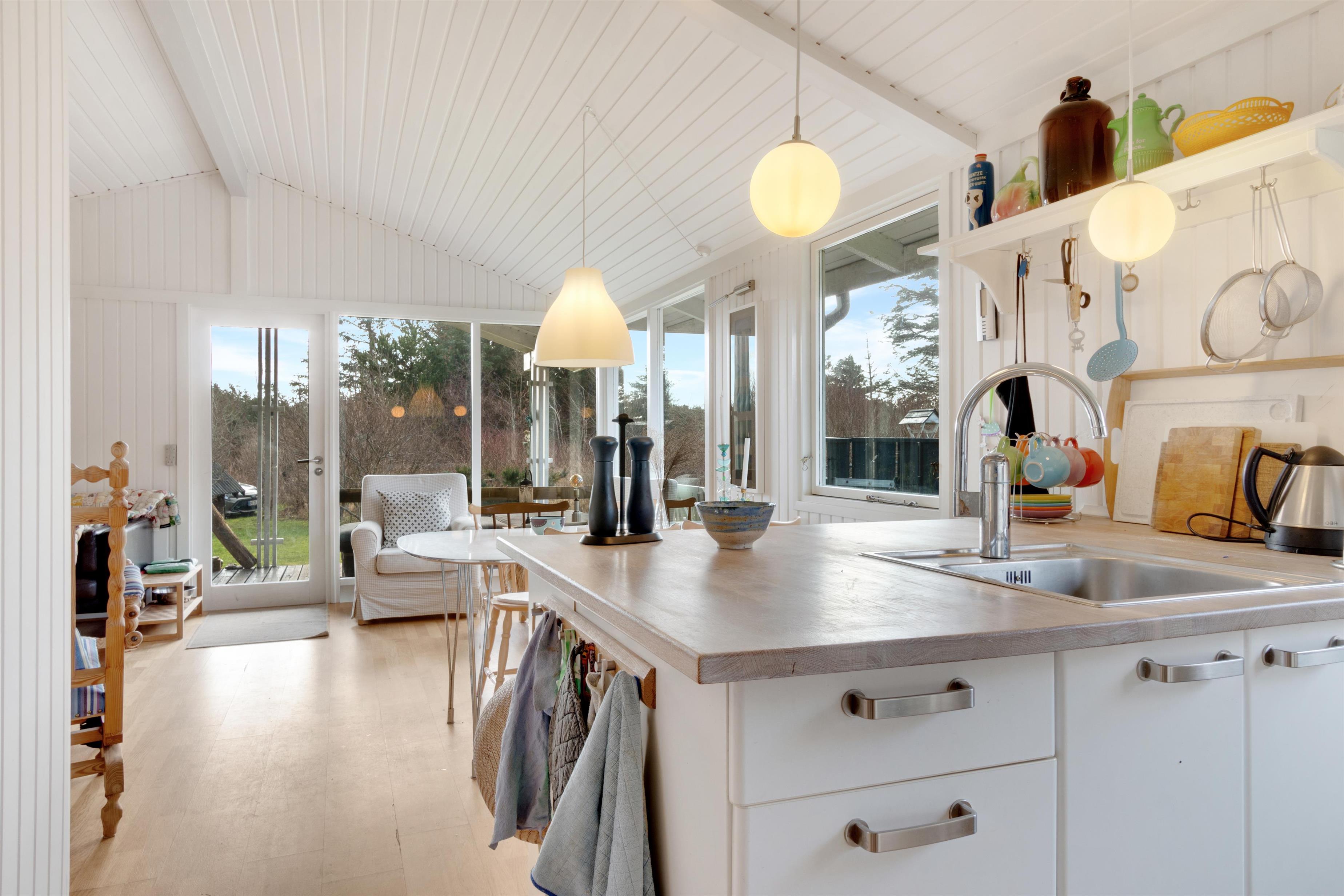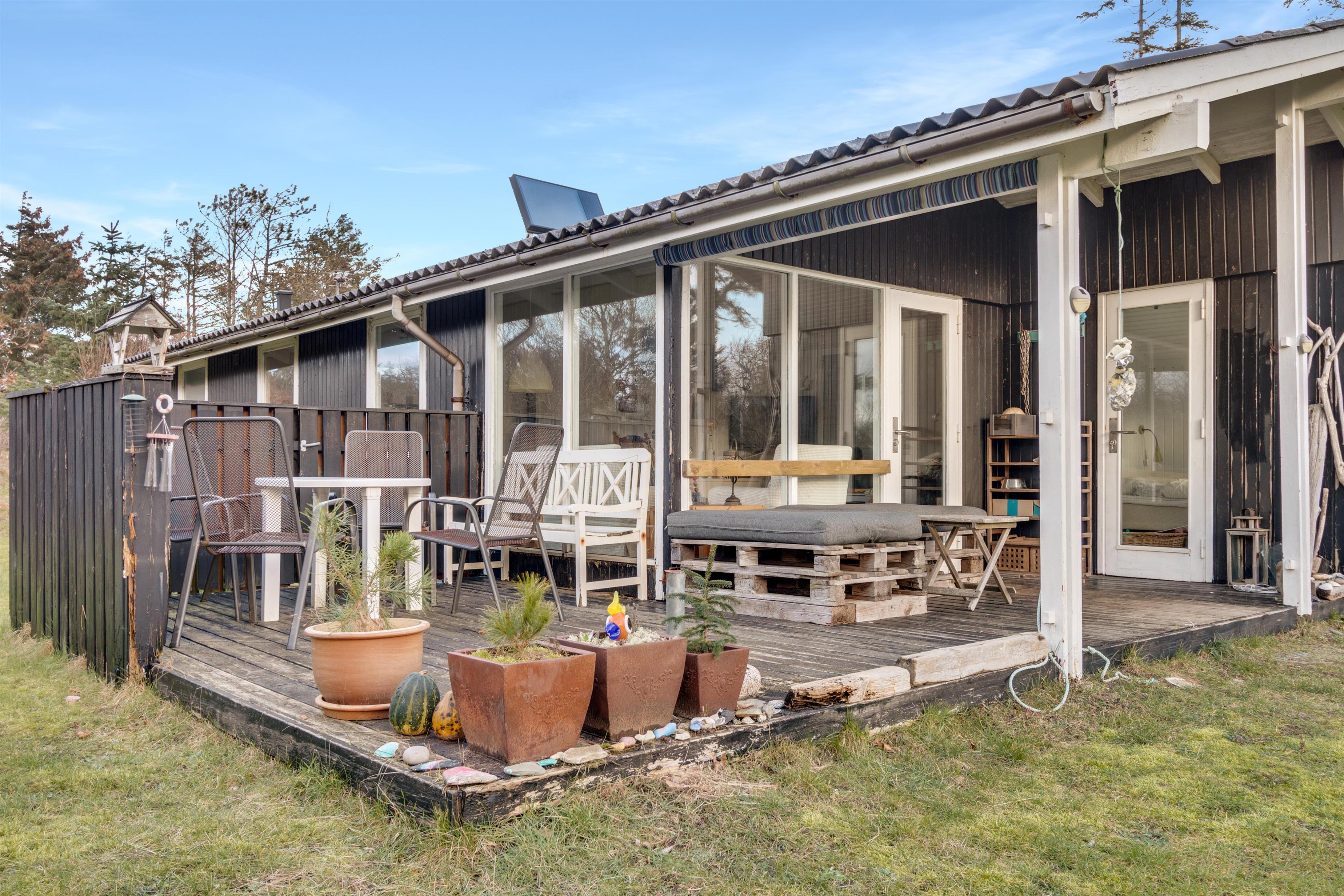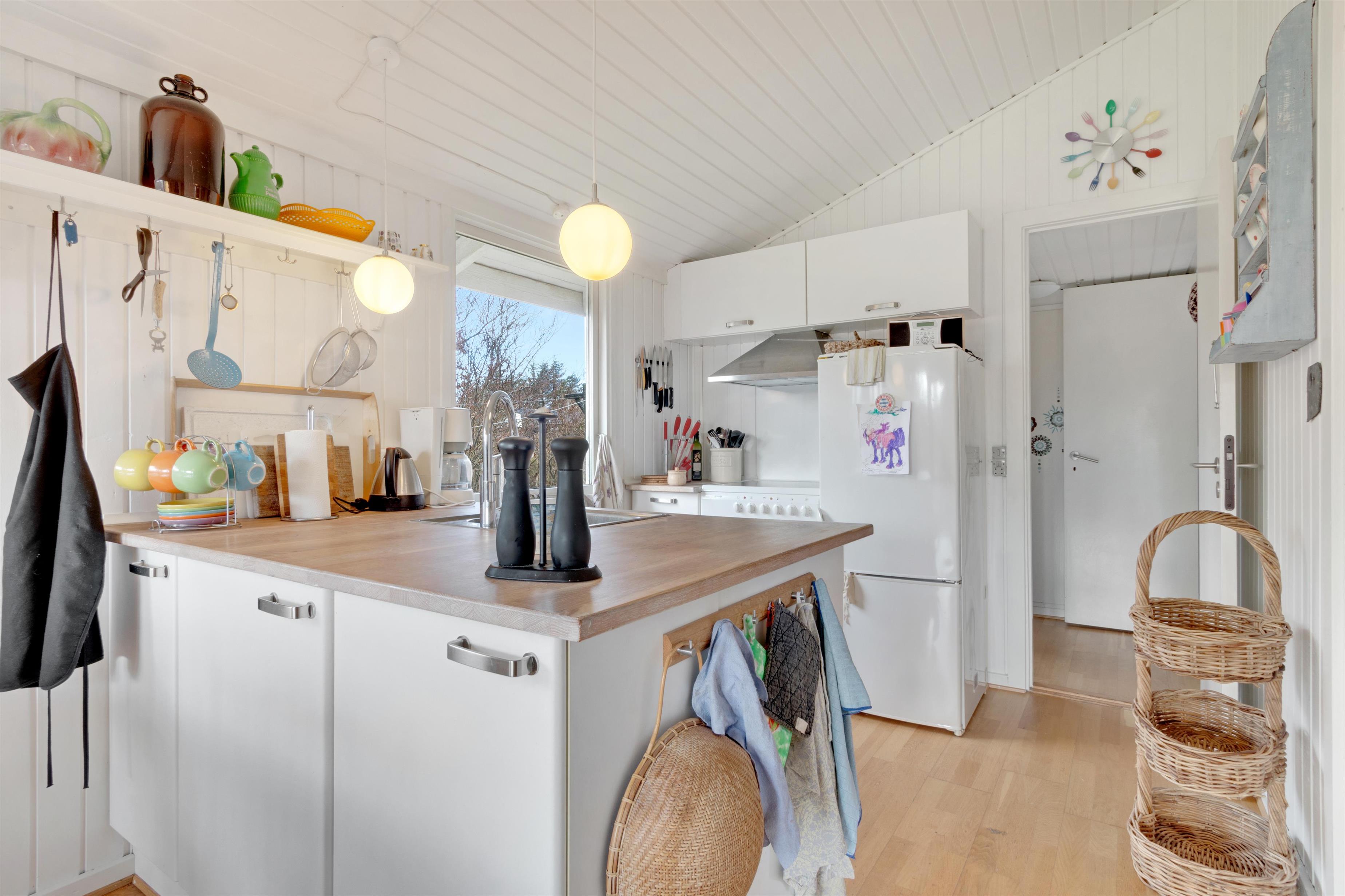 Dette sommerhus er virkelig charmerende! I husets super hyggelige stue finder du en dejlig brændeovn, og her er kimen lagt til mange timers afslapning. Stuen ligger i åben forlængelse af spisestue og køkken, og man kan komme hinanden ved og komme ned i gear. Der er to soverum, hvoraf det ene har en dobbeltseng og det andet har to enkeltsenge. I haven kan man nyde en ugeneret plads i solen, når den danske sommer er mild. Og ellers er det oplagt at trække indenfor i et af husets hyggelige rum. Er du til en gåtur til stranden, finder du vandsiden mindre end 600 meter væk. Der er lidt længere til indkøbsmuligheder - men herregud 2,5 kilometer er ingenting at regne!