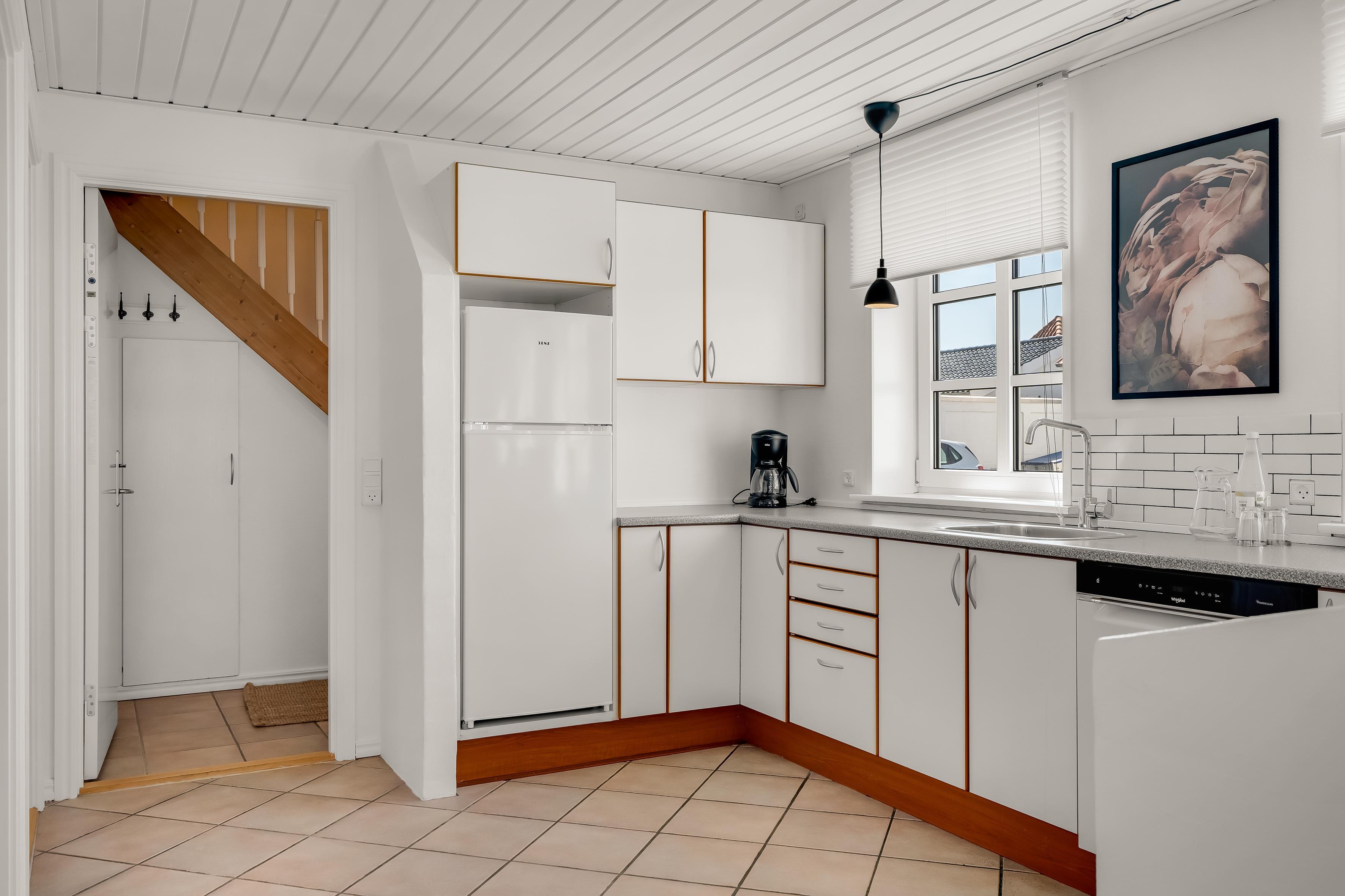 Du træder ind i en opgang, der rummer plads til praktiske fornødenheder, og derfra starter vejen ind i et super dejligt køkken/alrum/stue med masser af lys og luft. Fra dette rum kan du tilgå ferieboligens rummelige badeværelse, og soveværelse, samt den dejlige have, hvor du helt ugeneret kan finde læ og ro. Boligen er oplagt at leje til sin ferie, når man gerne vil opholde sig midt i Løkken by, samtidig med at man er tæt på vesterhavet, skøn natur og har sin egen have.