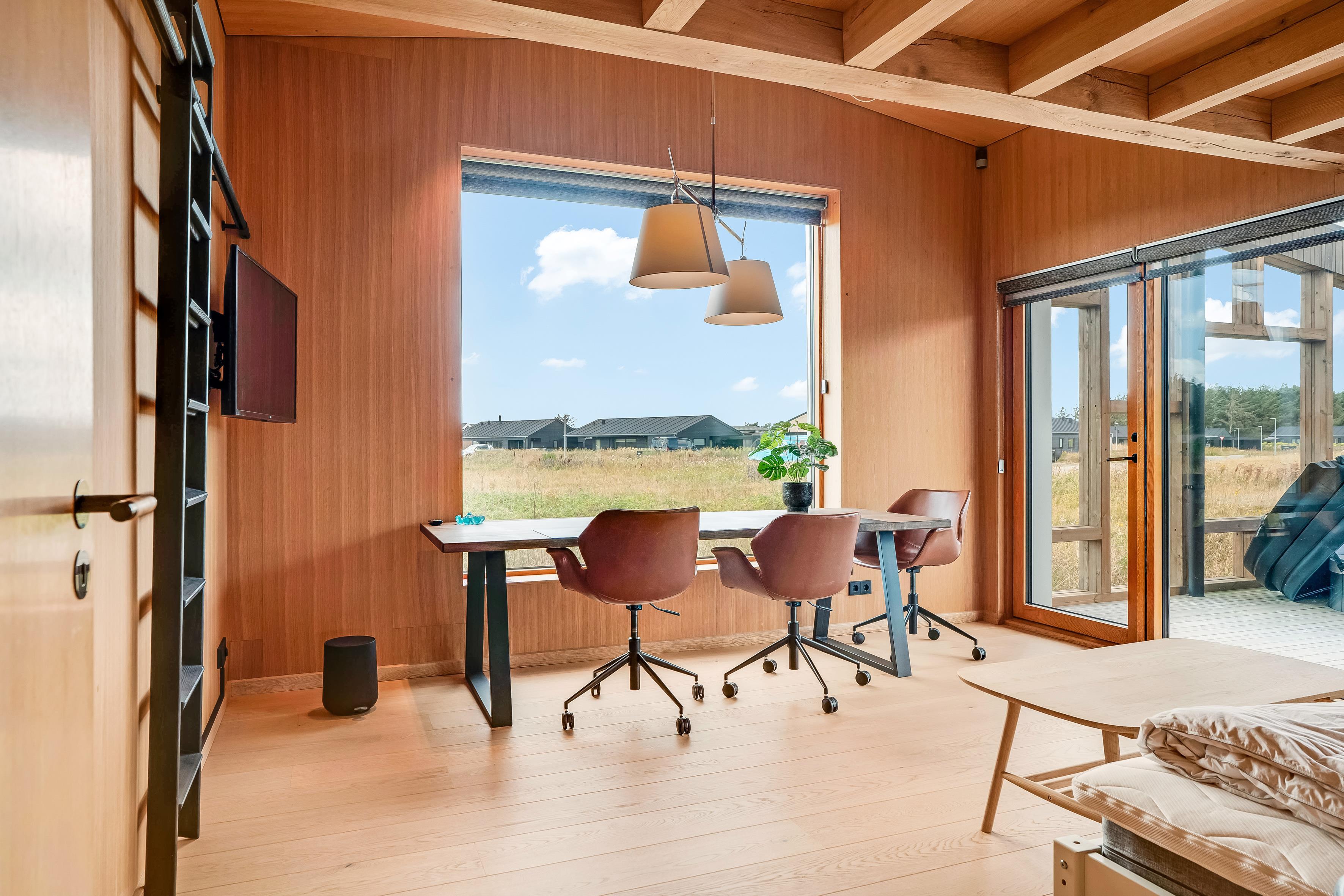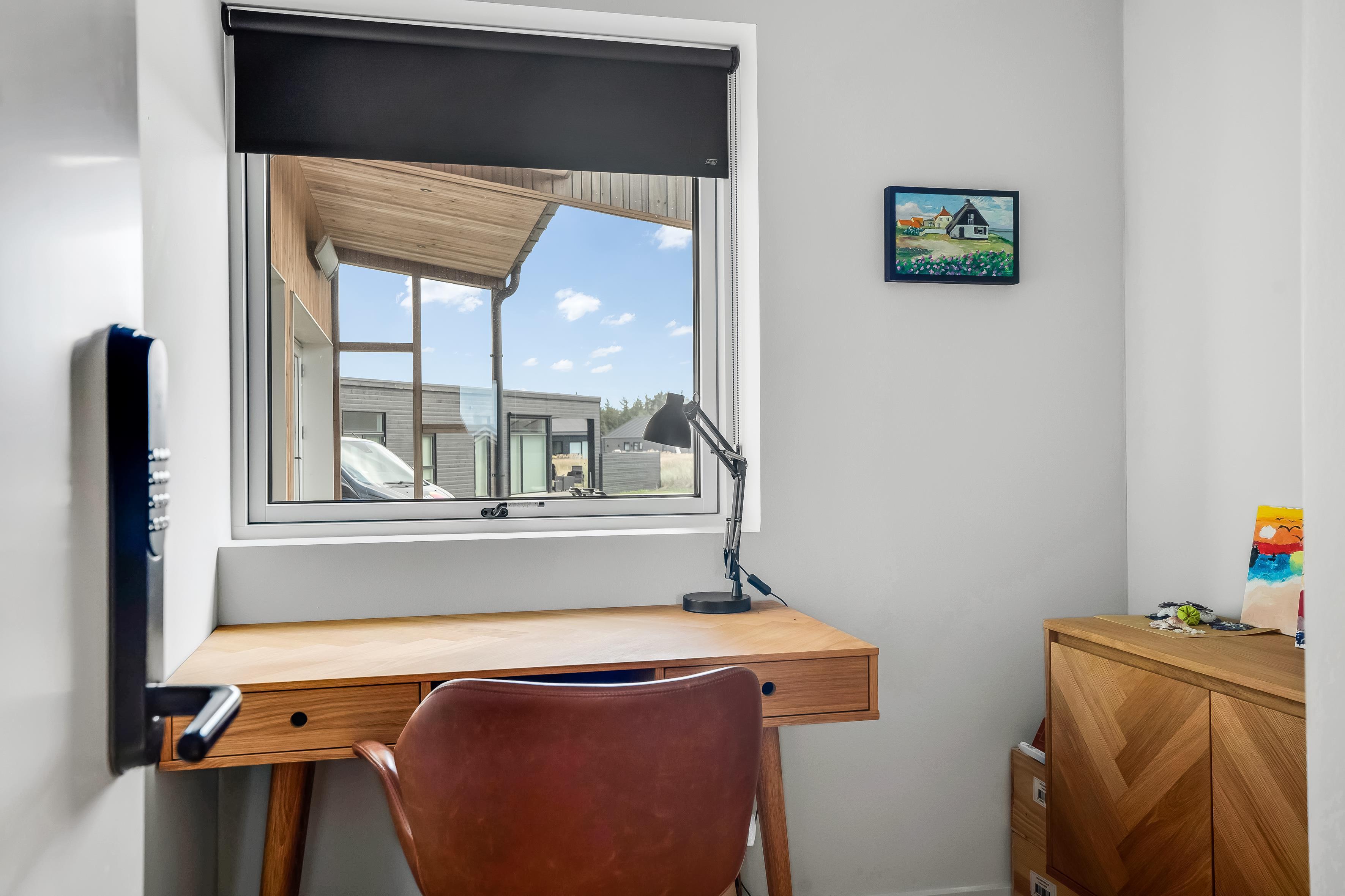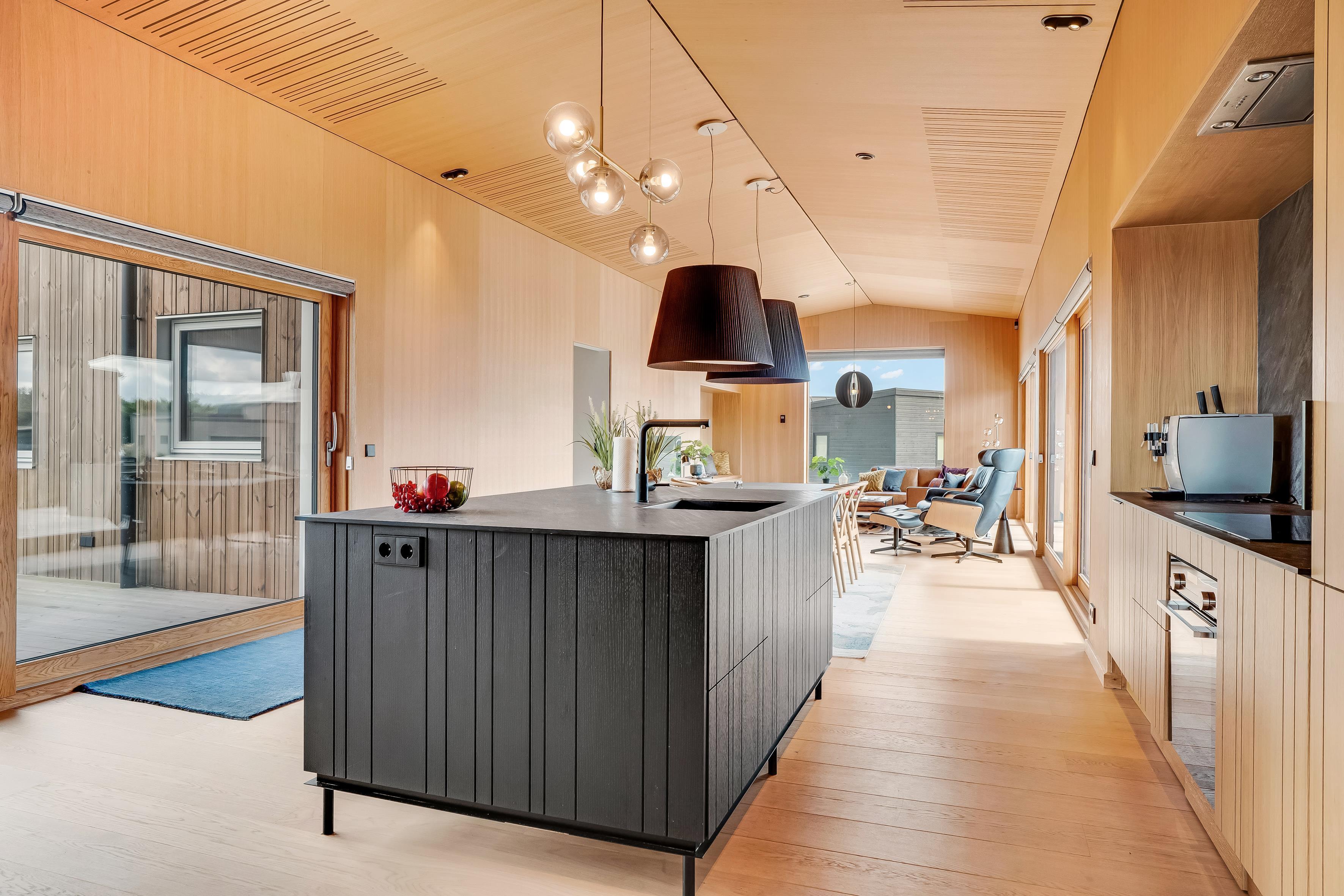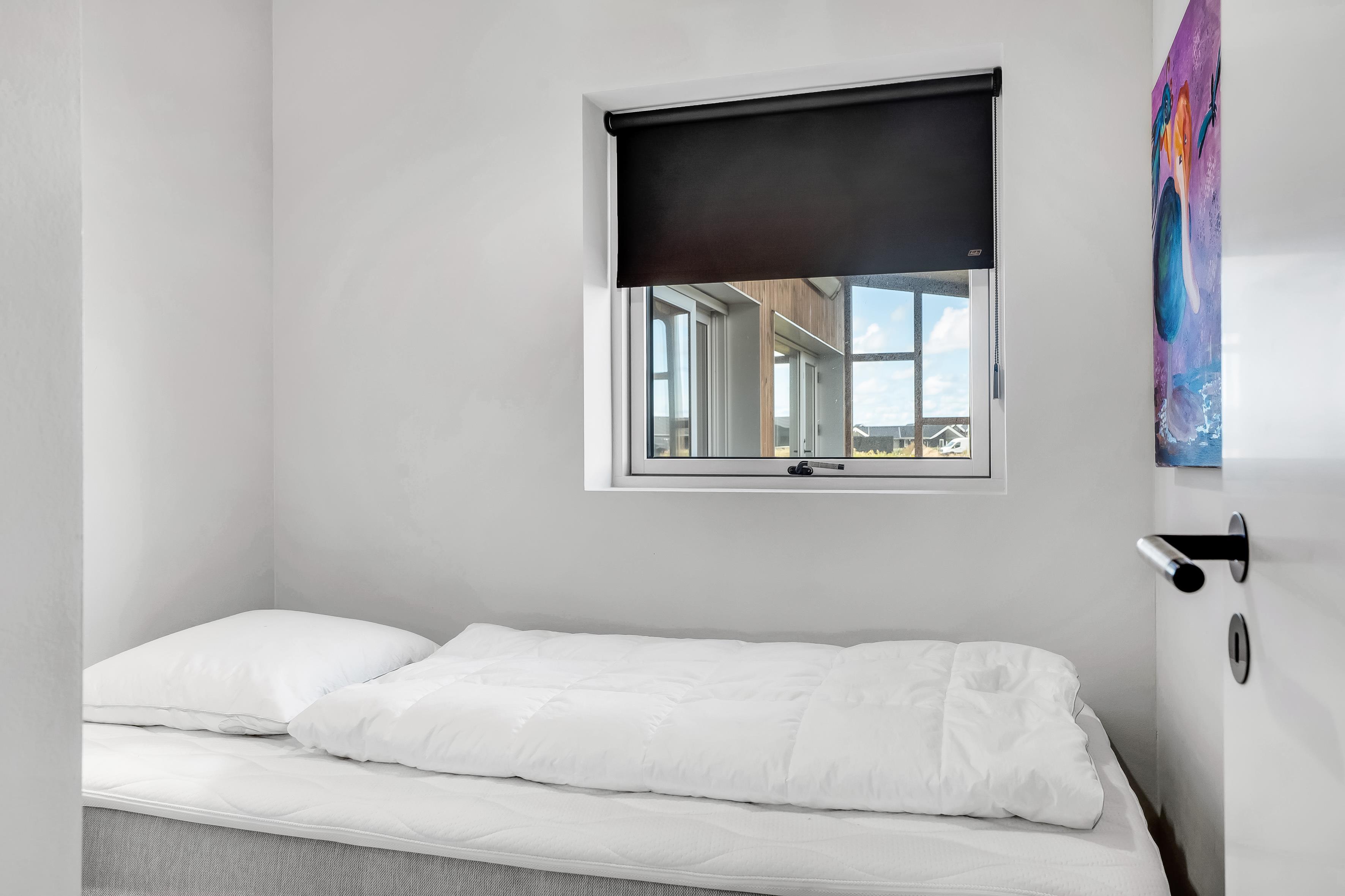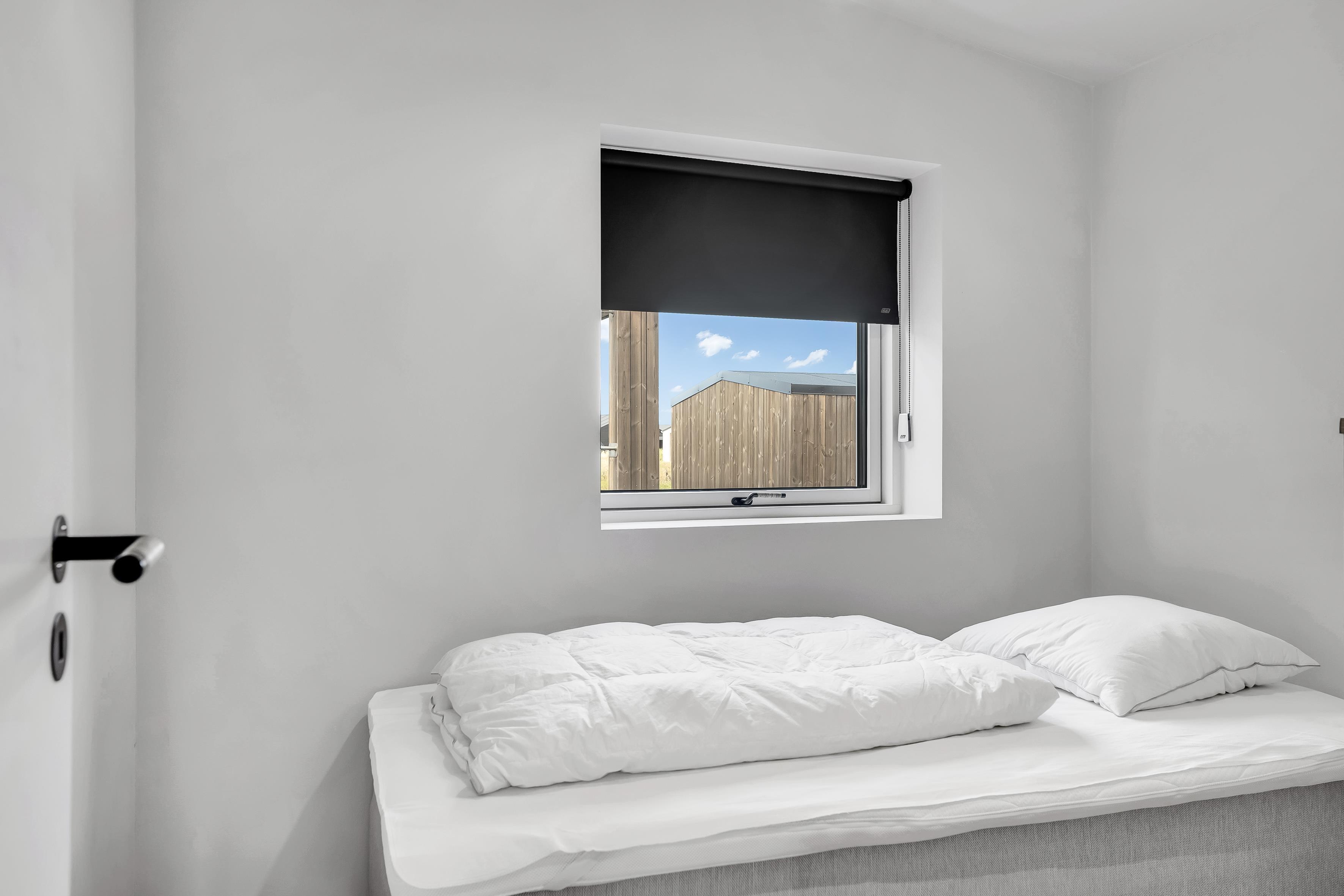 Sommerhuset rummer op til 7 gæster fordelt på 5 soveværelser med tre dobbeltsenge og to enkeltsenge. Hjertet af huset er det åbne køkken-alrum, som ligger i direkte forbindelse med stuen og byder på en lys, funktionel og velovervejet indretning i klassisk dansk design. De to badeværelser er både rummelige og elegant udstyret, og huset er placeret i et moderne nybyggerkvarter med både helårsboliger og ferieboliger side om side.