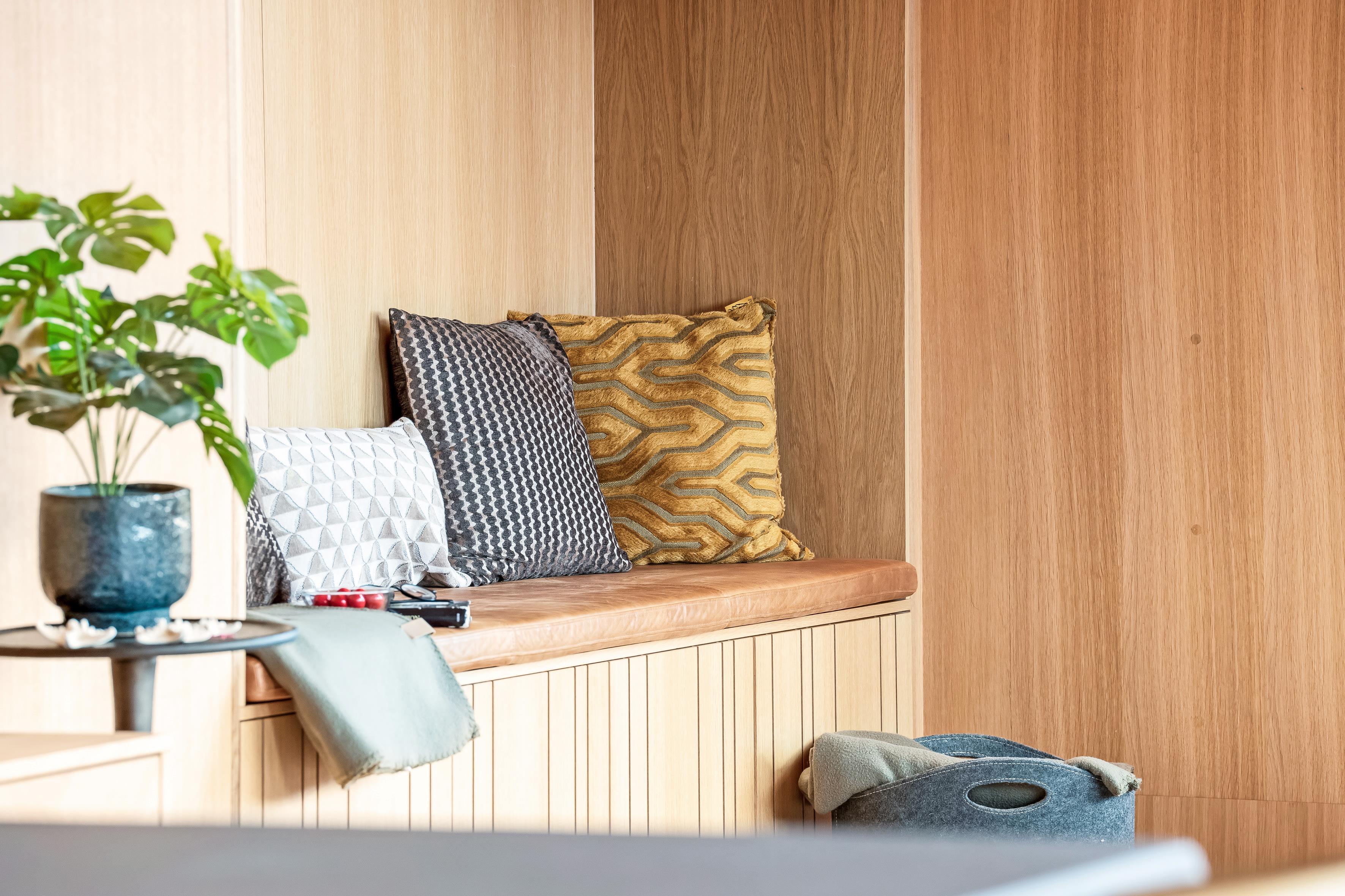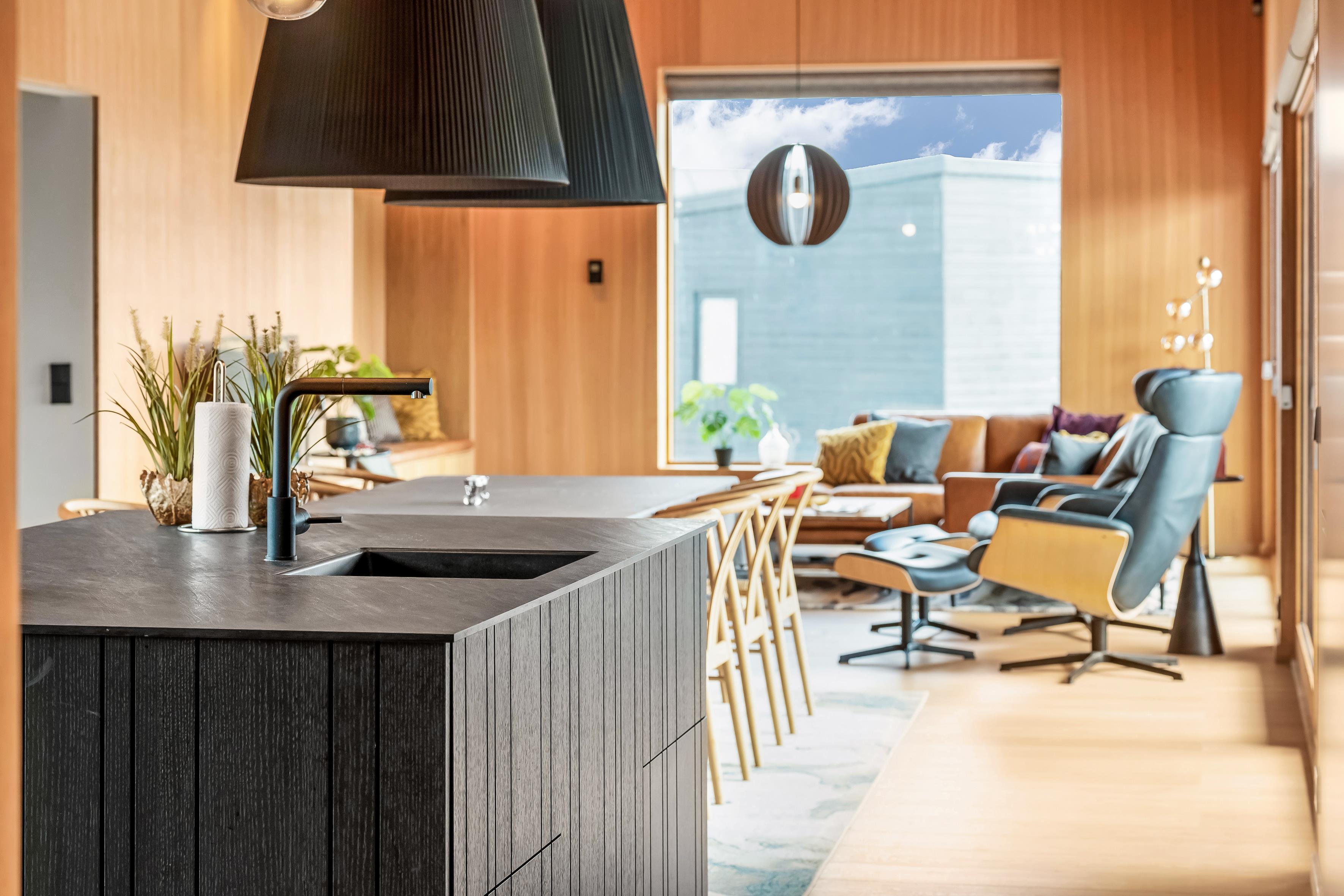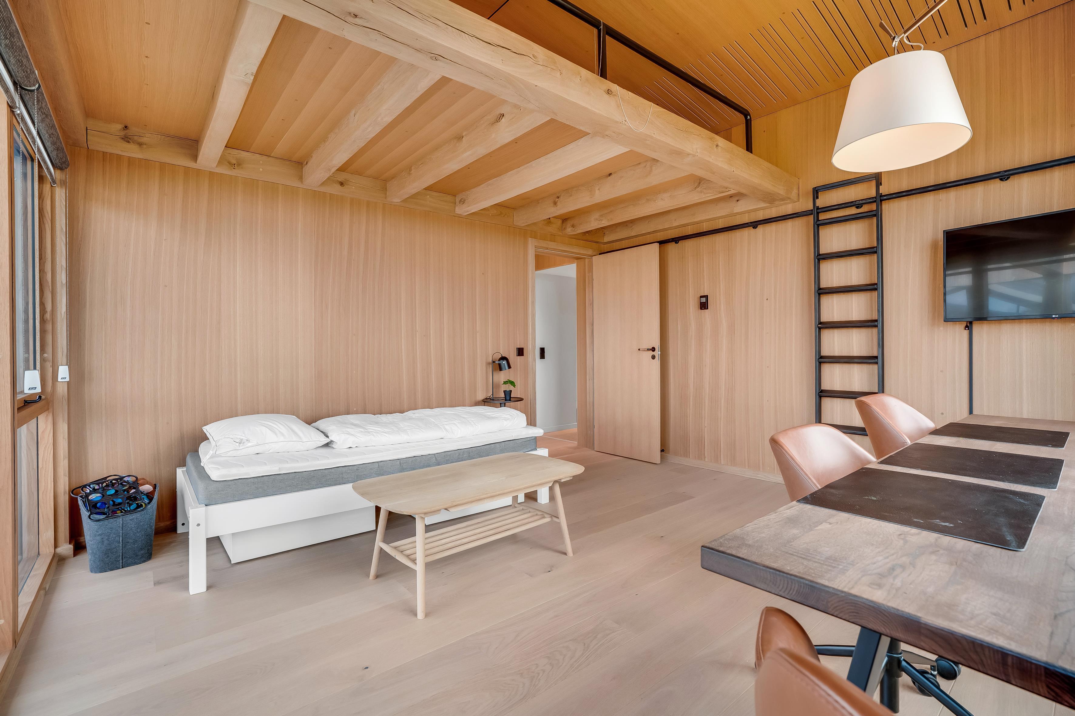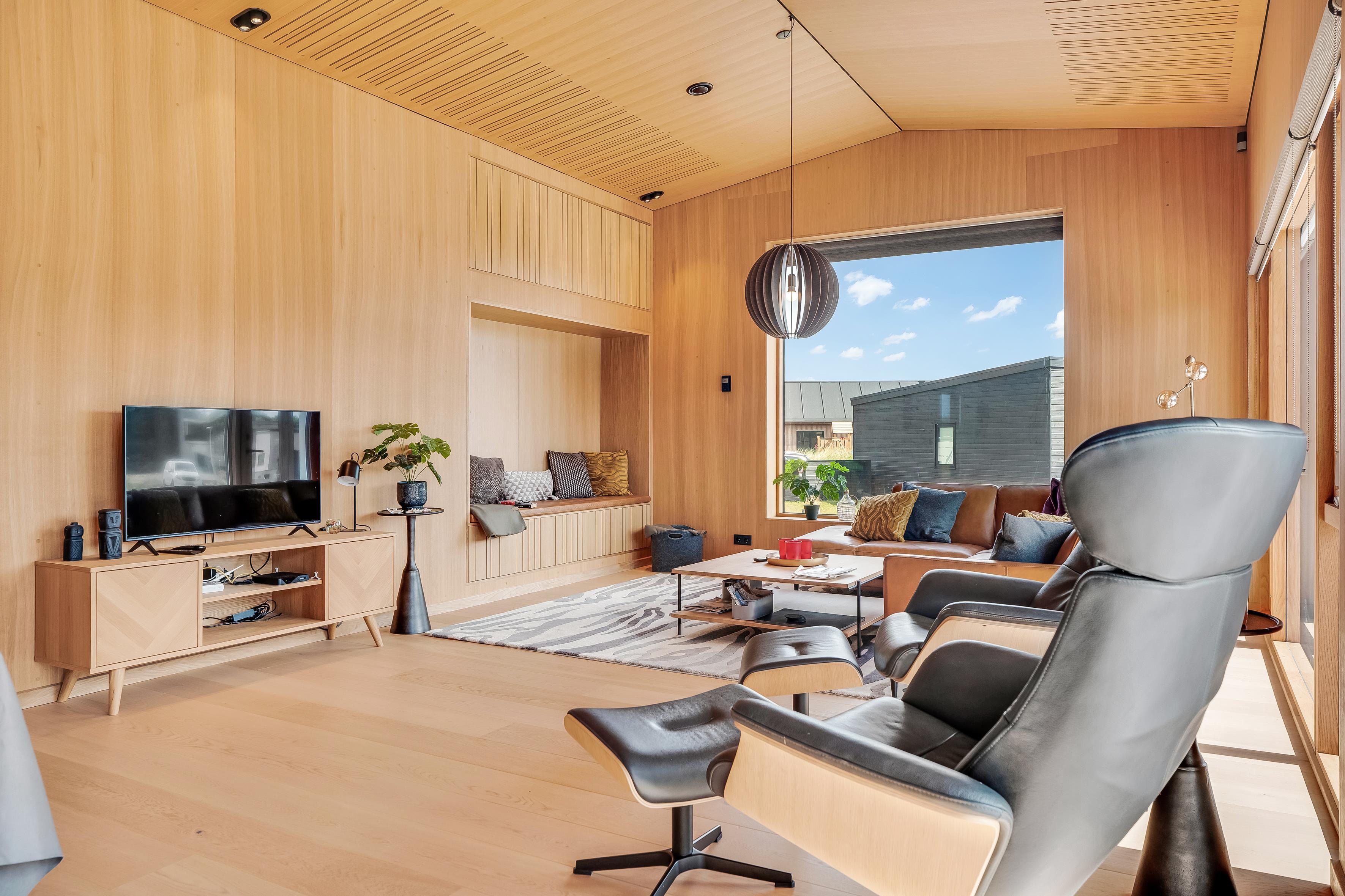 Sommerhuset rummer op til 7 gæster fordelt på 5 soveværelser med tre dobbeltsenge og to enkeltsenge. Hjertet af huset er det åbne køkken-alrum, som ligger i direkte forbindelse med stuen og byder på en lys, funktionel og velovervejet indretning i klassisk dansk design. De to badeværelser er både rummelige og elegant udstyret, og huset er placeret i et moderne nybyggerkvarter med både helårsboliger og ferieboliger side om side.
