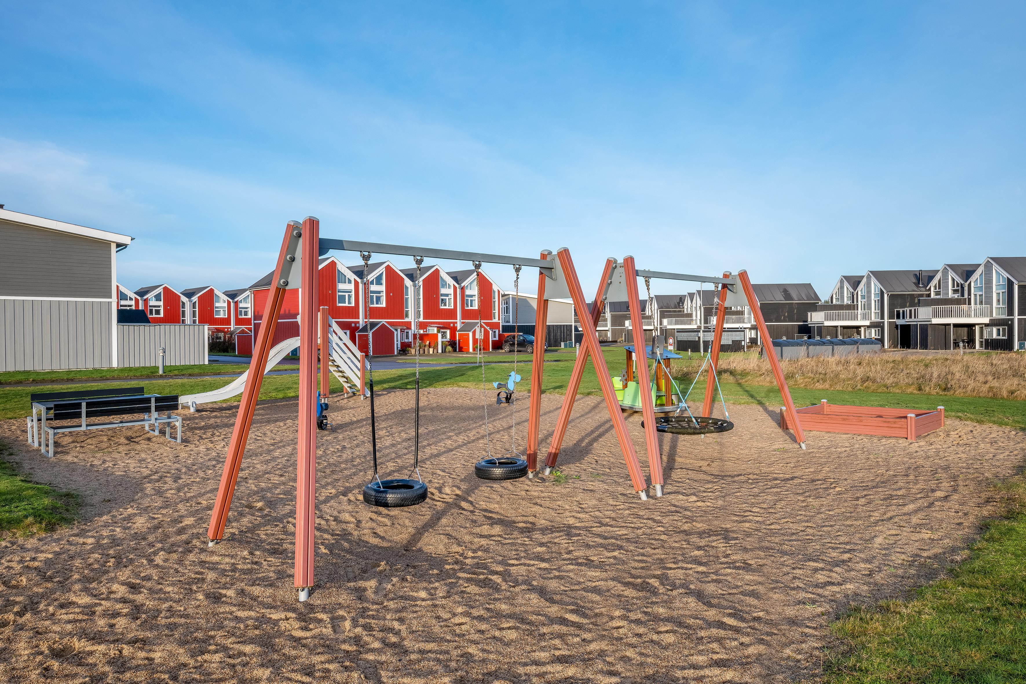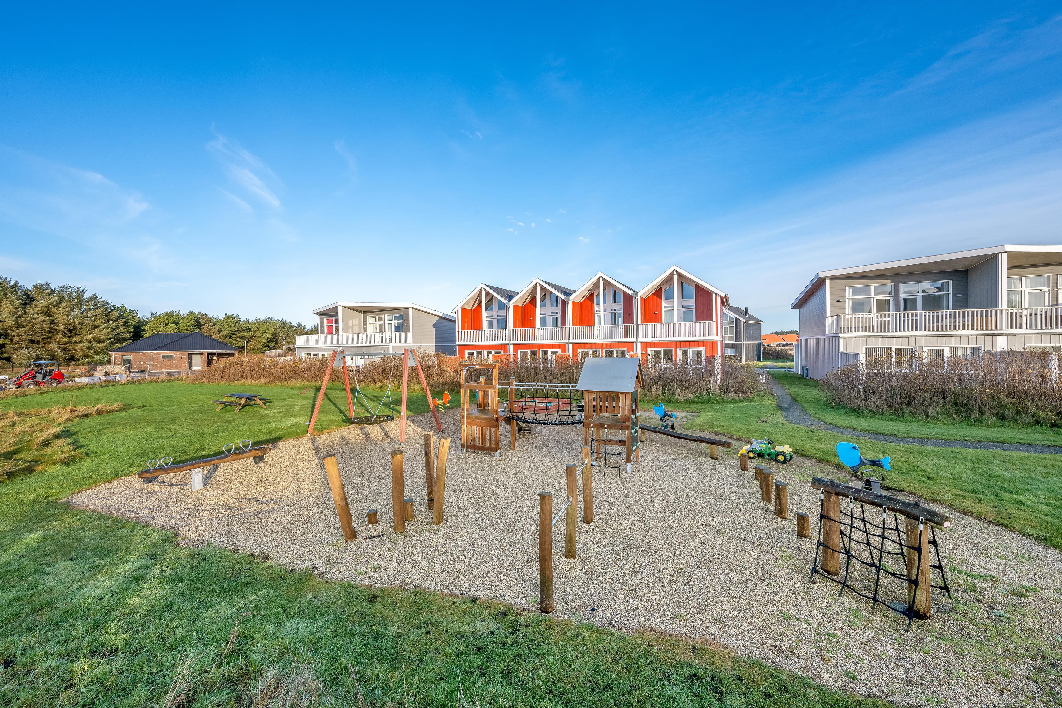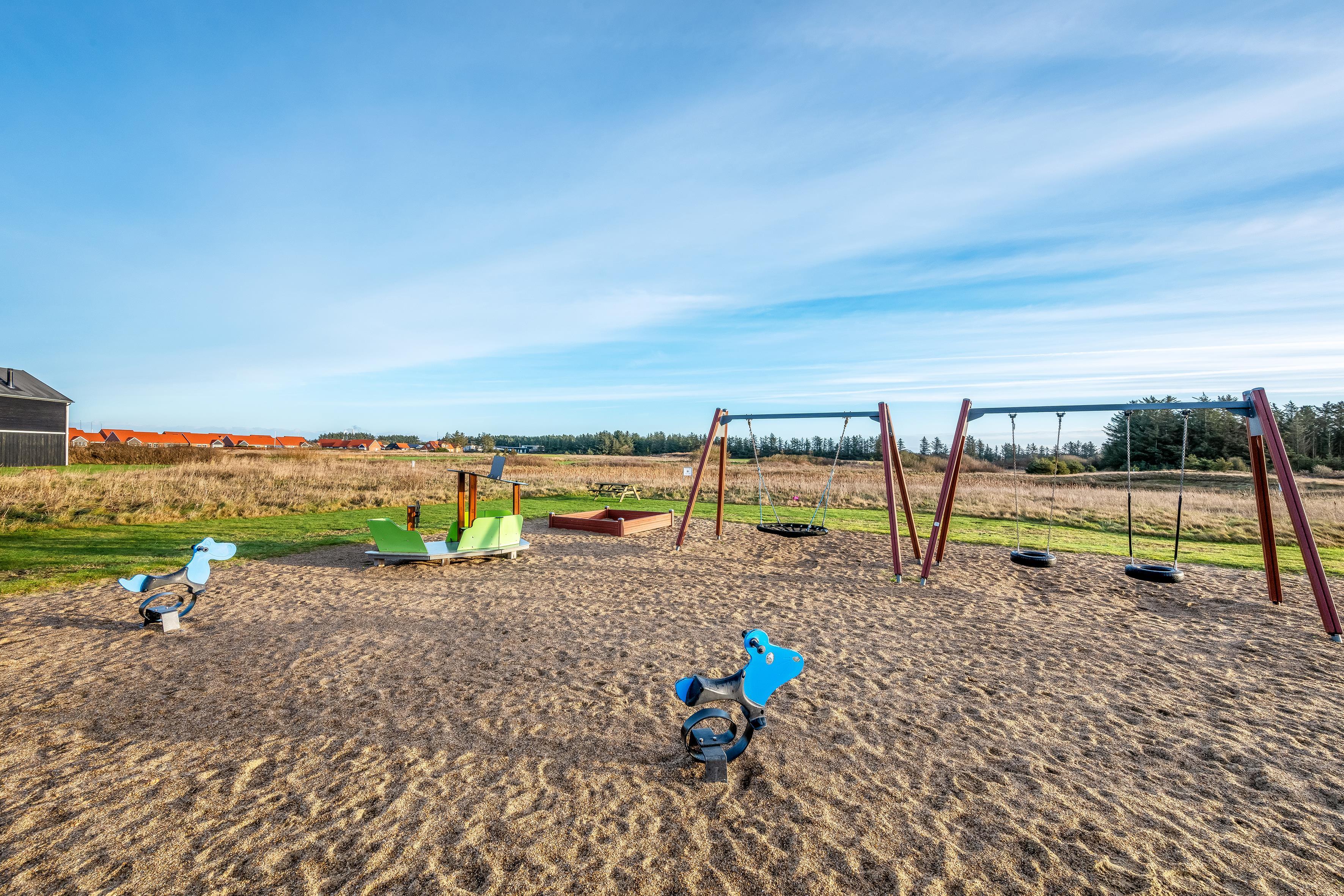 Med flere terrasser og masser af lækre udeområder er det let at finde læ og sol. Der er god plads til leg og hygge, og fra huset er der kort afstand til både strand, by og indkøb – alt ligger inden for cirka en kilometer. Ca. 500 meter væk er der legepladser og golfbane, og vejen er blind, så den er ikke særlig trafikeret. Det er muligt både køre i bil, på cykel eller at gå ned på stranden, der er en af Danmarks bedste badestrande.