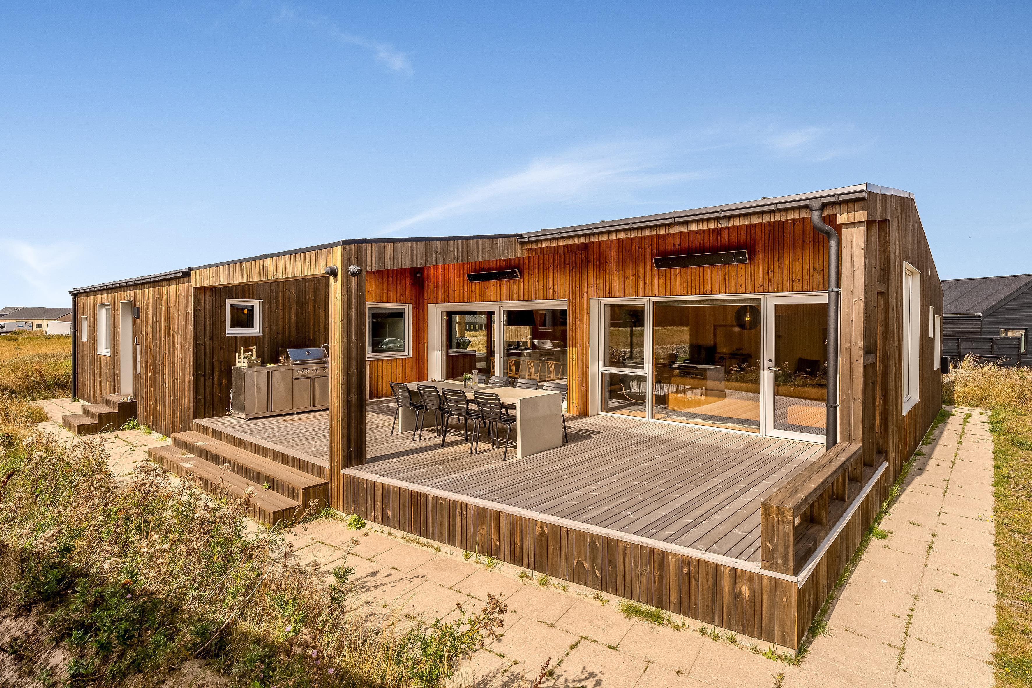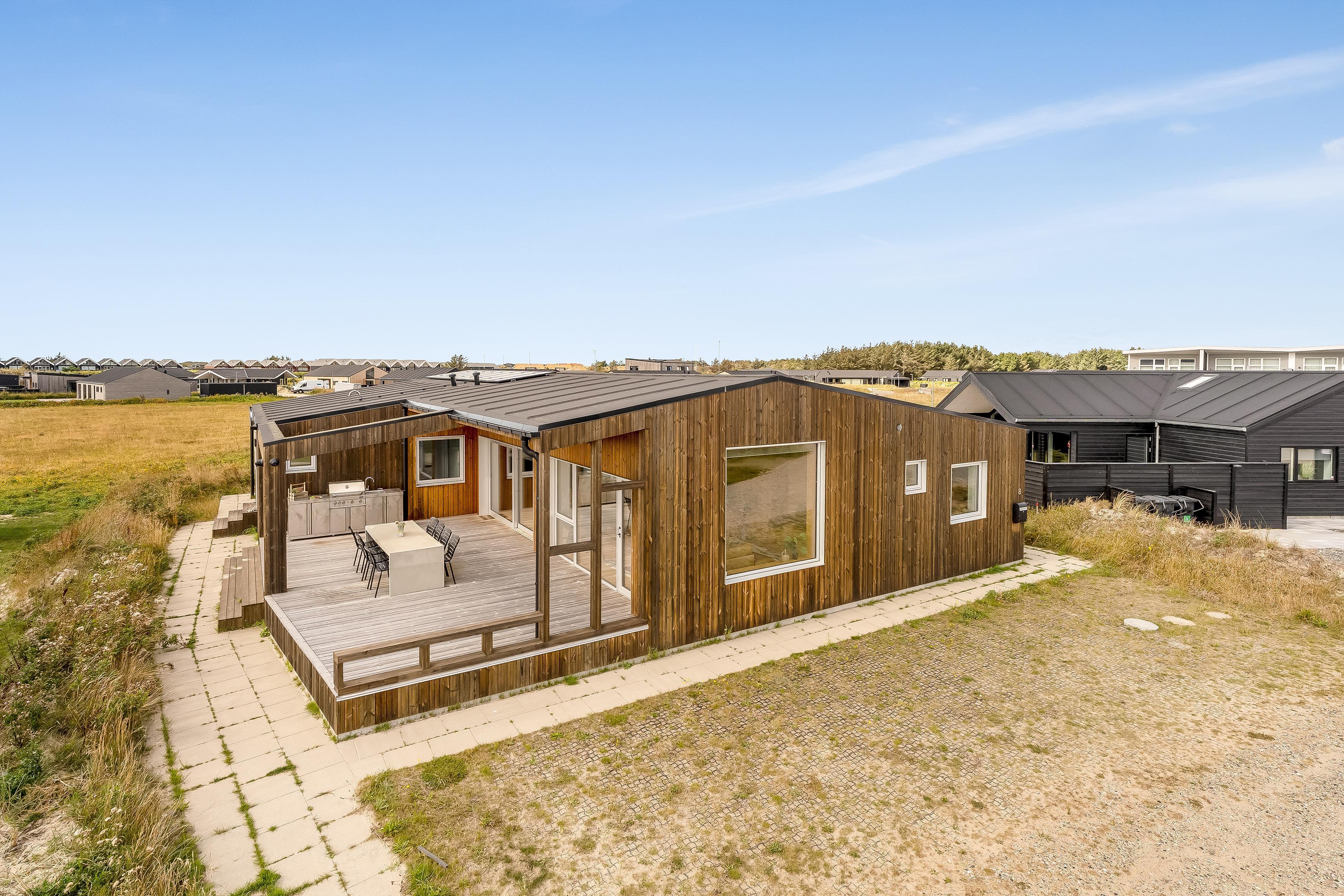 Moderne sommerhus i Løkken med stilfuldt dansk design og udespa, tæt på by og strand.