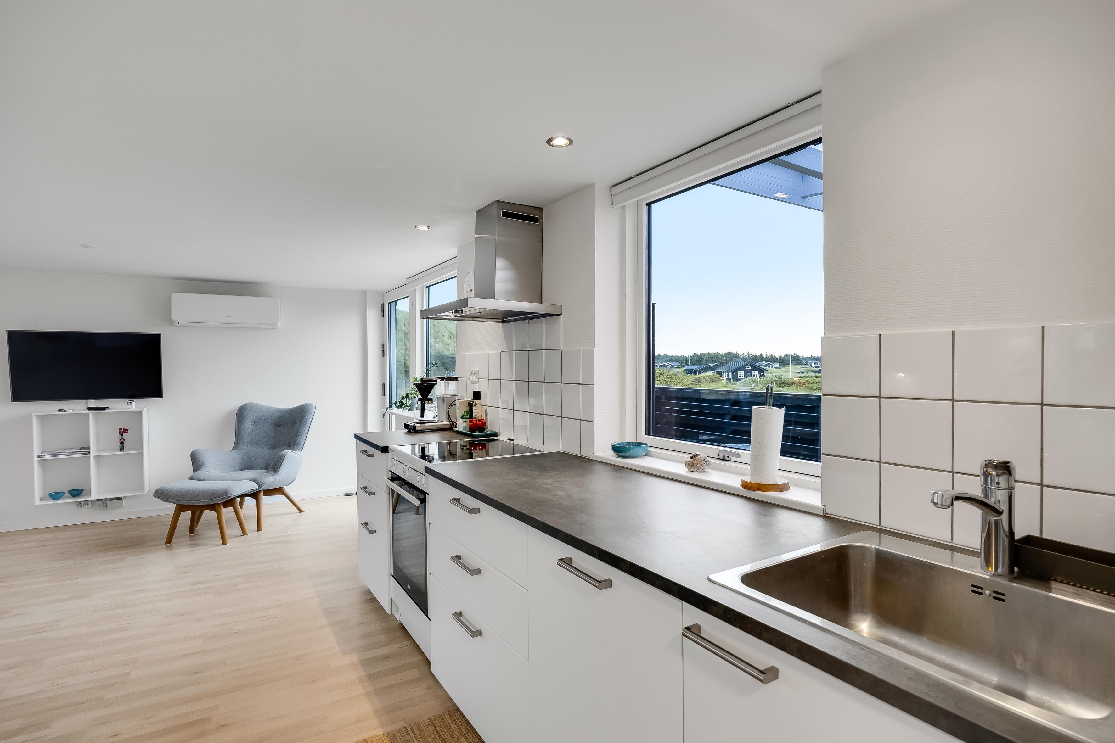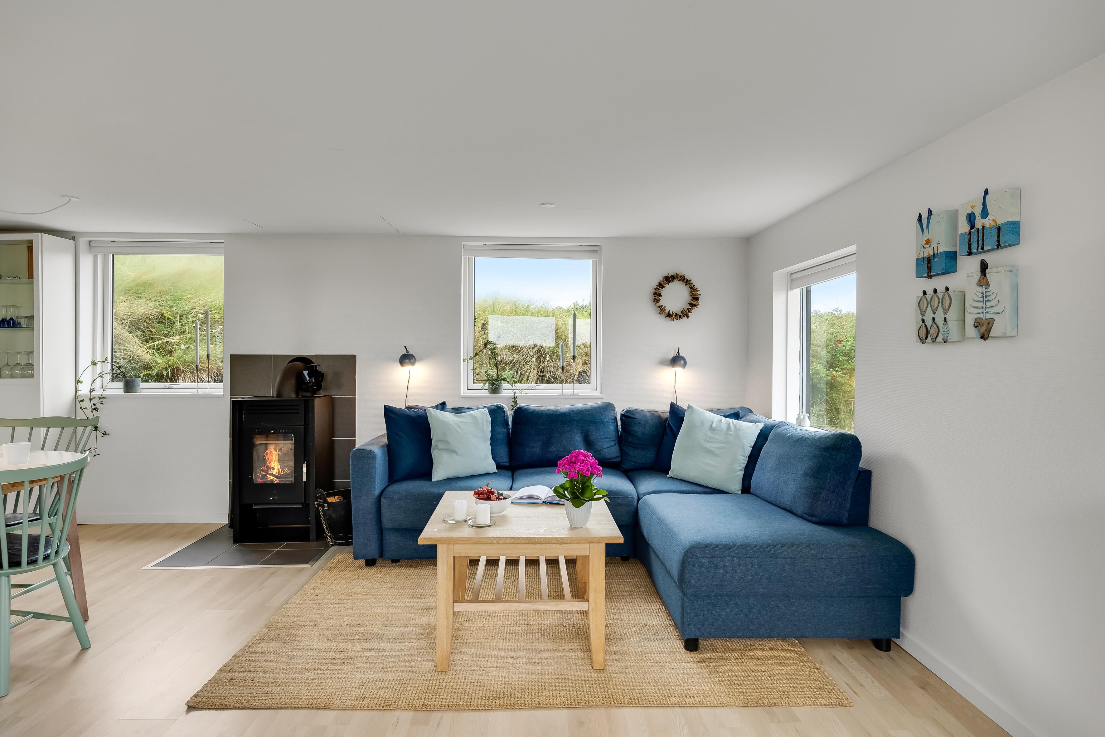 Fra stuen har du en skøn udsigt til områdets smukke natur og andre sommerhuse, og med den korte afstand til stranden og kun ca. 2 km til centrum af Løkken, får du både ro og liv lige i nærheden.