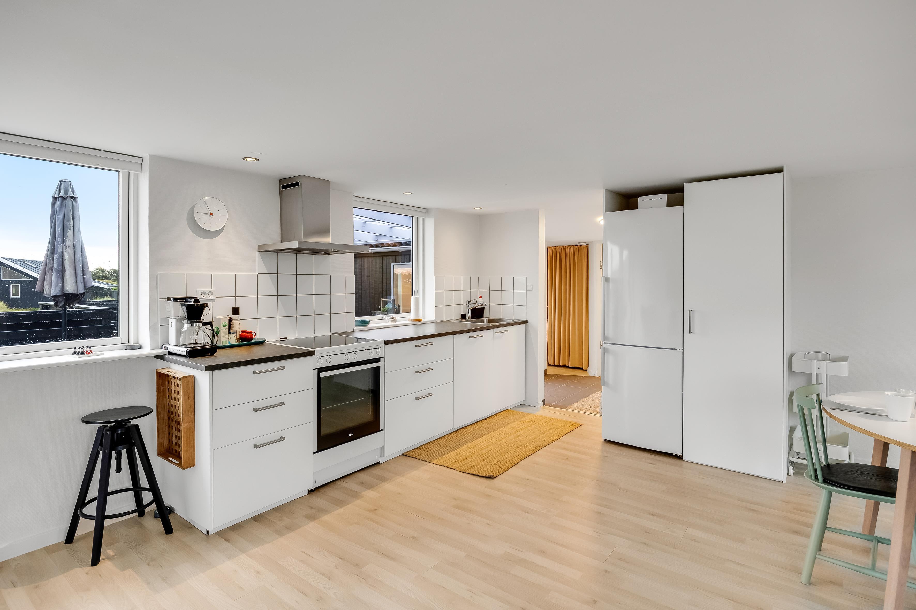 I sommerhuset finder du en rummelig stue med brændeovn og et lyst og dejligt køkken – ideelt til hyggelige aftener og gode måltider med vennerne eller familien. Sommerhuset rummer to soveværelser, begge med dobbeltsenge og en lys og rolig indretning, som giver de bedste rammer at hvile sig efter en lang dag på stranden eller andre af de uendelige muligheder, der er for oplevelser i Løkken og omegn.