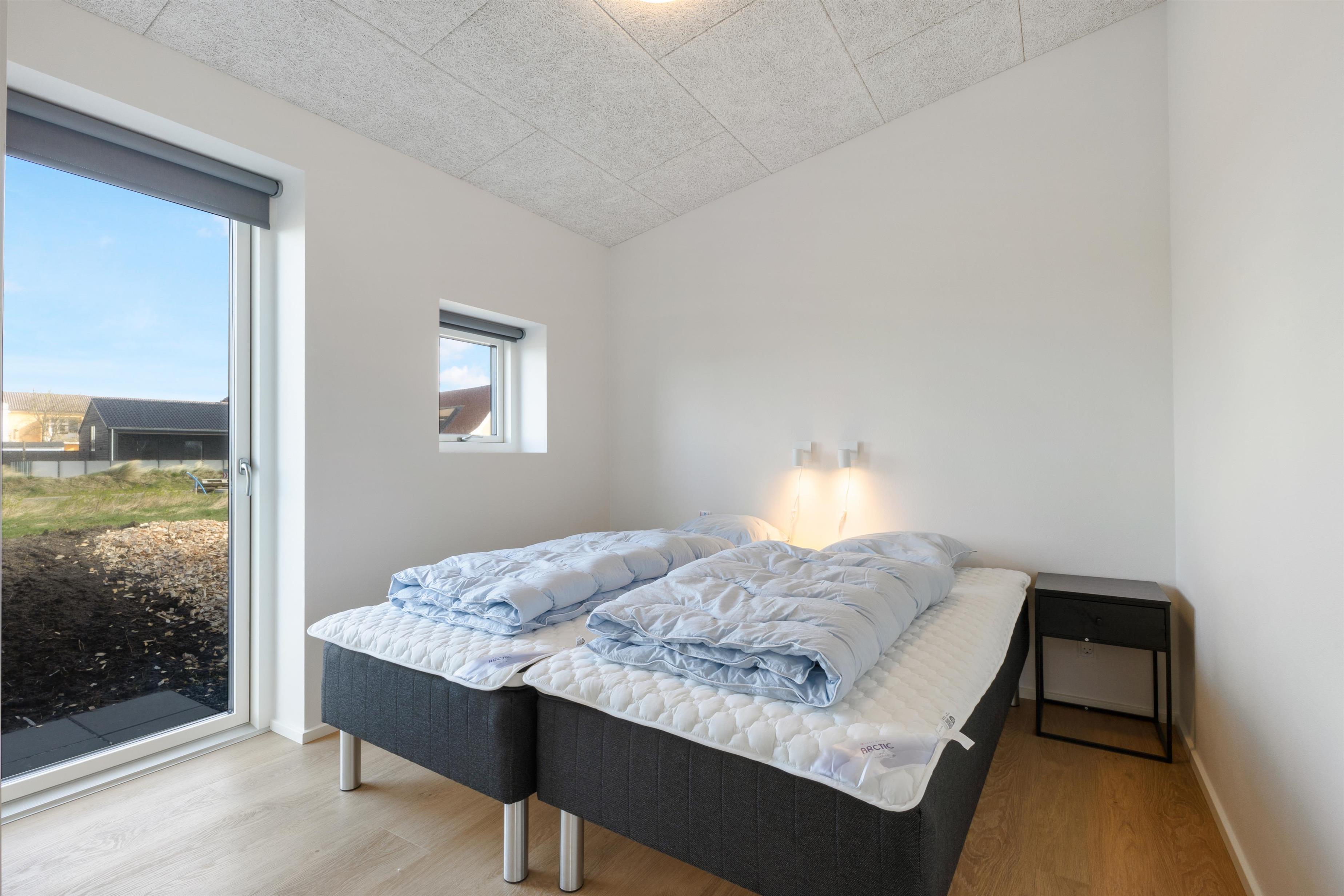 Dette sommerhus er helt nyopført i 2023. Fordelt på de ca 133 kvadratmeter er der plads til 8 personer. Huset er lyst og lækkert og moderne faciliteter er til rådighed. Selve grunden er omk. 636 kvadratmeter og det nybyggede kvarter emmer af feriestemning og flotte sommerhuse. Der er ca. 500 meter til stranden, og her kan man både køre-, cykle- eller gå til. Enten via de smukke stisystemer i klitterne, eller via alm. asfaltvej. Til centrum og indkøb er der ca. en lille kilometer.
