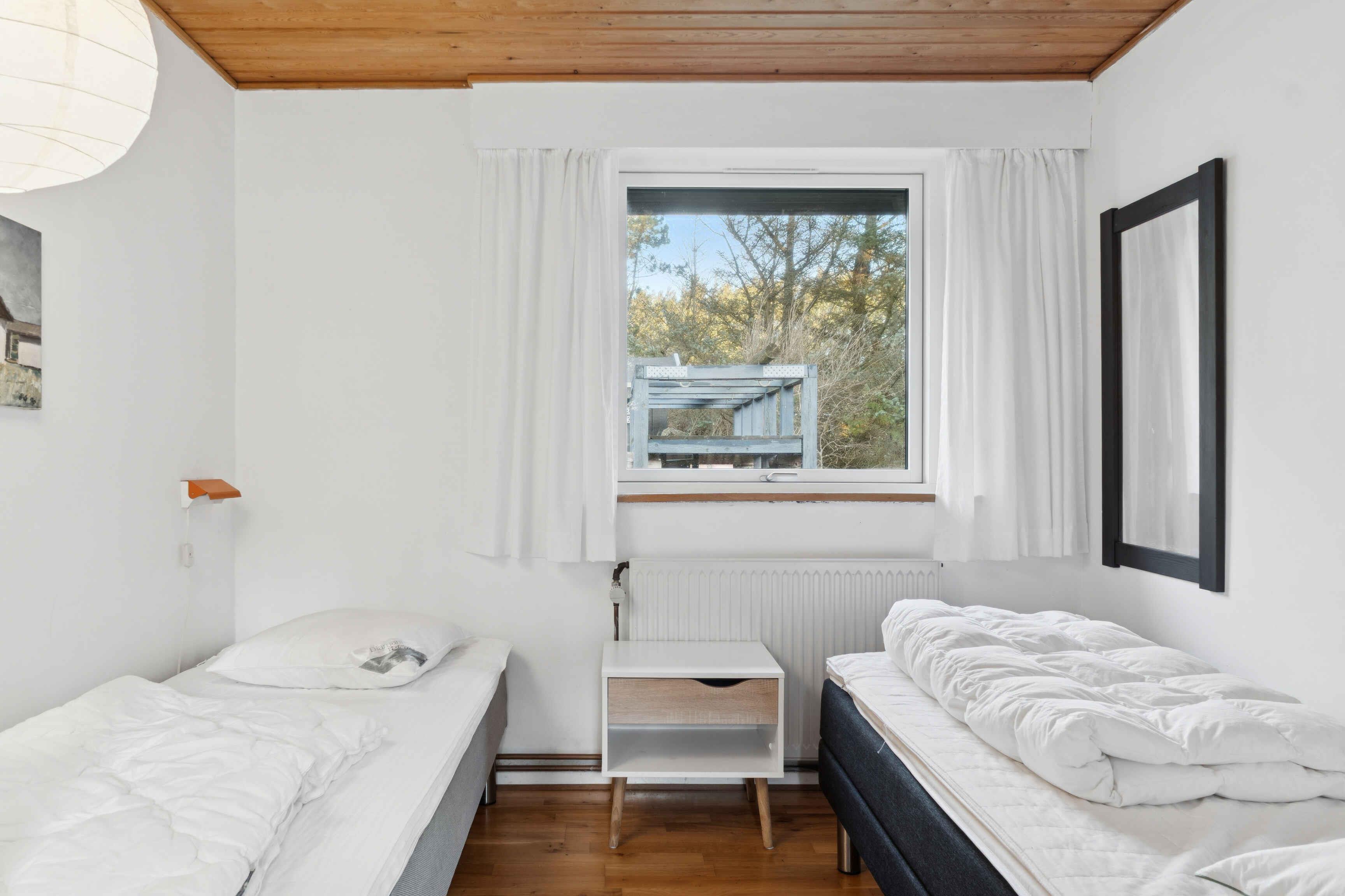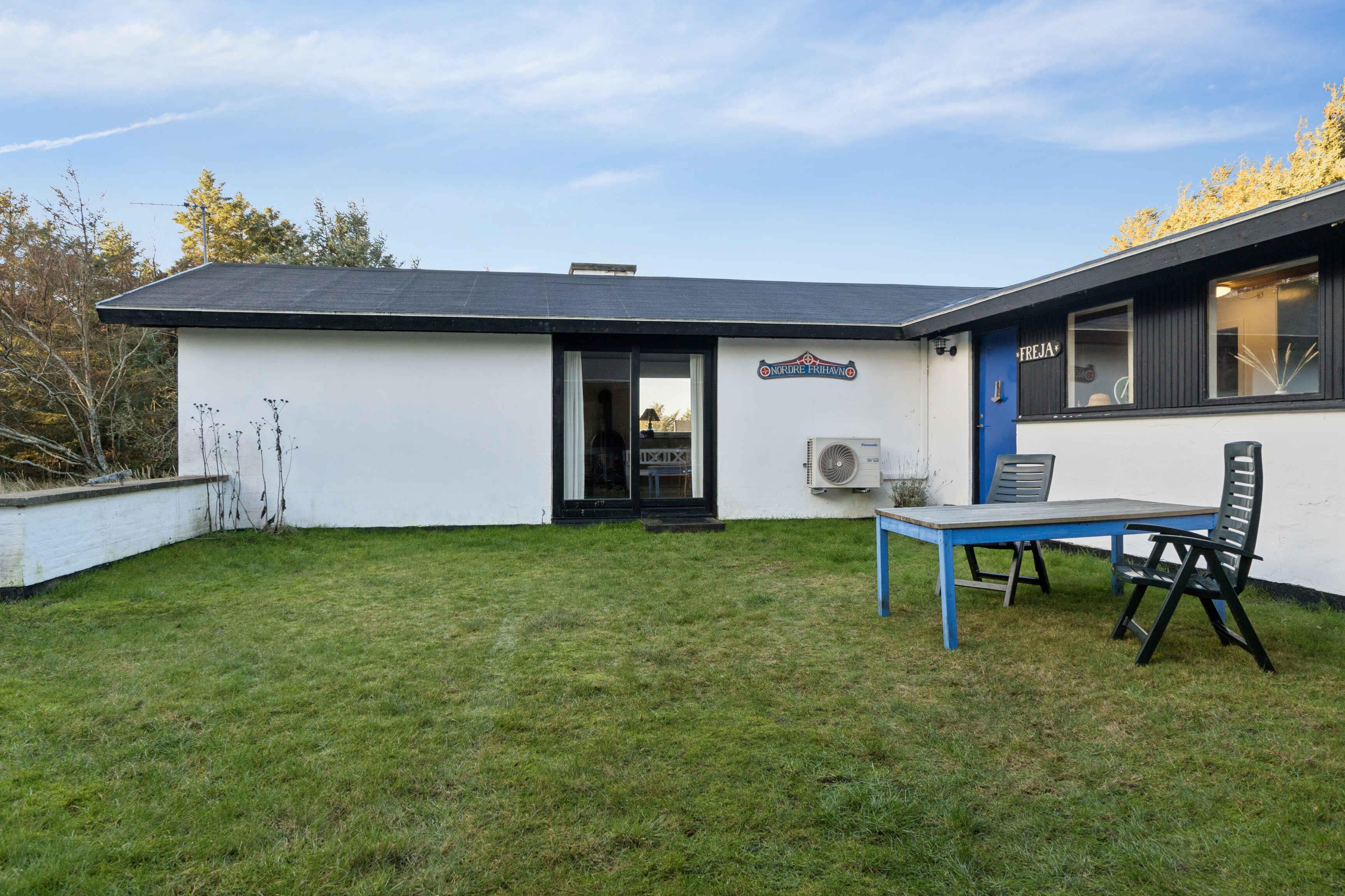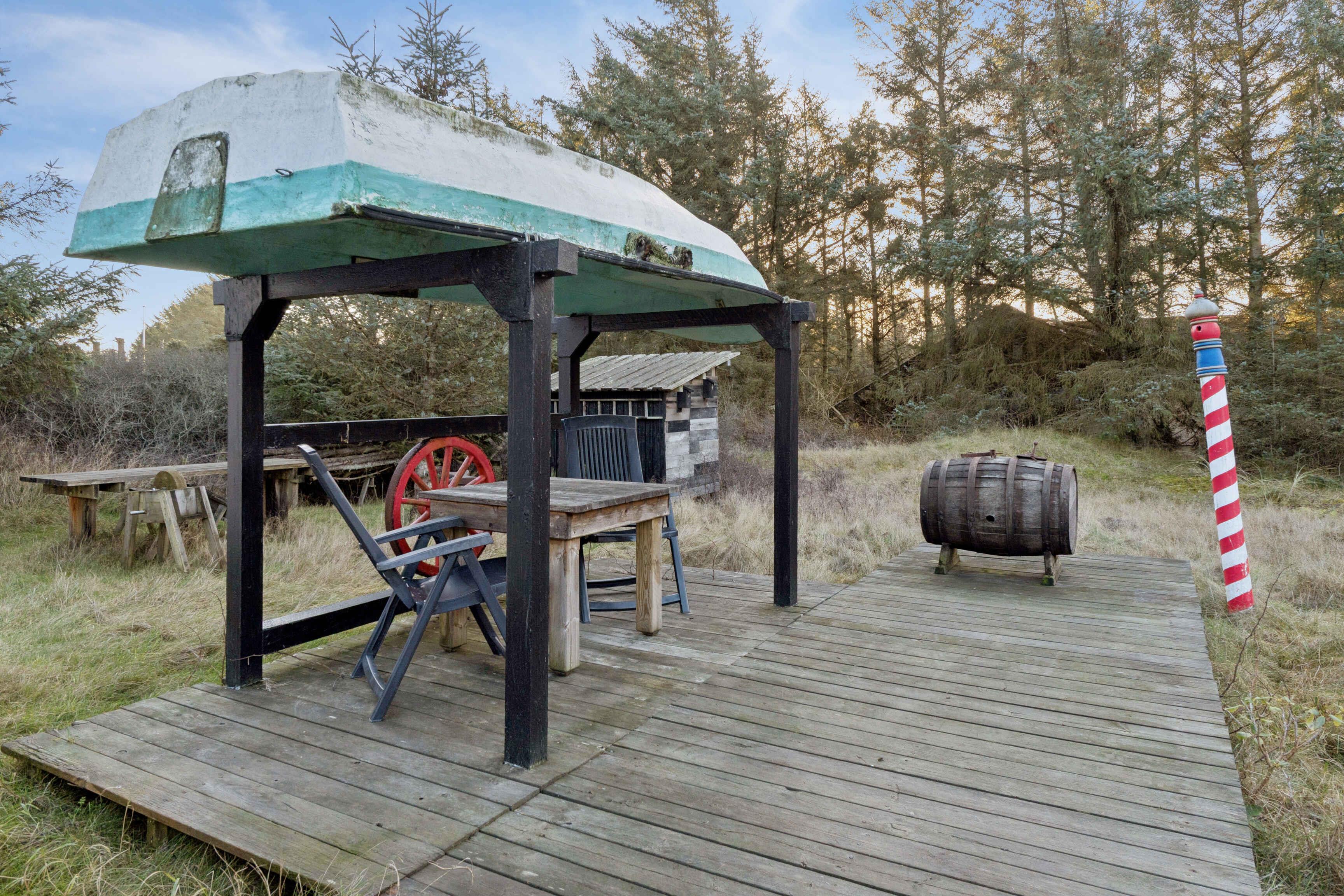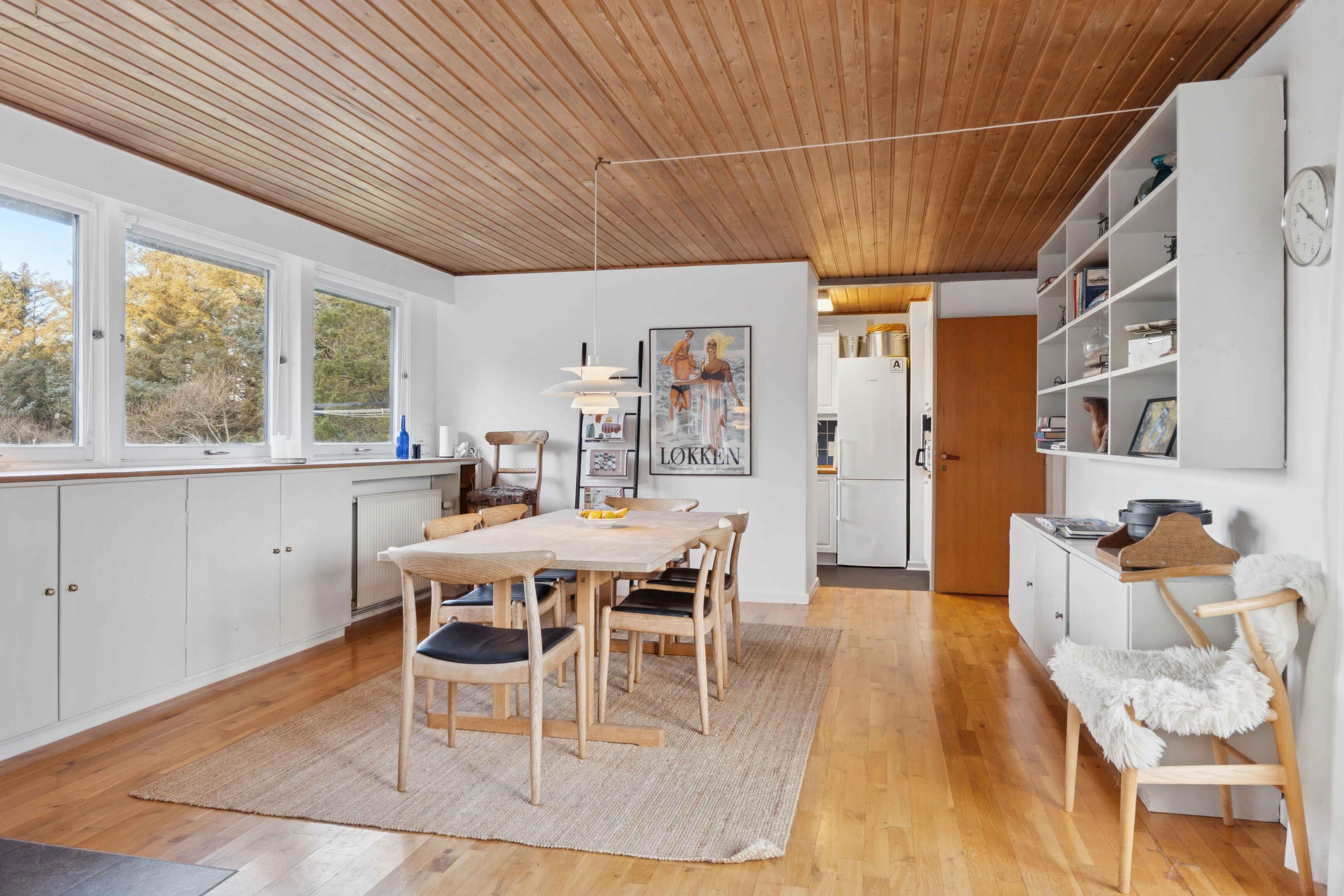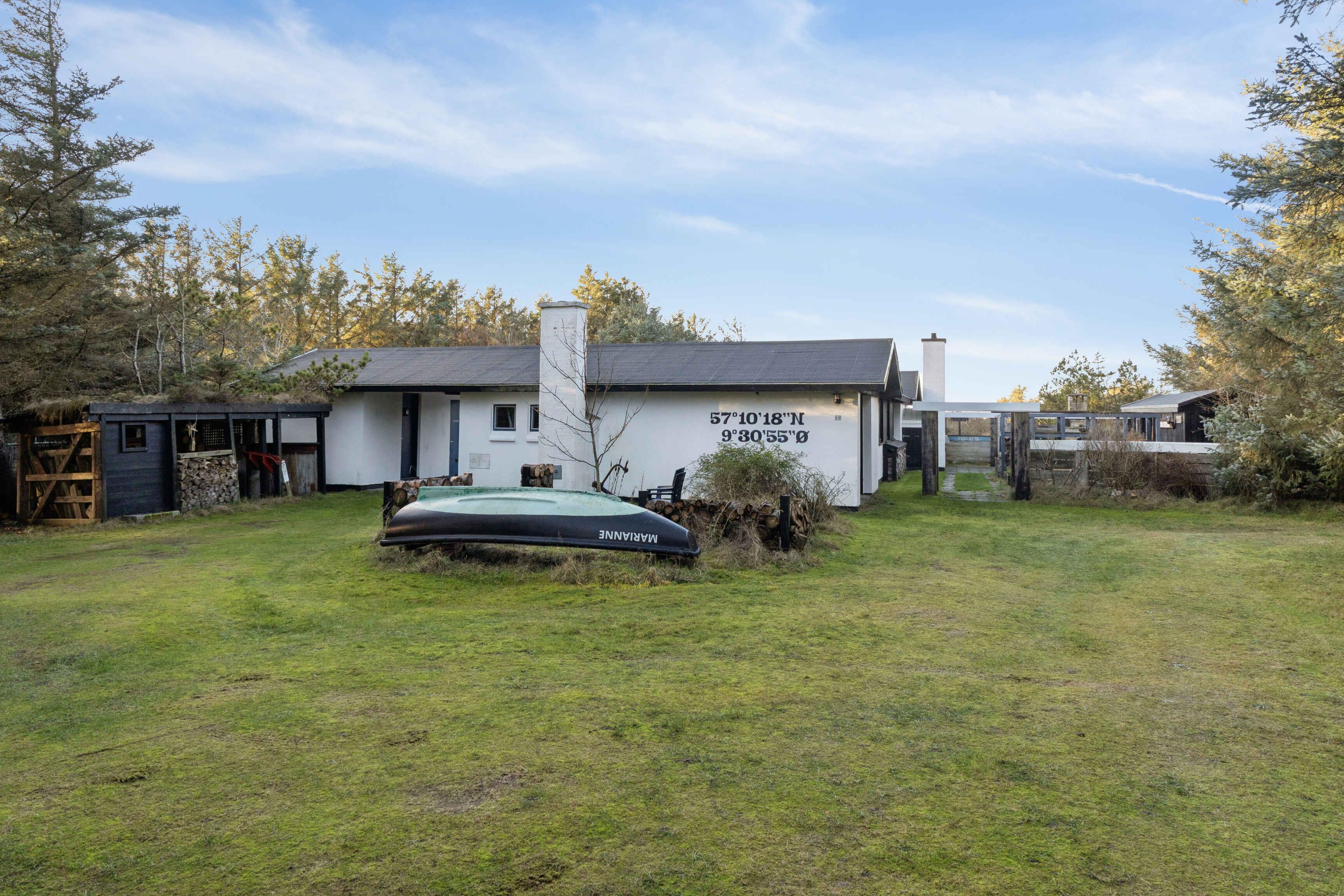 Hyggeligt familie sommerhus med personlig charme beliggende på stor ugeneret naturgrund i et skønt område tæt på vesterhavet og dejlig badestrand. Her kan I høre suset fra vesterhavet, vinden i toppen af granerne og kan ikke undgå at slappe af. Huset har en åben planløsning med tæt adgang til køkkenet og nem adgang til udearealerne. Her får den store familie, eller to familier sammen, en dejlig ferie med ro og hygge. Køkkenet er udstyret med 1 køleskab med 50l fryser, der er 4 keramiske kogeplader, varmluftovn, mikrobølgeovn, airfryer, samt opvaskemaskine. Sommerhuset har 4 soveværelser med sengepladser til 8 personer og en babyseng til 1 barn. Sovepladserne fordeler sig på: 2 sovepladser i dobbeltseng. 6 sovepladser i enkeltsenge. 2 af disse sovepladser befinder sig i et anneks. Der er 1 badeværelse med bruseniche, toilet samt siddebadskar. Sommerhuset er på 121 m² og er bygget i 1969, samt renoveret i 1995 Ferieboligen er udstyret med energibesparende varmepumpe. Der findes vaskemaskine og mulighed for at tørre tøj ude og inde. Der er desuden en brændeovn. Til de små er der 1 stk. barnestol. Sommerhuset er beliggende på en 4422 m² stor naturgrund med 375 m til havet. Der er 27 m² terrasse med afskærmning mod vestenvinden og plads til at spise ude i sommerhalvåret. Grill til rådighed. Der er sandkasse nær terrassen og rig mulighed for at gå på opdagelse i naturen for både store og små. Der er installeret stik til opladning af elbil og der er god plads til parkering på grunden. Nærmeste forretning er beliggende i en afstand af 1200 m, ishuset ligger 400m væk, nærmeste byer er Løkken og Saltum og der er kun 40 km til Aalborg Det er tilladt at medbringe 1 husdyr.