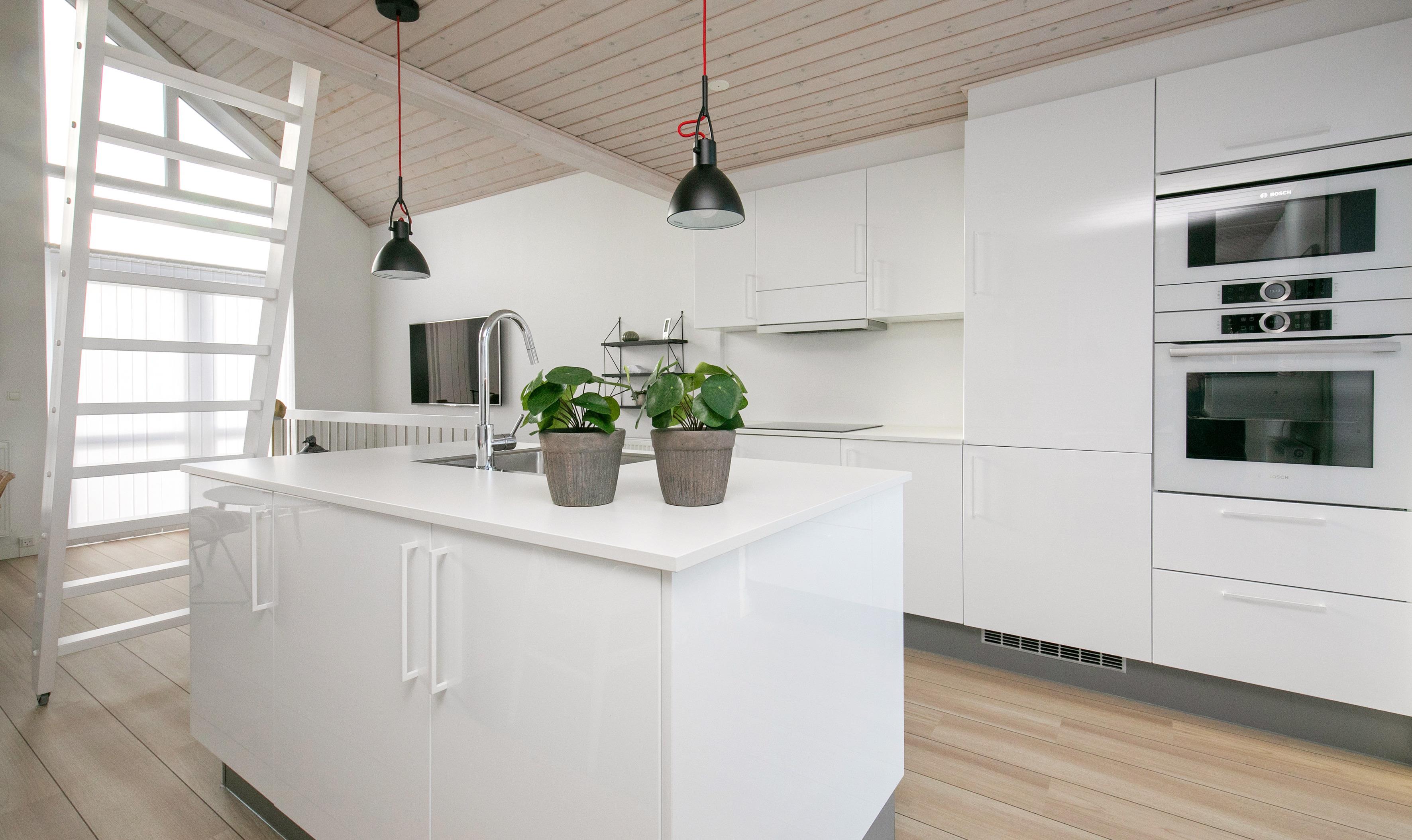 Køkkenafd.: El-komfur, køle-frys, mikroovn, emhætte, kaffemaskine, opvaskemask., vaskemask., tørretumbler