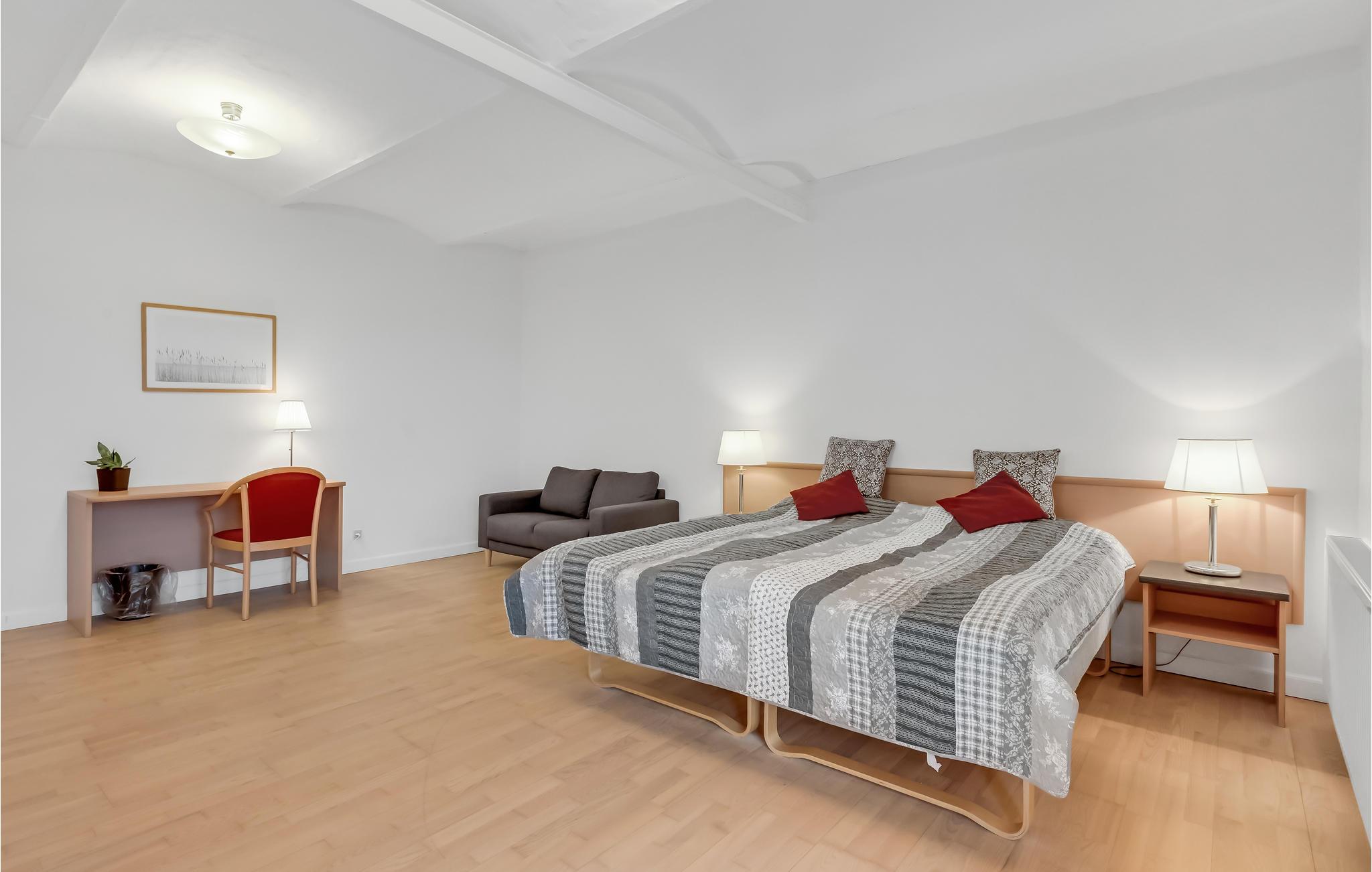 På stedet finder I diverse konferencefaciliteter - og der er eget bad og toilet på alle værelser. Den store bolig er med sine 15 moderne dobbeltværelser samt et soveværelse med 6 sengepladser ideel til 36 personer, men der er mulighed for at leje op til 46 sengepladser (heraf 3 børnepladser) med ekstra opredninger i de eksisterende. To af værelserne på stedet er store, har ekstra brede døre og store badeværelser med speciel indretning, hvilket giver god mulighed for familieværelser - forhør nærmere ved vores bookingafdeling.