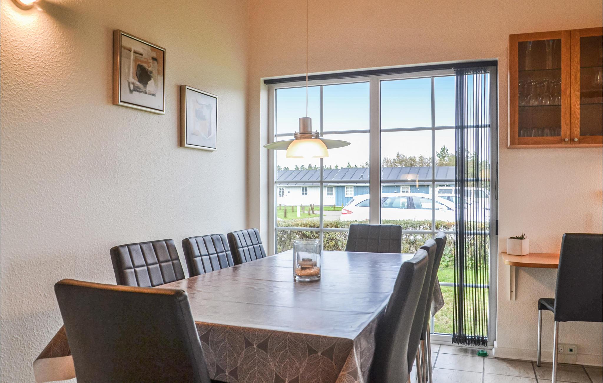Huset har et dejligt og rummeligt køkken/alrum med brændeovn og udgang til en delvis overdækket terrasse. I det flotte badeværelse er der spabad, hvor I kan slappe af efter en frisk gåtur langs havet. I området er der flere gode aktivitetsmuligheder, bl.a. mountainbikeruter, vandrestier og det fascinerende Vesterhav ligger under 15 minutters kørsel væk.