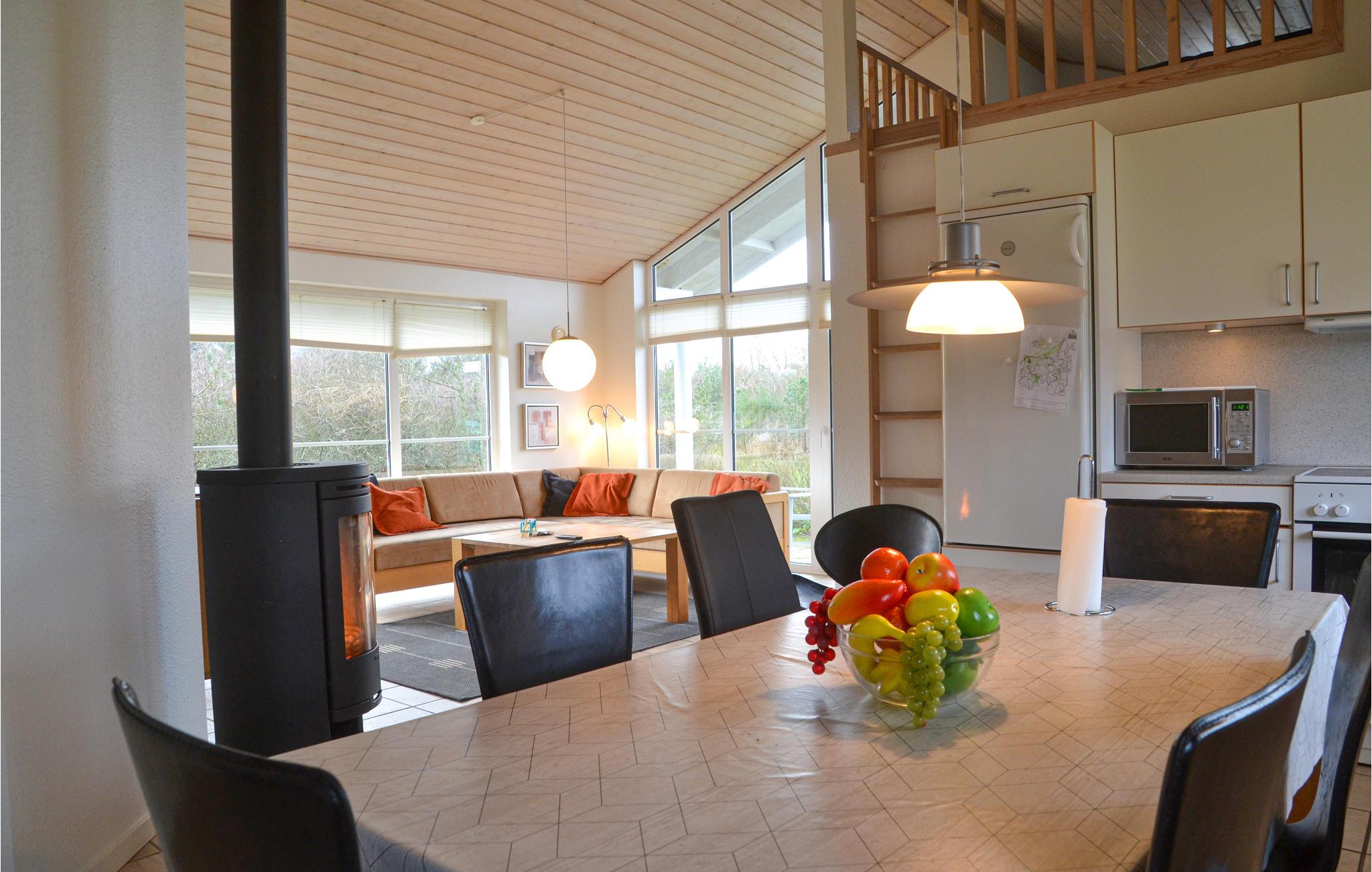 Huset har et dejligt og rummeligt køkken/alrum med brændeovn og udgang til en delvis overdækket terrasse. I det flotte badeværelse er der spabad, hvor I kan slappe af efter en frisk gåtur langs havet. I området er der flere gode aktivitetsmuligheder, bl.a. mountainbikeruter, vandrestier og det fascinerende Vesterhav ligger under 15 minutters kørsel væk.