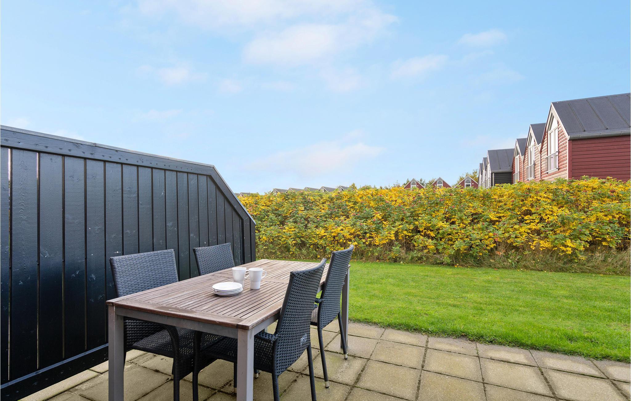 Lyst og moderne sommerhus i Lønne Feriepark med hyggelig opholdsstue og åben terrasse til afslapning.