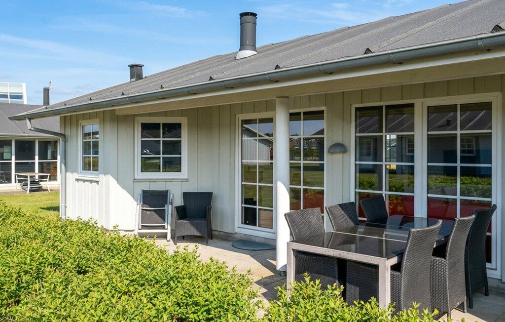 På den delvist overdækkede terrasse kan I nyde ferien sammen, spise delikatesser fra grillen og tale om dagens oplevelser på de milde sommeraftener.