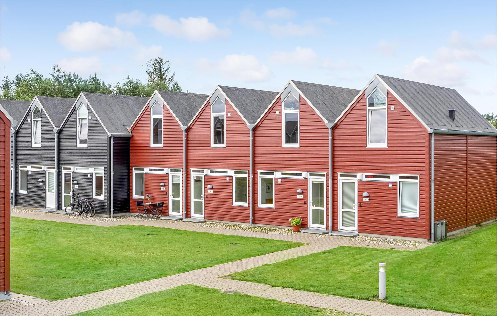 Charmerende rækkehus i Lønne Feriepark med åben terrasse og nærhed til strand, butikker og aktiviteter.