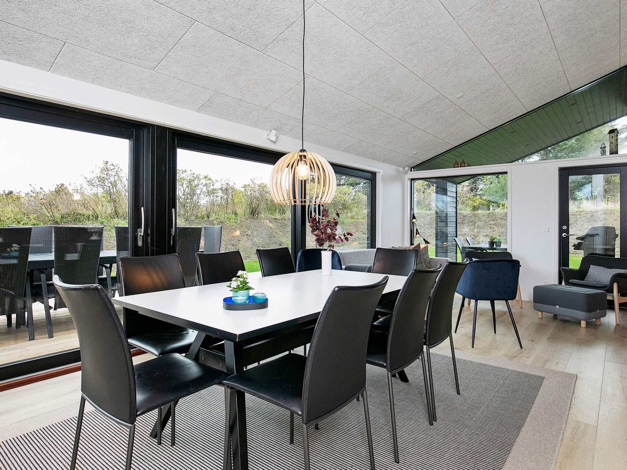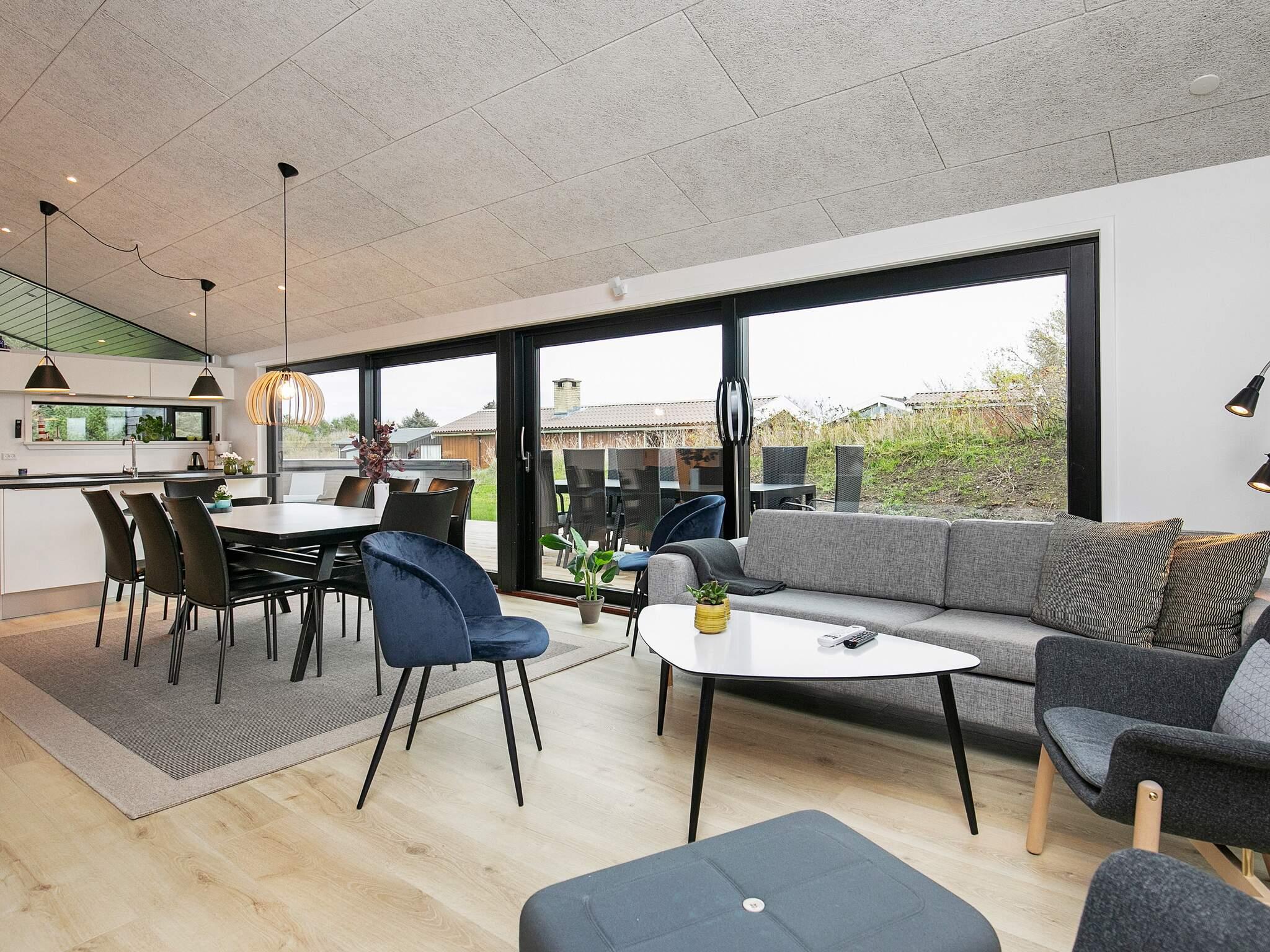 Sommerhuset er velindrettet i moderne stil med stue i åben forbindelse med køkkenet, fire soveværelser samt hems. Stuen indeholder både sofagruppe med smarttv, med den store tv pakke inkl. flere internationale kanaler og Chormecast samt spisestue. Køkkenet er vel udstyret bl.a. med moderne induktionskomfur.
