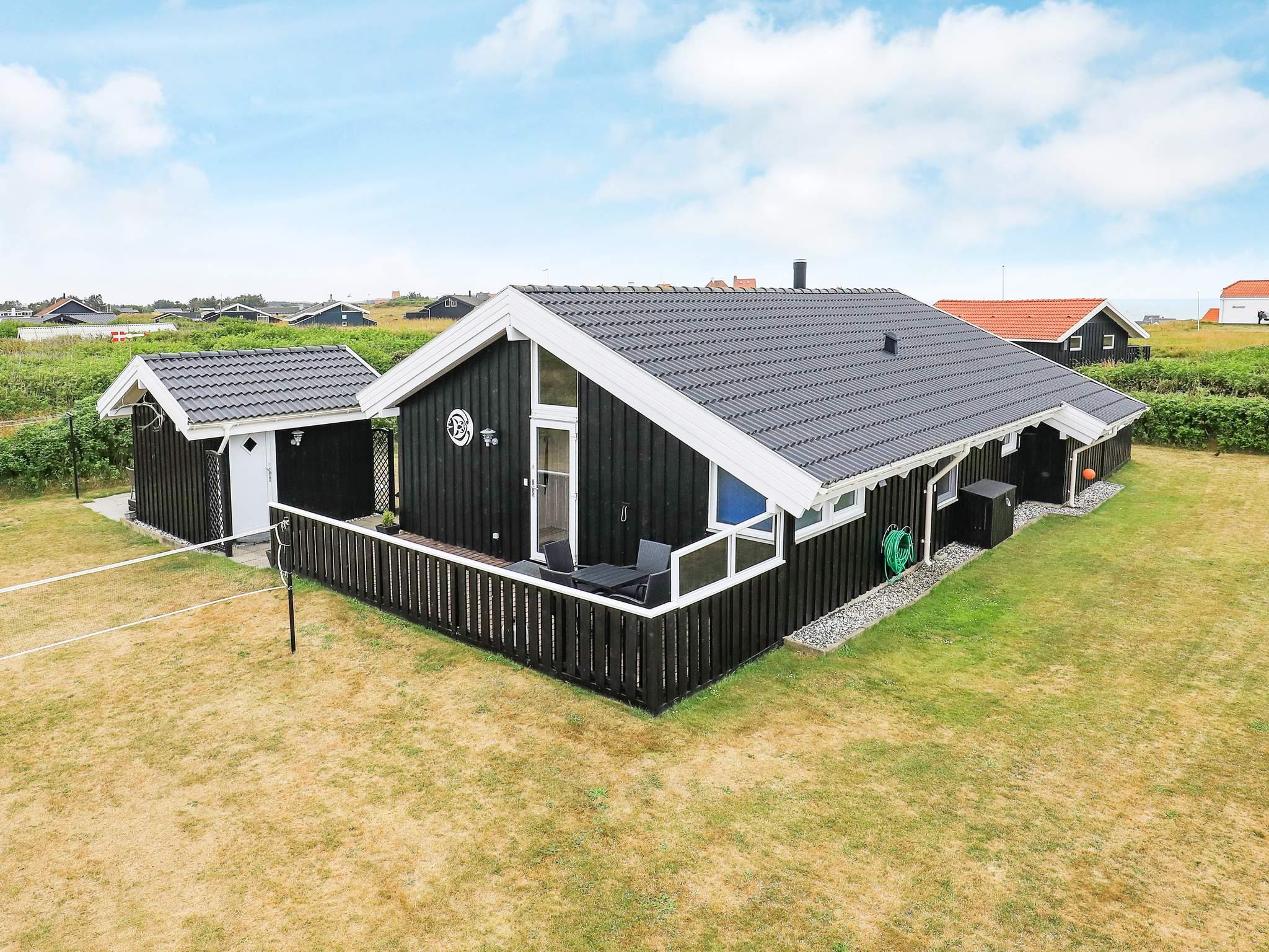 Rummeligt sommerhus med spabad til den store familie. Huset er beliggende på naturgrund ca. 300 meter fra Vesterhavet og med udsigt fra den 15 m² østvendte terrasse samt fra køkken og stuen. 2-personers spabad og rummeligt køkken. Tv i soveværelse. Der er rig mulighed for underholdning i huset med kabel-tv. Også udenfor er der rig mulighed for aktiviteter. Her er nemlig badmintonbane med ketsjere, som kan benyttes, mens resten af familien nyder solen på den syd-/vestvendte terrasse eller den vestvendte overdækkede terrasse. Derudover kan morgensolen nydes på den 15 m² store østvendte terrasse. Der er også sydvendt, ugenert terrasse bag annekset. Udlejes ikke til ungdoms- og håndværkergrupper.