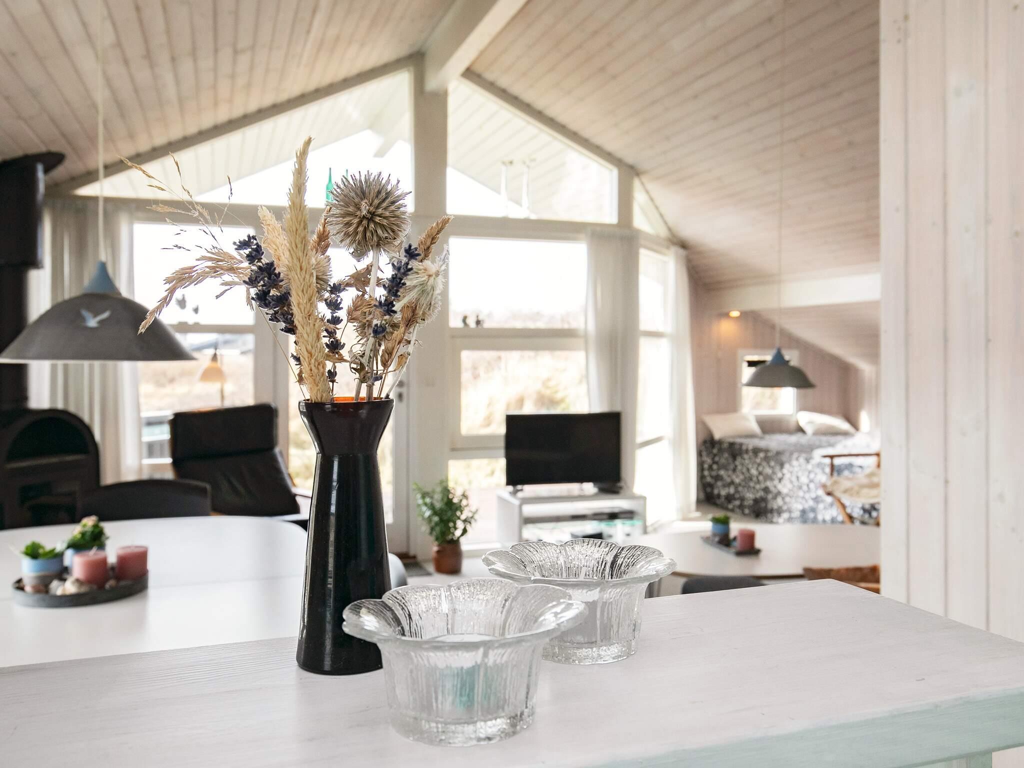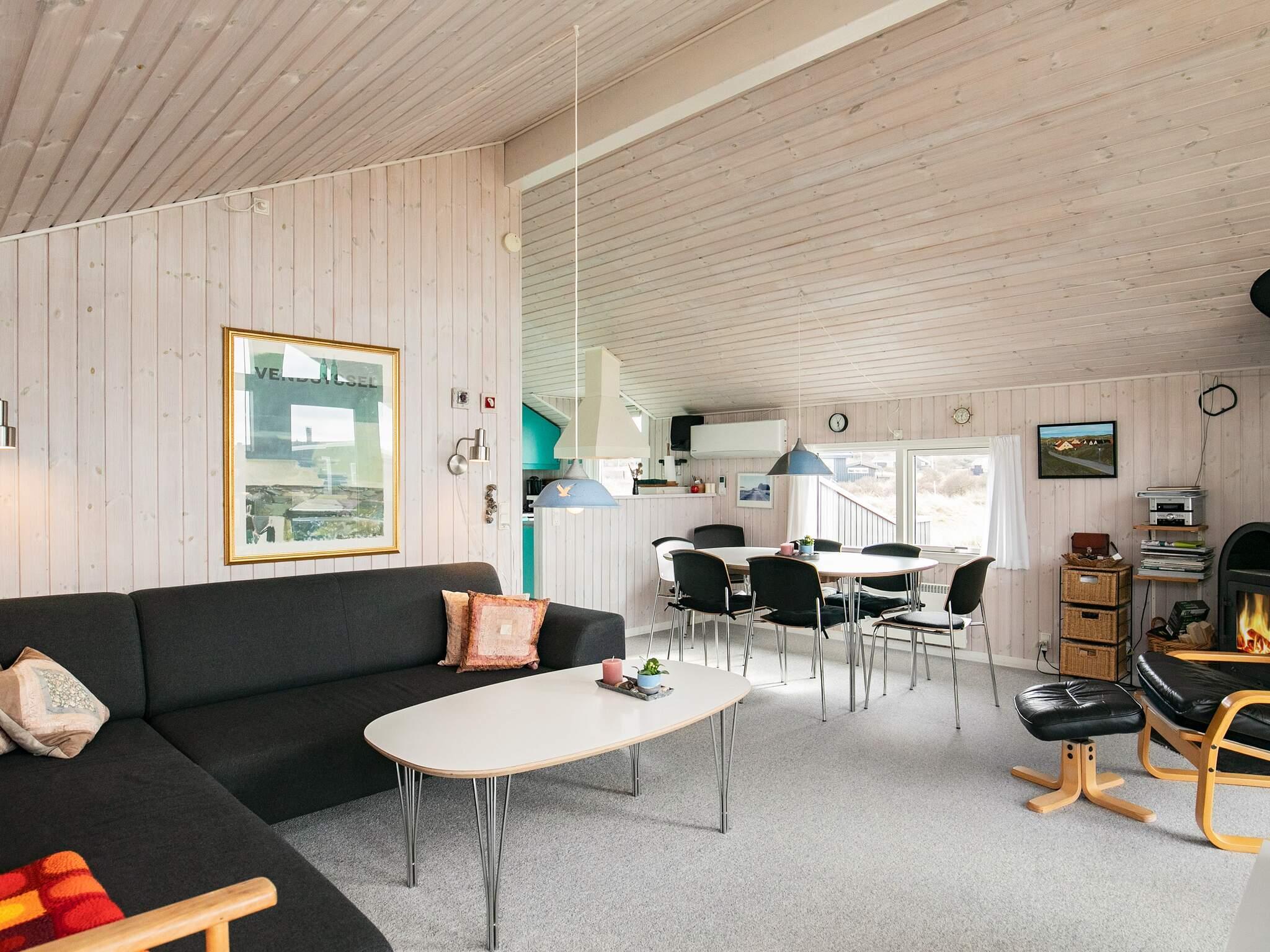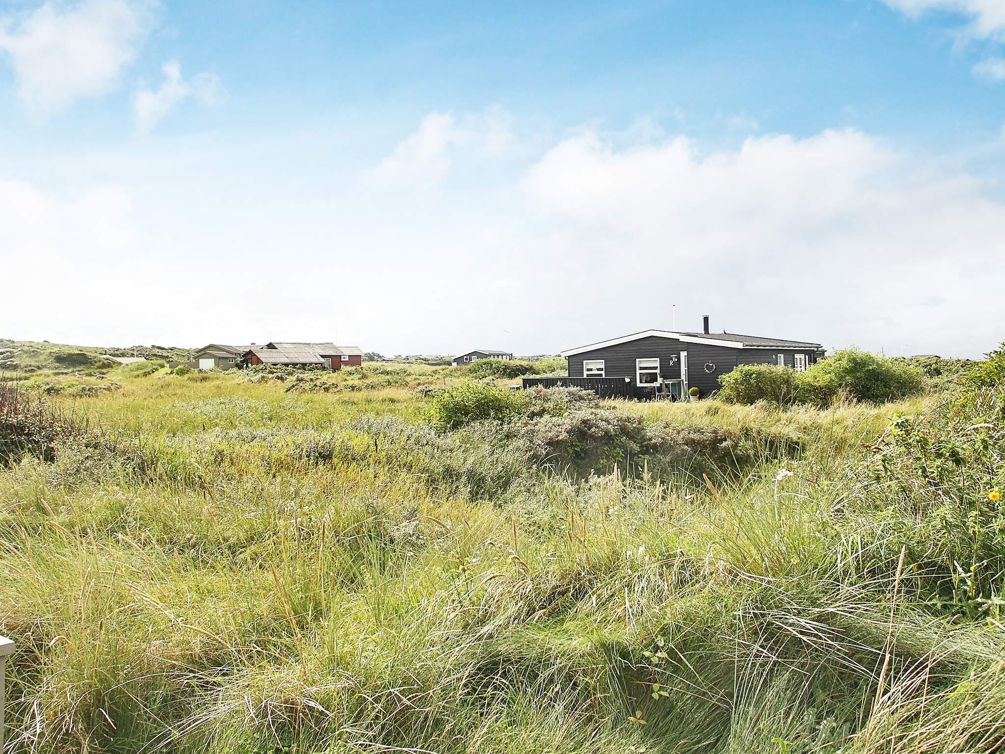 Ca. 100 m fra havet på en stor, let kuperet klitgrund ligger dette velholdte sommerhus. Fra et par af vinduerne i stuen kan I lige akkurat skimte havet, mens I fra et højt punkt på grunden har en god havudsigt. Opholdsstue i åben forbindelse med køkkenet, to soverum, alkove og badeværelse med bruseniche og gulvvarme. Indretningen er smagfuld og moderne i dansk sommerhusstil og med hovedvægten lagt på trivsel, samvær og hygge. Til billig opvarmning og hygge er der brændeovn. Den åbne terrasse mod syd/vest har godt med læ, mens den øst/syd vendte terrasse er overdækket. Grunden er åben, let kuperet og har udsigt over havet fra et højt punkt.