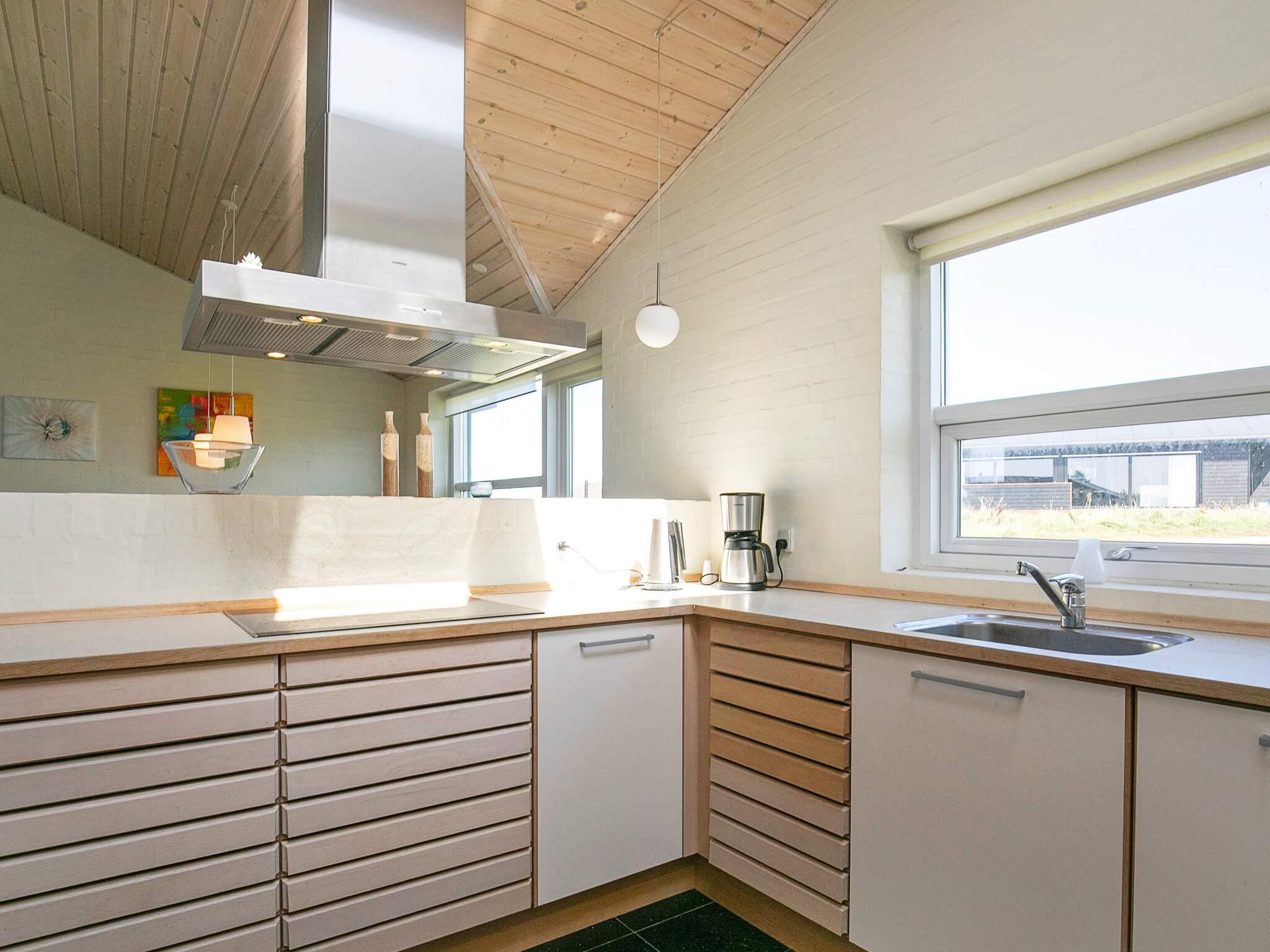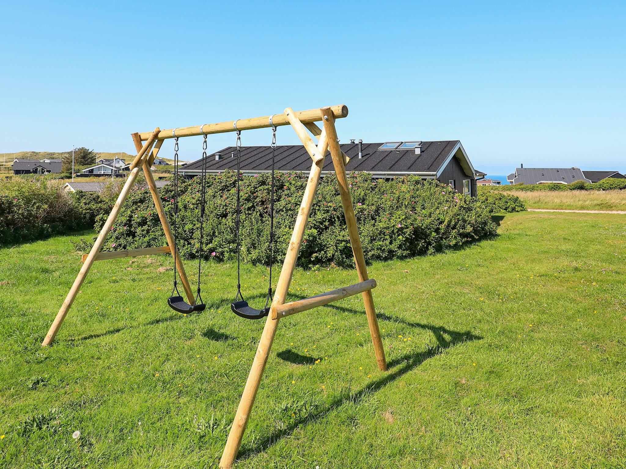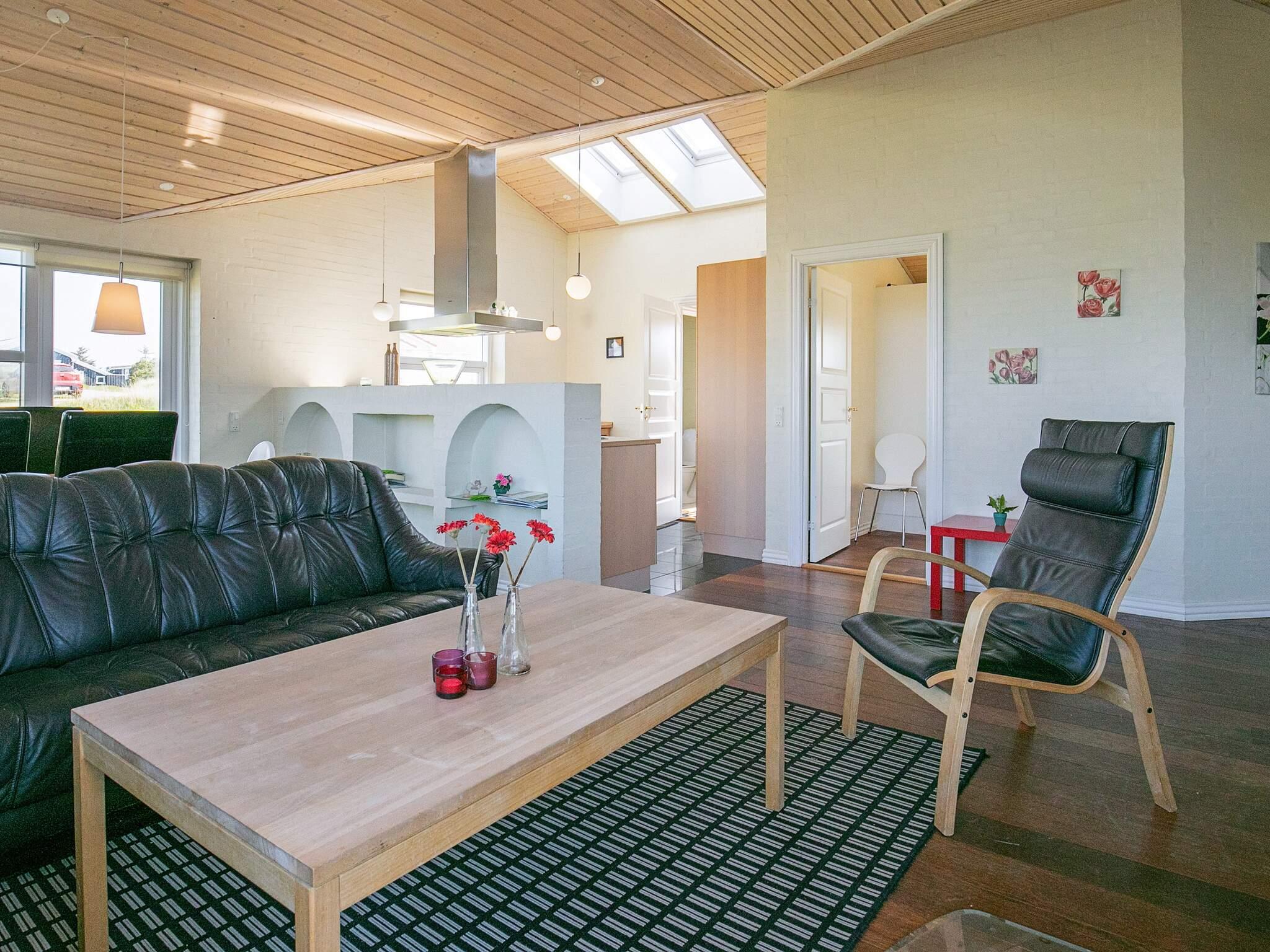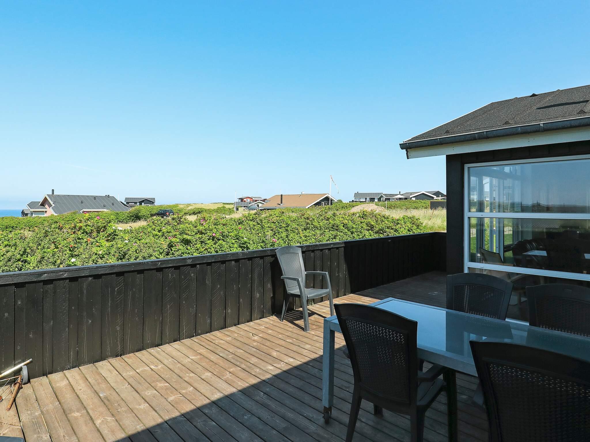 Velindrettet sommerhus med spabad og flot udsigt over Vesterhavet fra stue, terrasse og grund. Mod vest er der en stor, åben terrasse med flot havudsigt, mens den syd/østvendte terrasse byder på masser af læ og ligger ugenert. Huset opvarmes med oliefyr, hvilket gør el-omkostningerne mindre. Indretningen er i moderne, dansk stil med hovedvægten lagt på trivsel og hygge, ligesom de store vinduespartier sørger for maksimalt lysindfald dagen igennem. Ejeren har indrettet huset med sikker hånd og god smag, således at huset til enhver tid fremtræder harmonisk og tiltalende. Adgang til hems sker via en køjeseng i et af værelserne – derfor er hems ikke beregnet til voksne. Der er installeret fællesantenne med ca. 100 tv-kanaler. Grunden er en åben naturgrund med fine muligheder for udendørs ophold både dag og aften. Til børnene er der opsat gyngestativ og sandkasse.