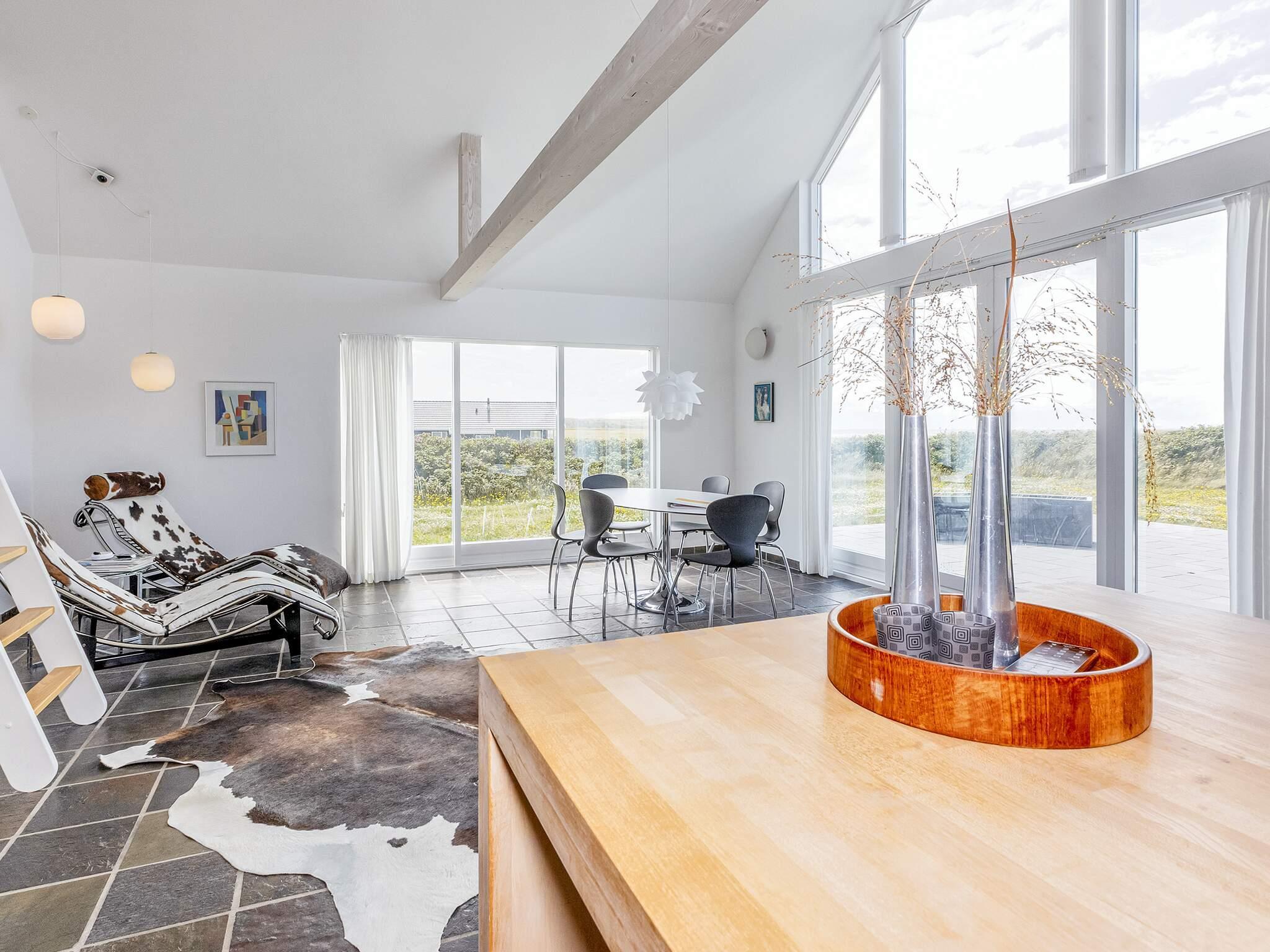 Sommerhuset fremstår med en lys og smagfuld indretning. På 1. sal findes bl.a. ekstra opholdsstue, hvorfra der især er flot udsigt over vandet. Her findes også 2 sovepladser i dobbeltseng for enden af stuen. Det ene soveværelse er indrettet på en stor og rummelig hems, som er adskilt fra resten af huset med en glasvæg med glasdør. Dermed bevares den skønne udsigt fra værelset. Et hus som rigtig mange gæster vender tilbage til år efter år.