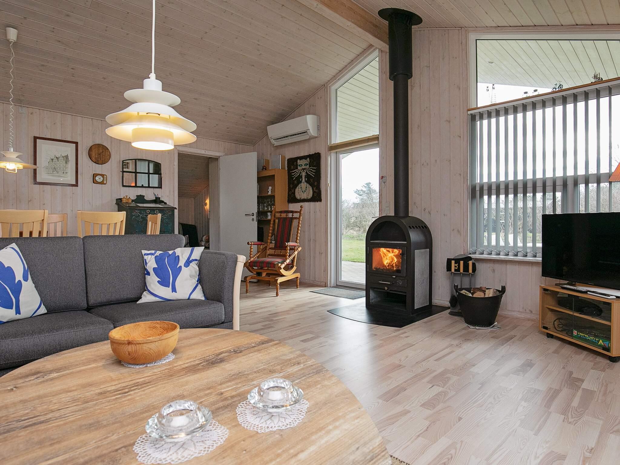 1 Opholdsstue: Brændeovn, stereoanlæg med cd, tv, kabel-tv, høj stol