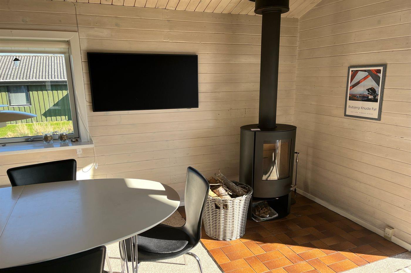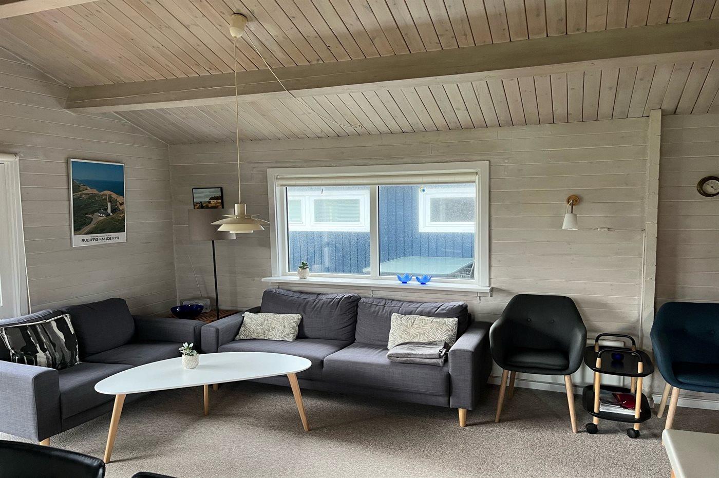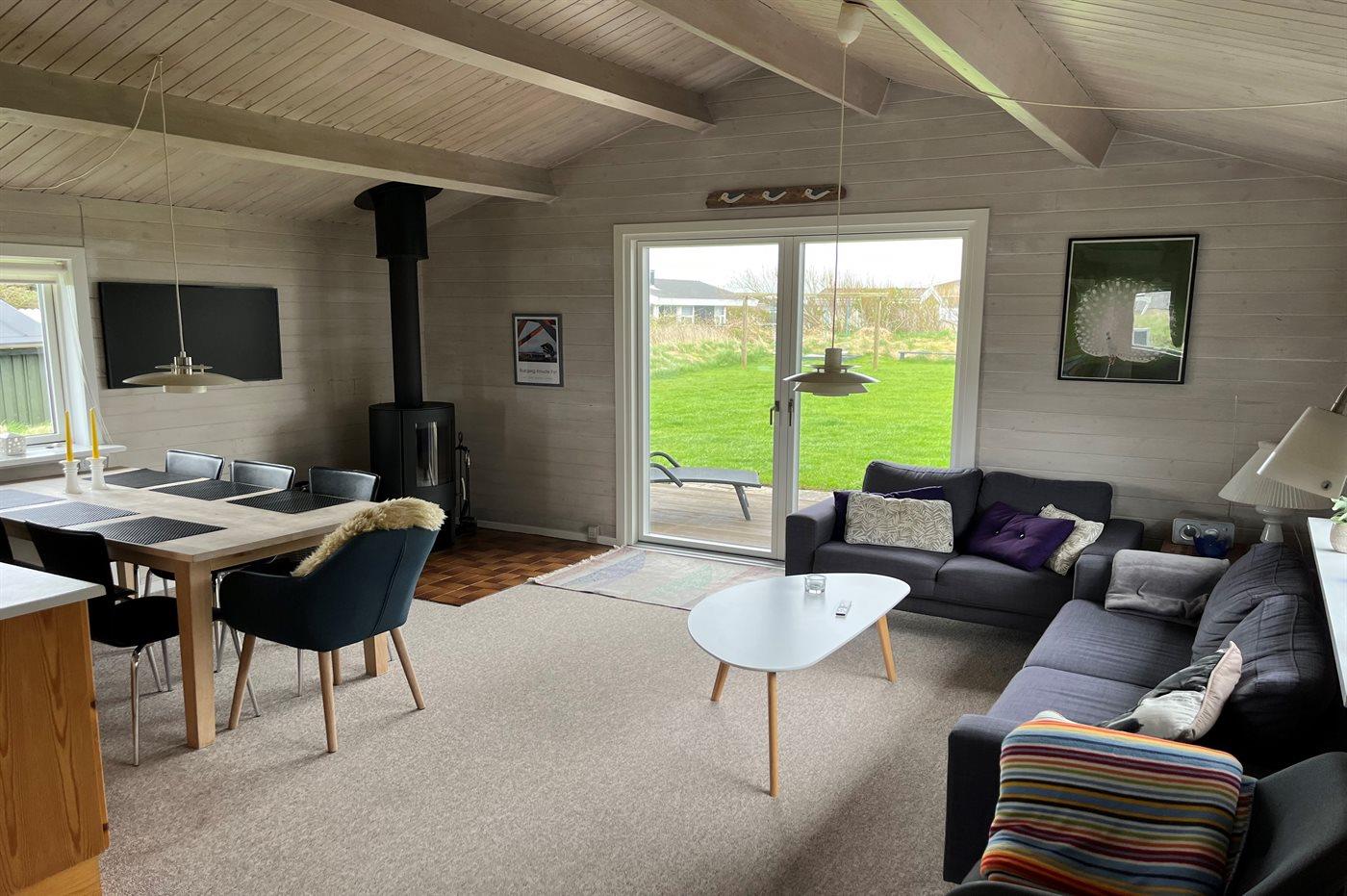 Huset er senest moderniseret i 2025 med bl.a. nyt, flot køkken, og nye gulve i køøen og stue. Huset ligger på en naturgrund - 400 m fra Vesterhavet. Til huset hører en dejlig solgård med havemøbler, et dejligt opholds- og spisested! Overdækket terrasse, hvorfra man kan høre havets brusen. Tæppebelagte gulve. Vægge og lofter er beklædt med lyst fyrretræ. Dejligt badeværelse med opvarmet flisegulv, brusekabine og 2-pers. spa. Der er vaskemaskine og tørretumbler. Gæstetoilet med håndvask. Dejligt køkken kombineret med stuen. Opvaskemaskine, fryser, mikrobølgeovn og komfur med keramiske kogeplader. I den hyggelige, velmøblerede opholdsstue er der brændeovn og samt TV tilsluttet fællesantenne (kan også modtage forskellige radiokanaler). Huset er yderligere udstyret med radio og gratis, trådløs internetforbindelse (computer skal medbringes) samt barneseng og barnestol og der er installeret energibesparende varmepumpe. Gynge og sandkasse til de mindste feriegæster. Der er installeret stik til opladning af elbil. Et førsteklasses sommerhus nær bilfri badestrand!