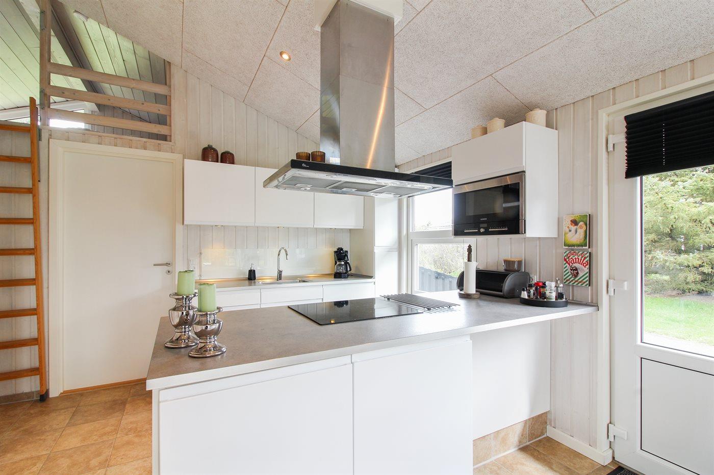 Køkkenet er udstyret med køleskab og fryser med en frysekapacitet på 60 liter. Der er 4 elkogeplader, varmluftovn, mikrobølgeovn samt opvaskemaskine Der er gulvvarme i køkkenet.