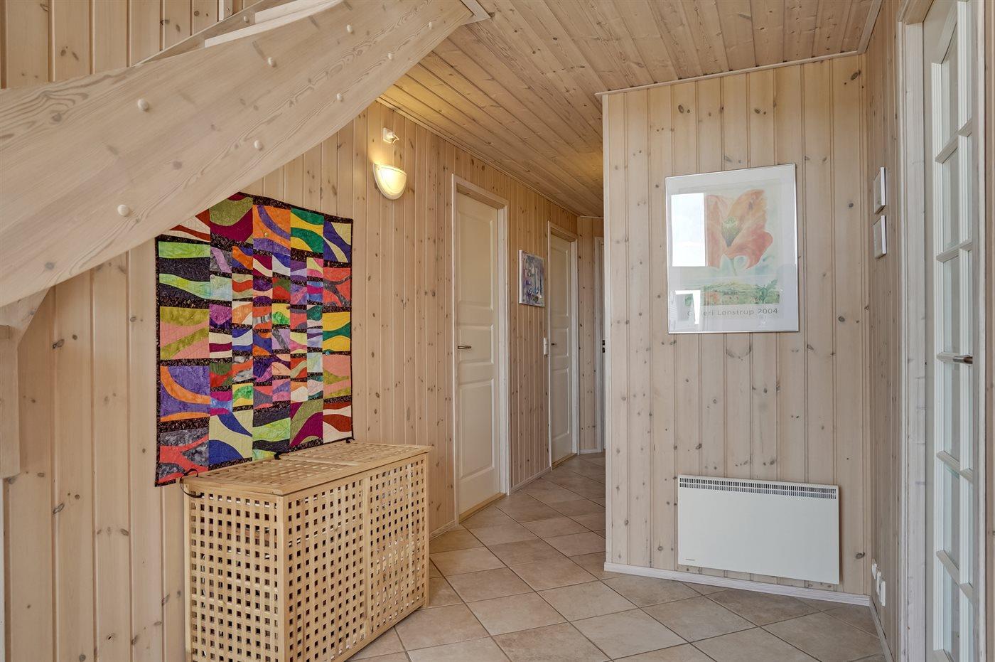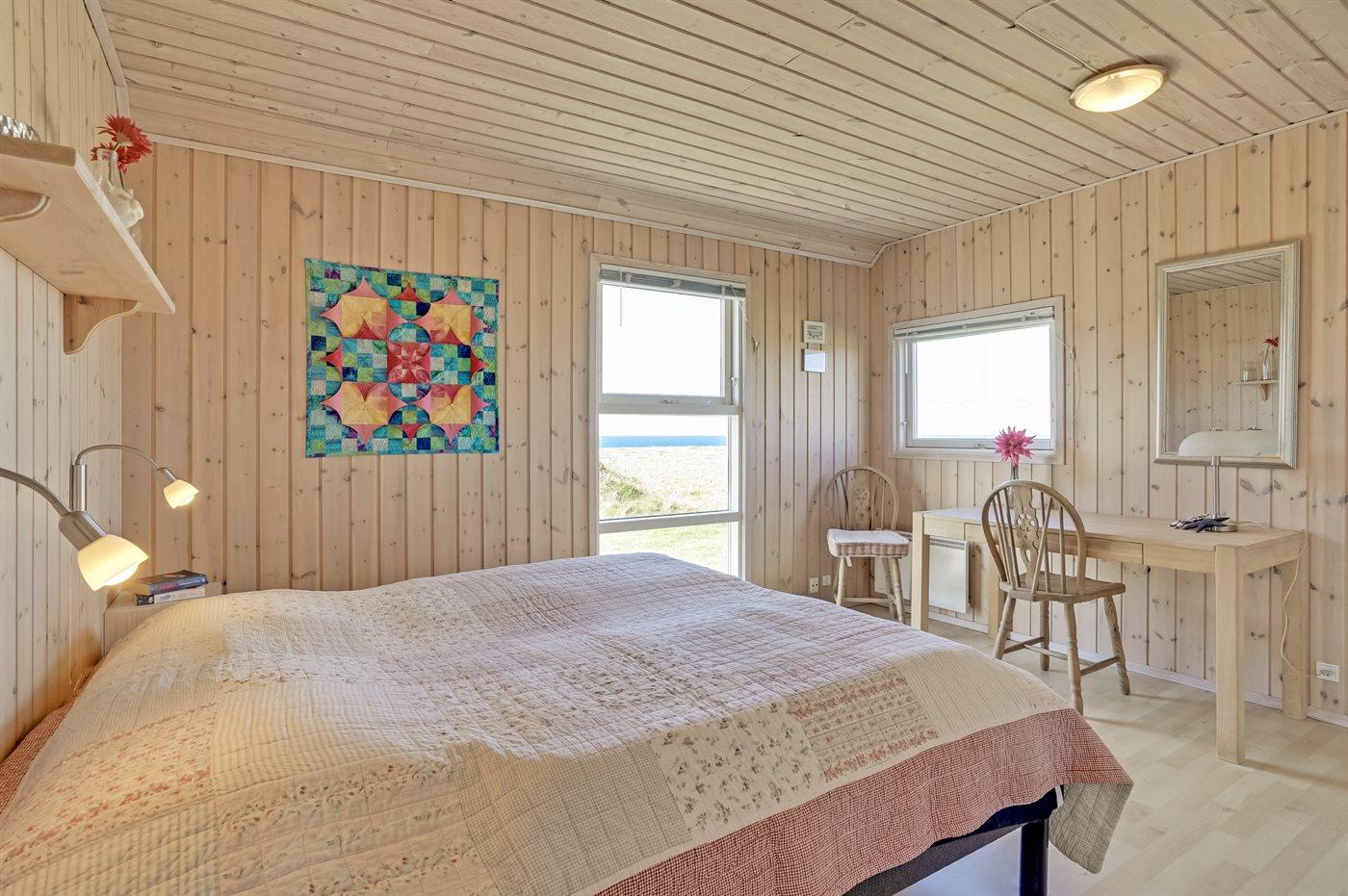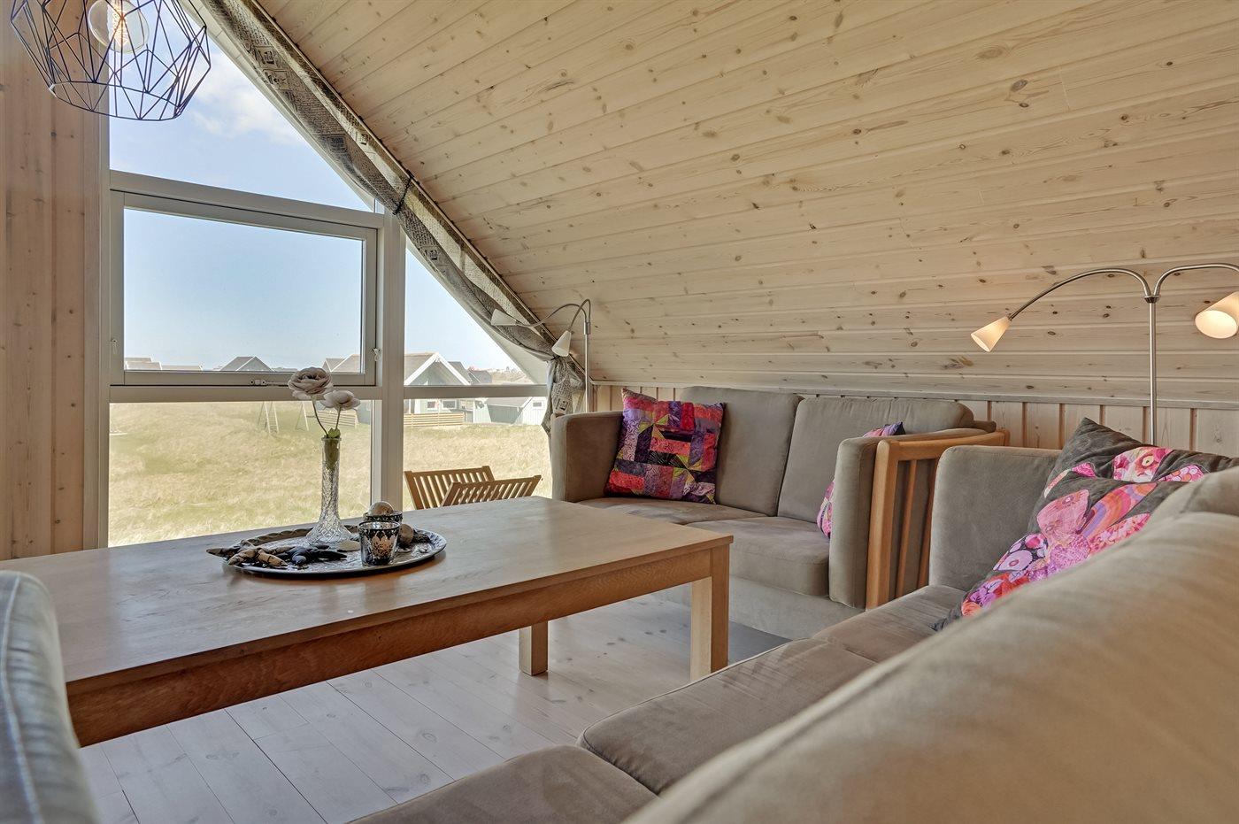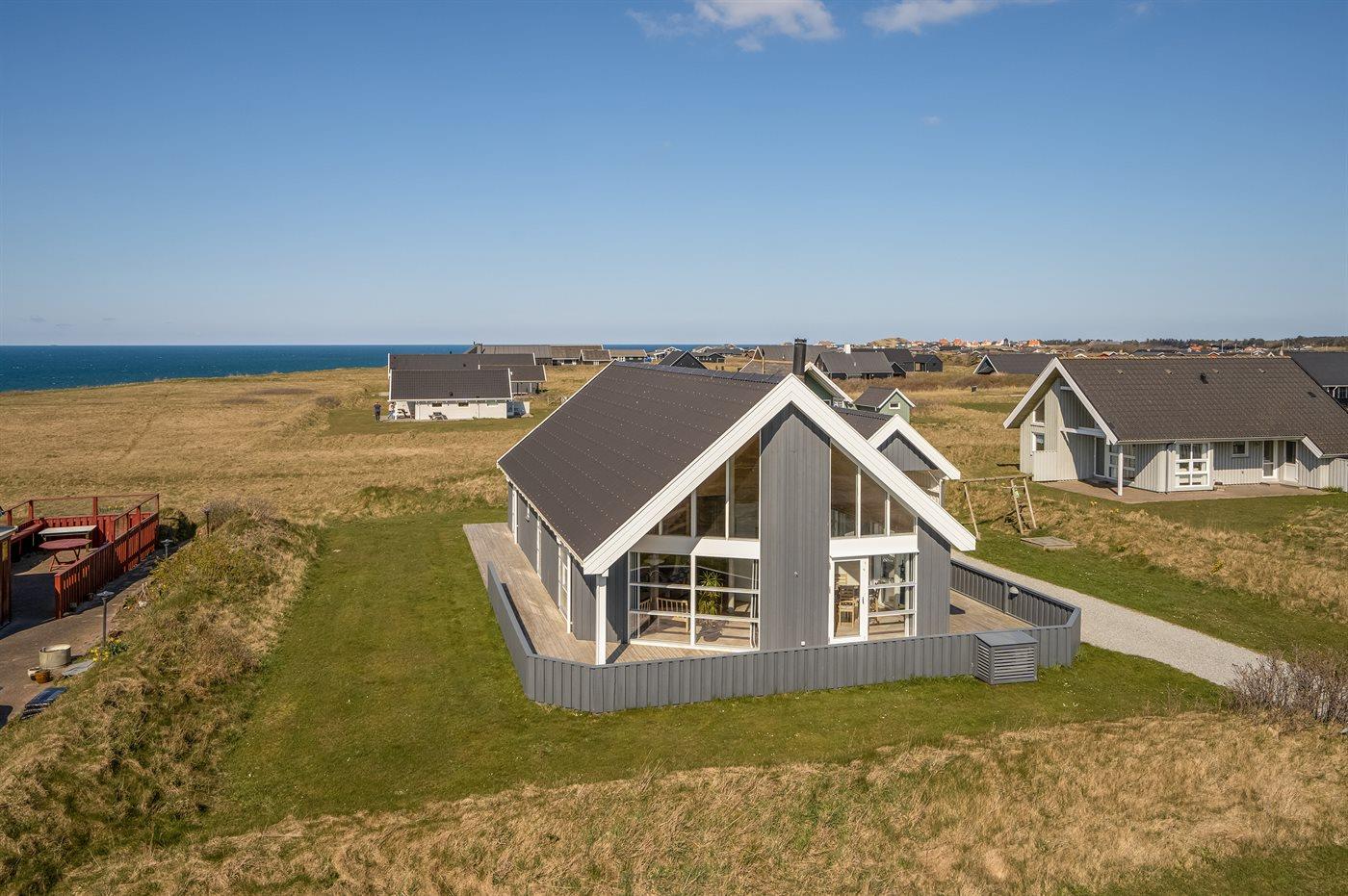 Pragtfuldt 2-plans sommerhus i træ, bygget i 2004, beliggende på en klitgrund kun 150 m fra havet og tæt ved Lønstrup. Fra hus og grund er der særdeles flot havudsigt. Stort åbent og overdækket terrasseareal med havemøbler. Opvarmet klinkegulv i stueetagen, trægulv på værelserne og 1. sal. Lyse, ludbehandlede vægge og lofter. 2 badeværelser med gulvvarme og bruseniche; det ene med 2-pers. spa og direkte adgang til sauna. Skønt, veludstyret køkken med bl.a. opvaskemaskine, mikrobølgeovn, fryser, varmluftovn og komfur med keramiske kogeplader. Flot møbleret stue med brændeovn, TV med fællesantenne, video og DVD-afspiller samt stereoanlæg med CD-afspiller. Ekstra TV på 1. sal. 4 gode soverum; 2 med dobbeltseng og 2 med 2 enkeltsenge. Desuden gratis, trådløs internetforbindelse (computer skal medbringes), vaskemaskine og tørretumbler til rådighed. Til børnene er der barneseng, barnestol og gynge. Carport på grunden.