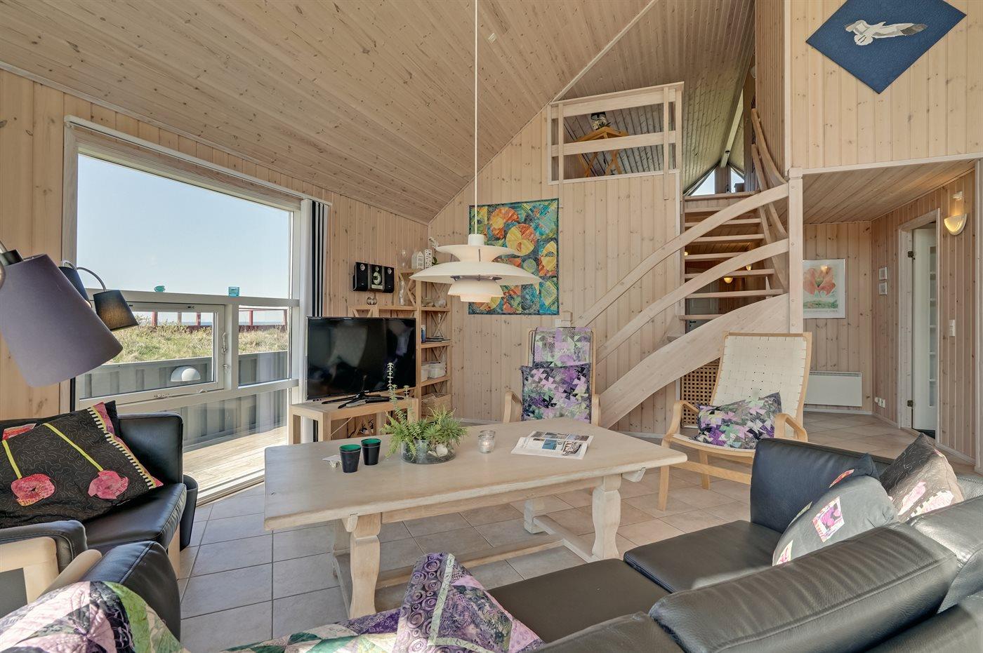 Hyggeligt træsommerhus i Lønstrup med havudsigt, spa, sauna og stor terrasse nær stranden.