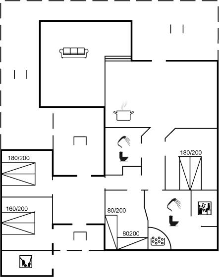 Der er i alt 4 soveværelser. Sovepladserne fordeler sig på: 6 sovepladser i dobbeltsenge. 2 sovepladser i enkeltsenge. Derudover er der 1 stk. barneseng.