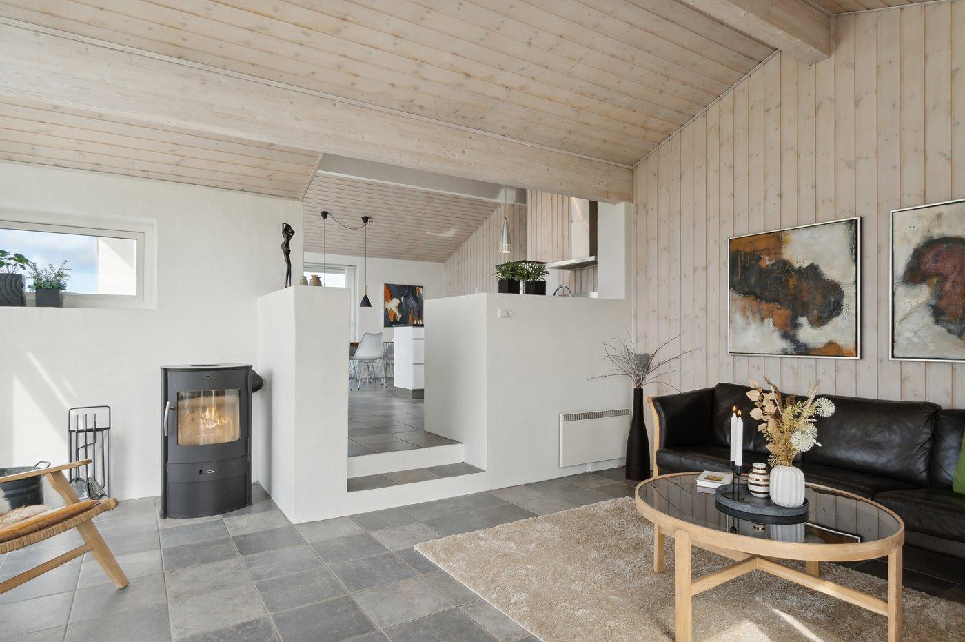 Skønt og indbydende sommerhus beliggende på en skrånende grund med flot udsigt til Rubjerg Knude og over Lønstrup by. Til huset hører dejlige terrassearealer med gode læmuligheder, og indvendigt er huset indrettet lyst og moderne med opholdsstuen liggende i forskudt plan. Ét soveværelse er med adgang via terrassen.