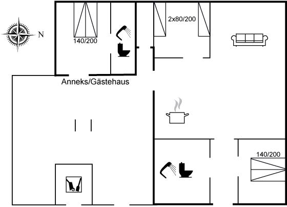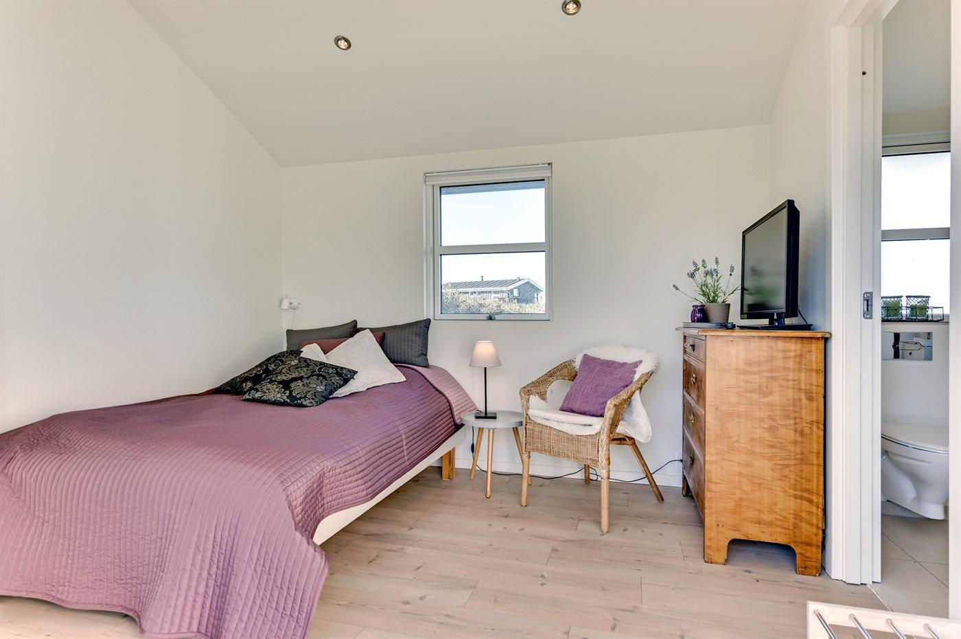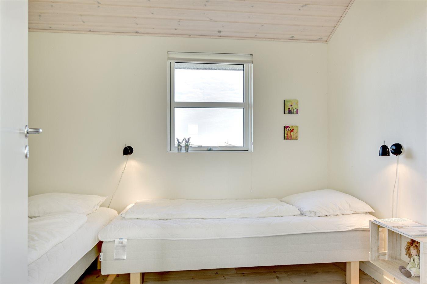 Der er i alt 3 soveværelser. Sovepladserne fordeler sig på: 4 sovepladser i dobbeltsenge. 2 sovepladser i enkeltsenge.- 2 af disse sovepladser befinder sig i et anneks. Derudover er der 1 stk. barneseng.
