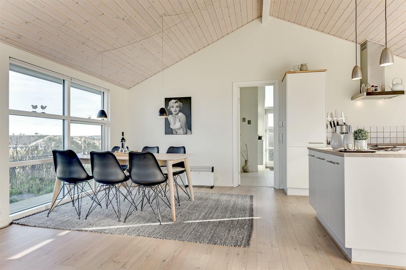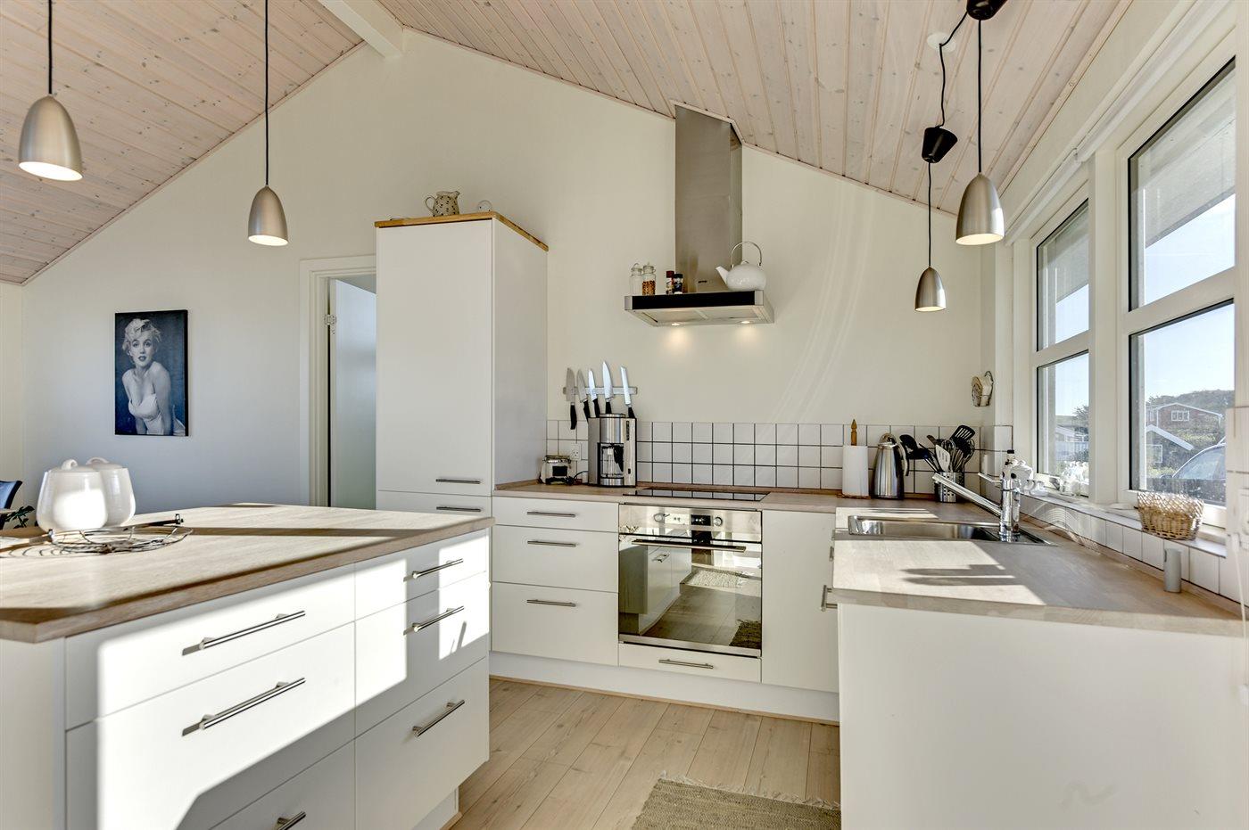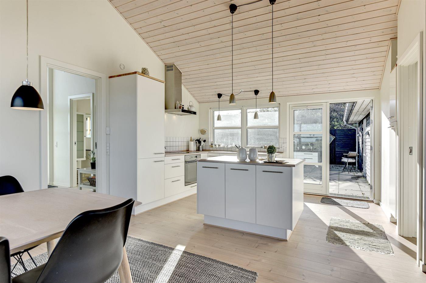 Køkkenet er udstyret med 1 køleskab. Der er 4 induktionskogeplader, varmluftovn, mikrobølgeovn samt opvaskemaskine.