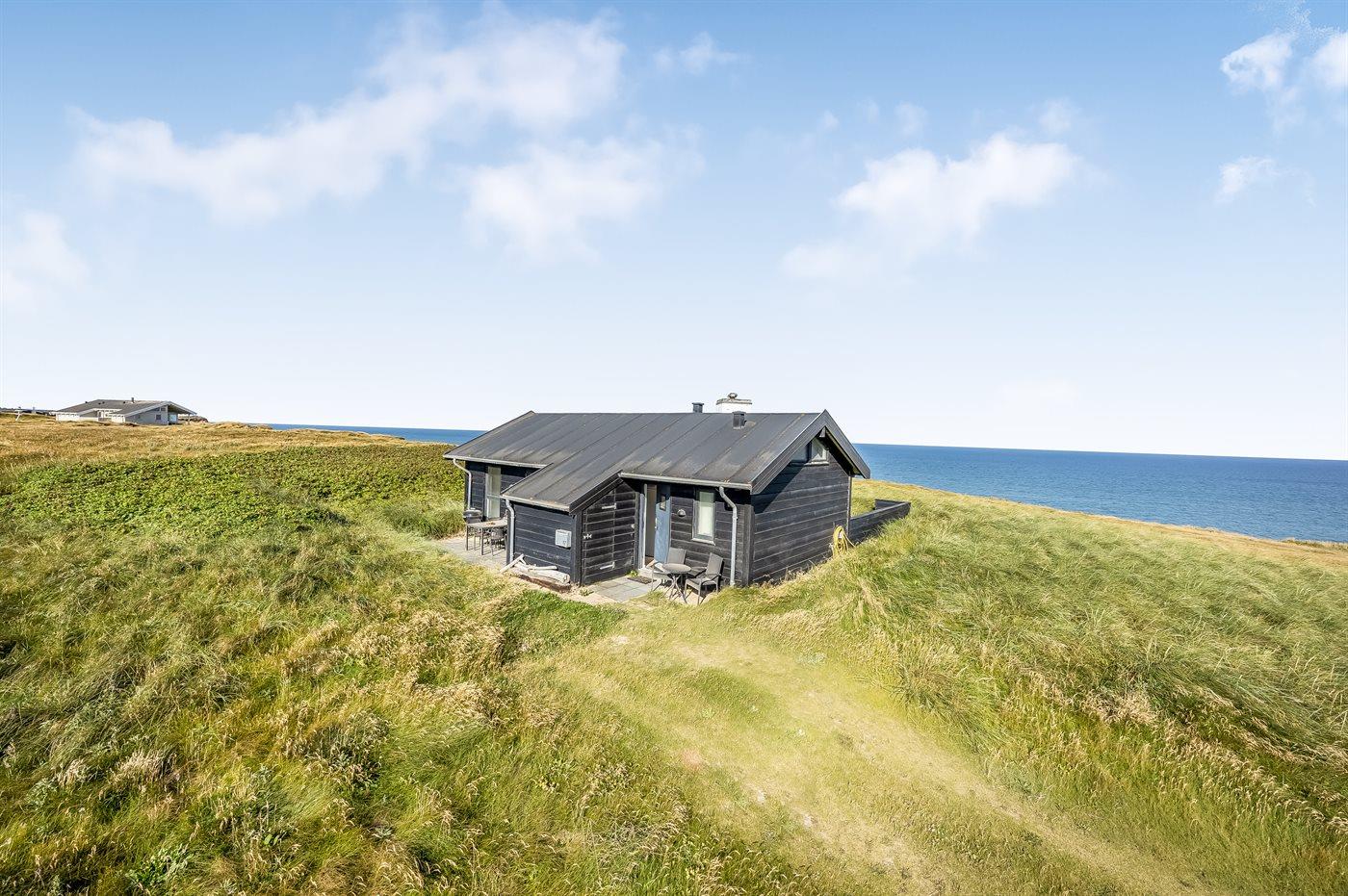 Flot arkitekttegnet sommerhus beliggende på toppen af Klitbakken med panoramaudsigt over havet. Huset ligger lige ved vandet i første række til den stejle kyststrækning ned mod stranden og i gåafstand til Lønstrup by.