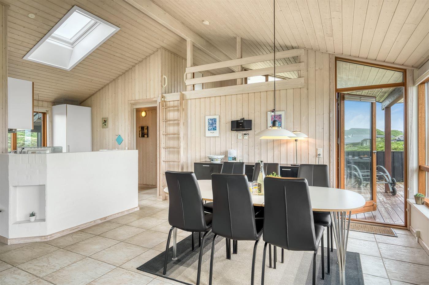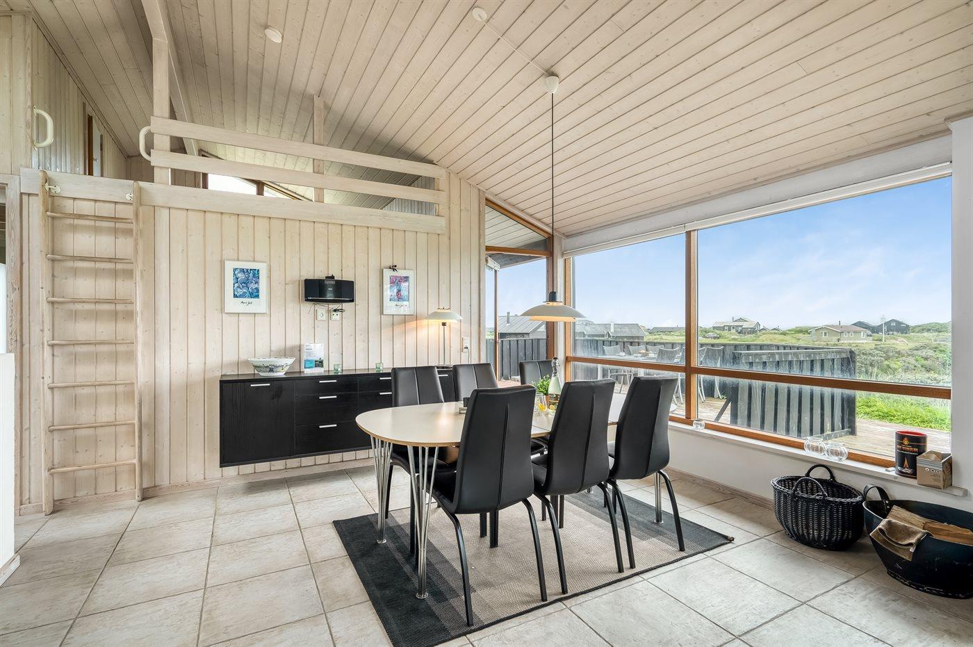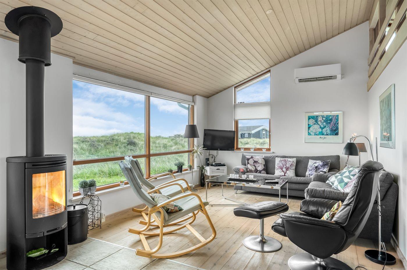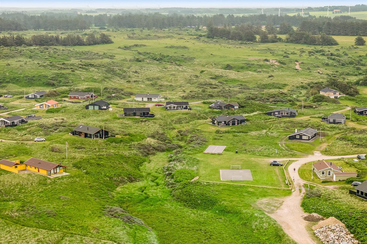 Sommerhus beliggende på kuperet grund med udsigt til Vesterhavet og klitterne.