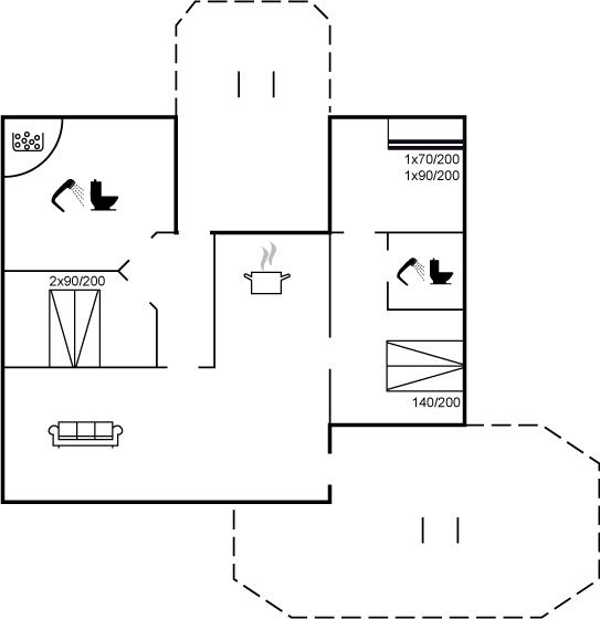 Der er i alt 3 soveværelser. Sovepladserne fordeler sig på: 4 sovepladser i dobbeltsenge. 1 soveplads i enkeltseng.