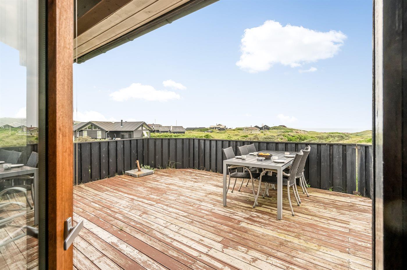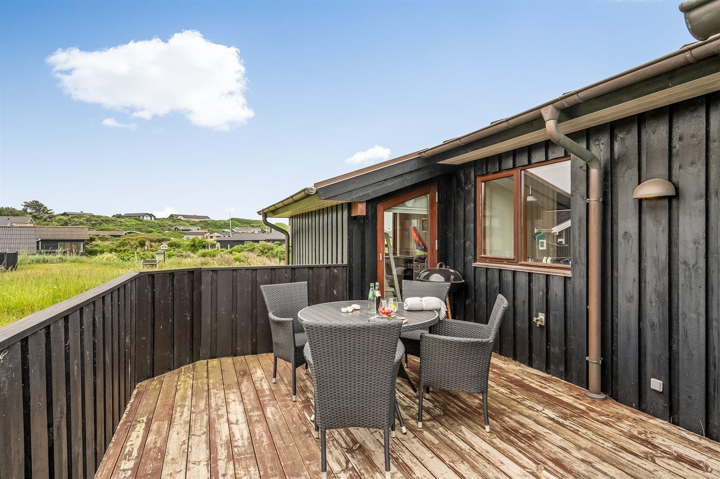 Charmerende sommerhus med havudsigt, spa og stor terrasse nær Vesterhavet.