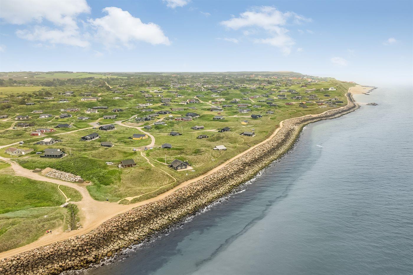 Ferieboligen er beliggende på en 1000 m² stor naturgrund. Der er 200 m til havet. Nærmeste forretning er beliggende i en afstand af 550 m. Til ferieboligen hører 74 m² terrasseareal. Desuden er der 5 m² overdækket terrasse.