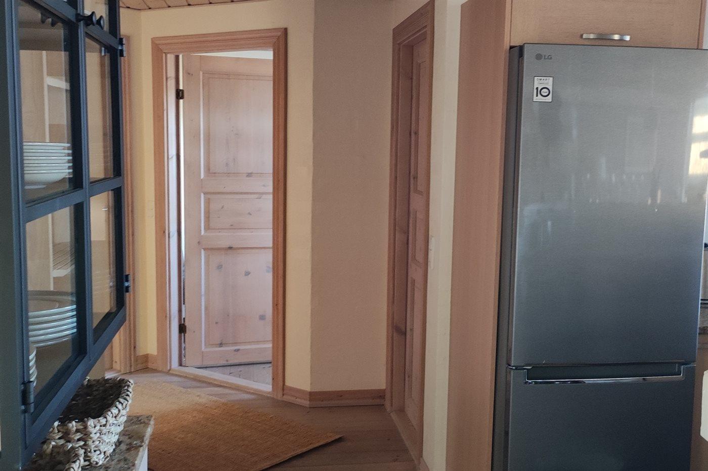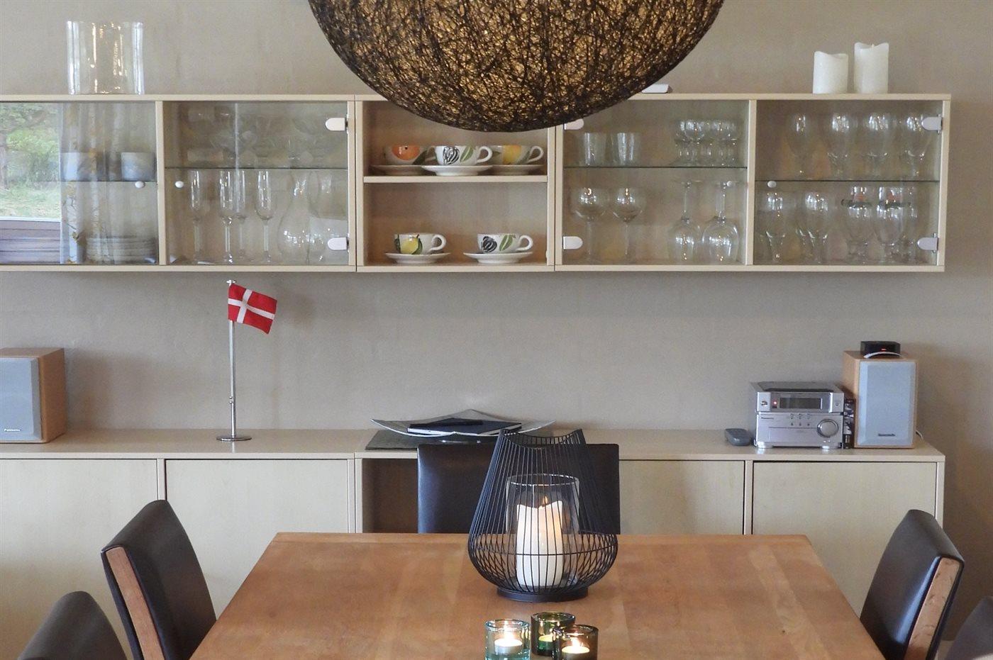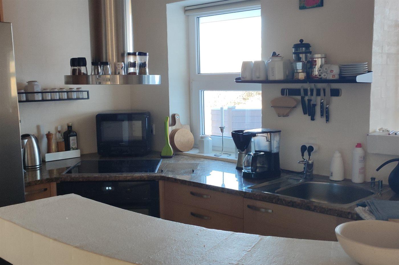 Køkkenet er udstyret med 1 køleskab. Der er 4 induktionskogeplader, varmluftovn, mikrobølgeovn samt opvaskemaskine.