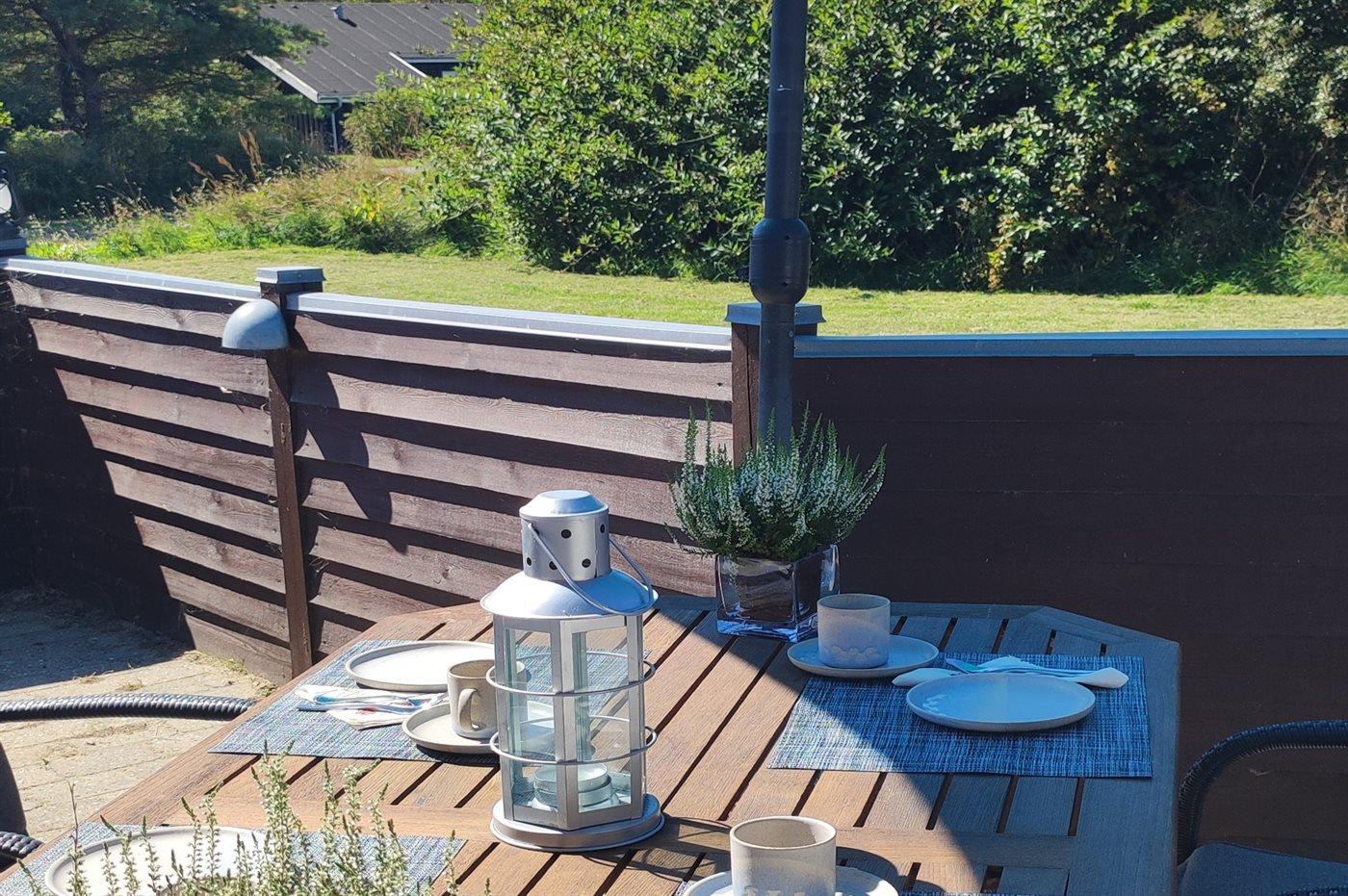 Ferieboligen er beliggende på en 1100 m² stor naturgrund. Der er 1250 m til havet. Nærmeste forretning er beliggende i en afstand af 500 m. Til ferieboligen hører åbent terrasseareal. Desuden er der overdækket terrasse. Grill til rådighed. Parkering ved ferieboligen.